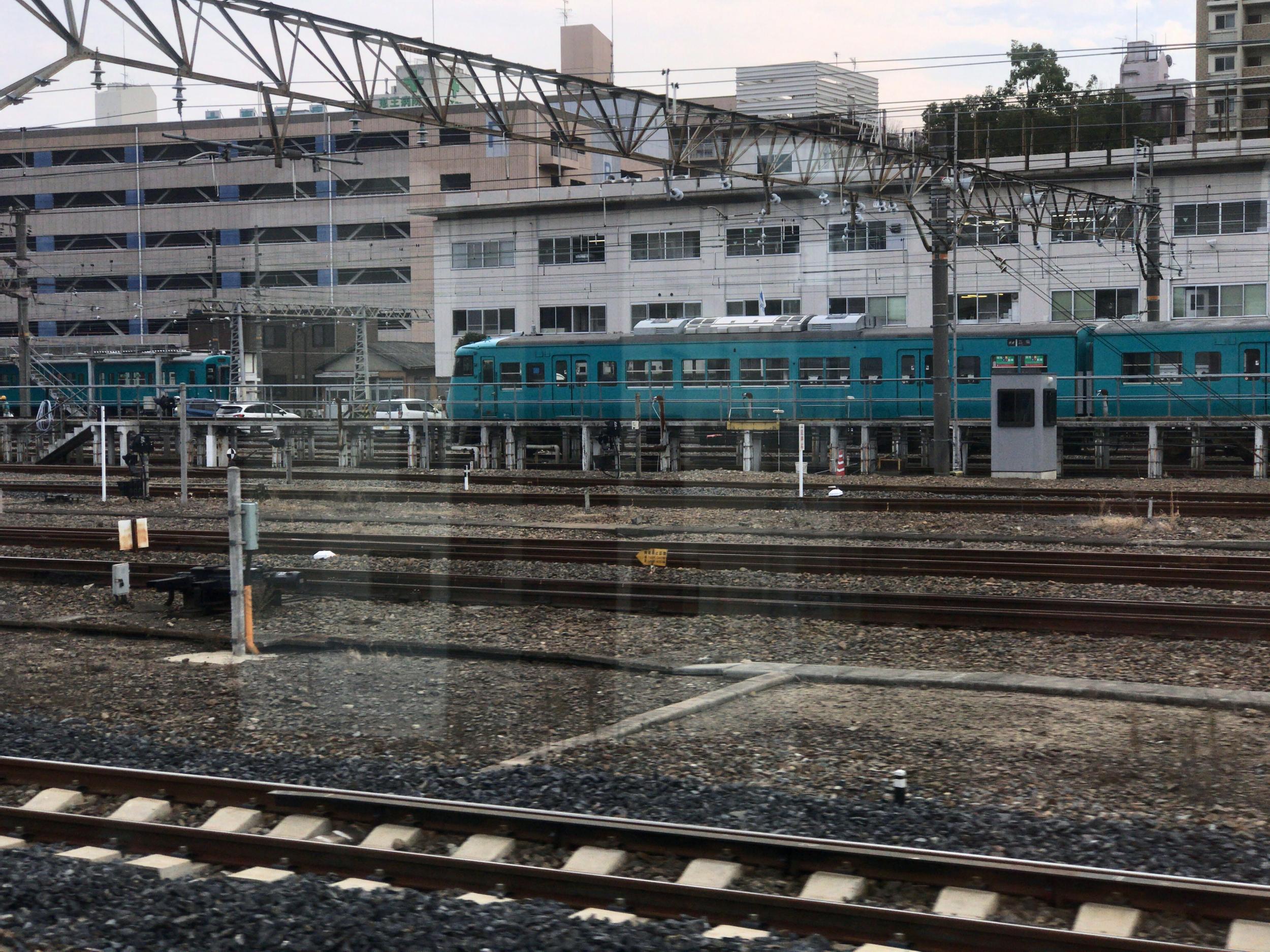 王寺に到着、青い117系が寝ています。大和小泉-郡山間で近鉄橿原線をアンダークロス。ここに乗り換え駅を作るとリニア新幹線なんかより、奈良県の交通は革命的に便利になって、県の発展に大きく寄与すると思うのですが、そんな計画はなさそうです。
