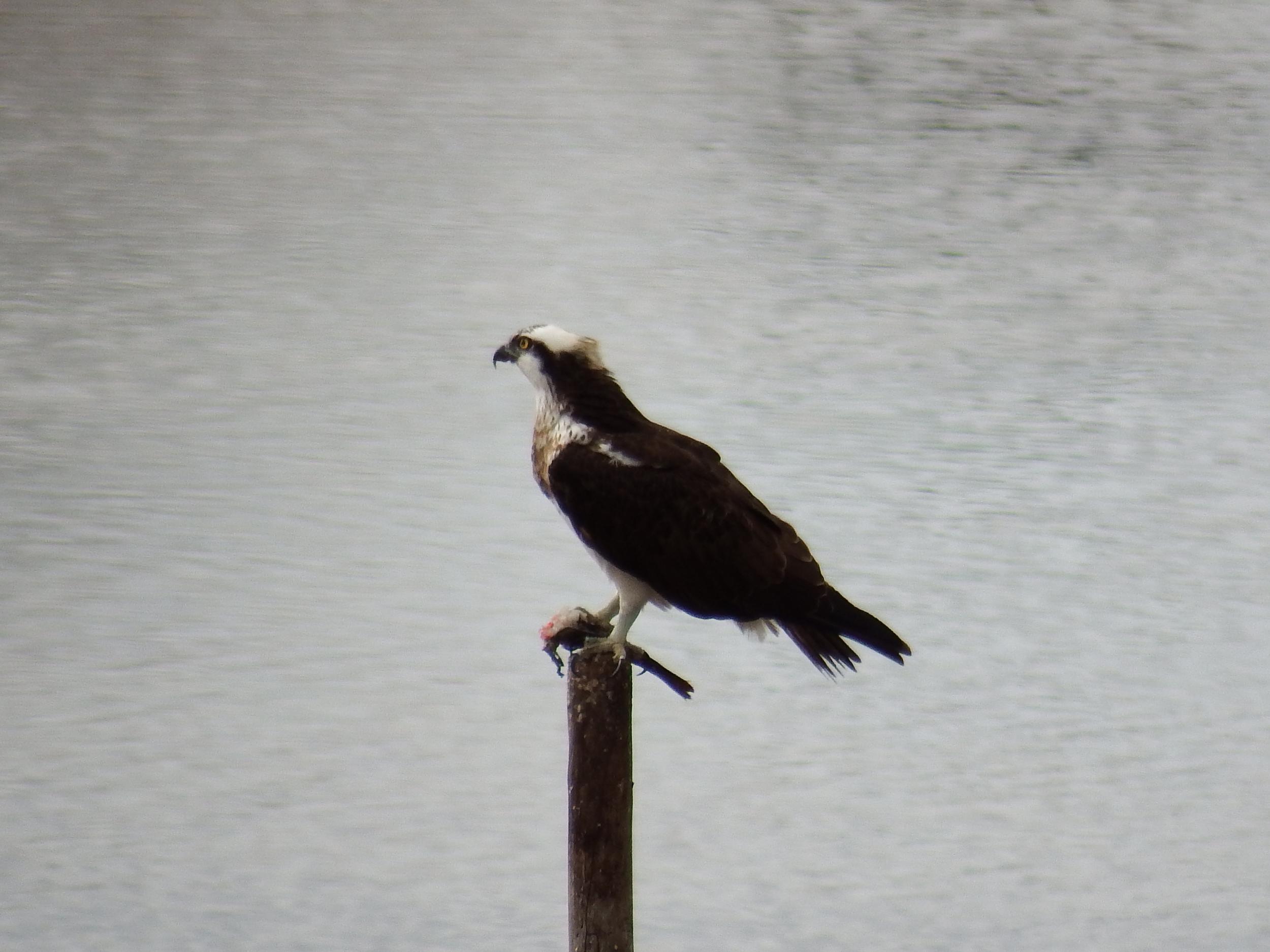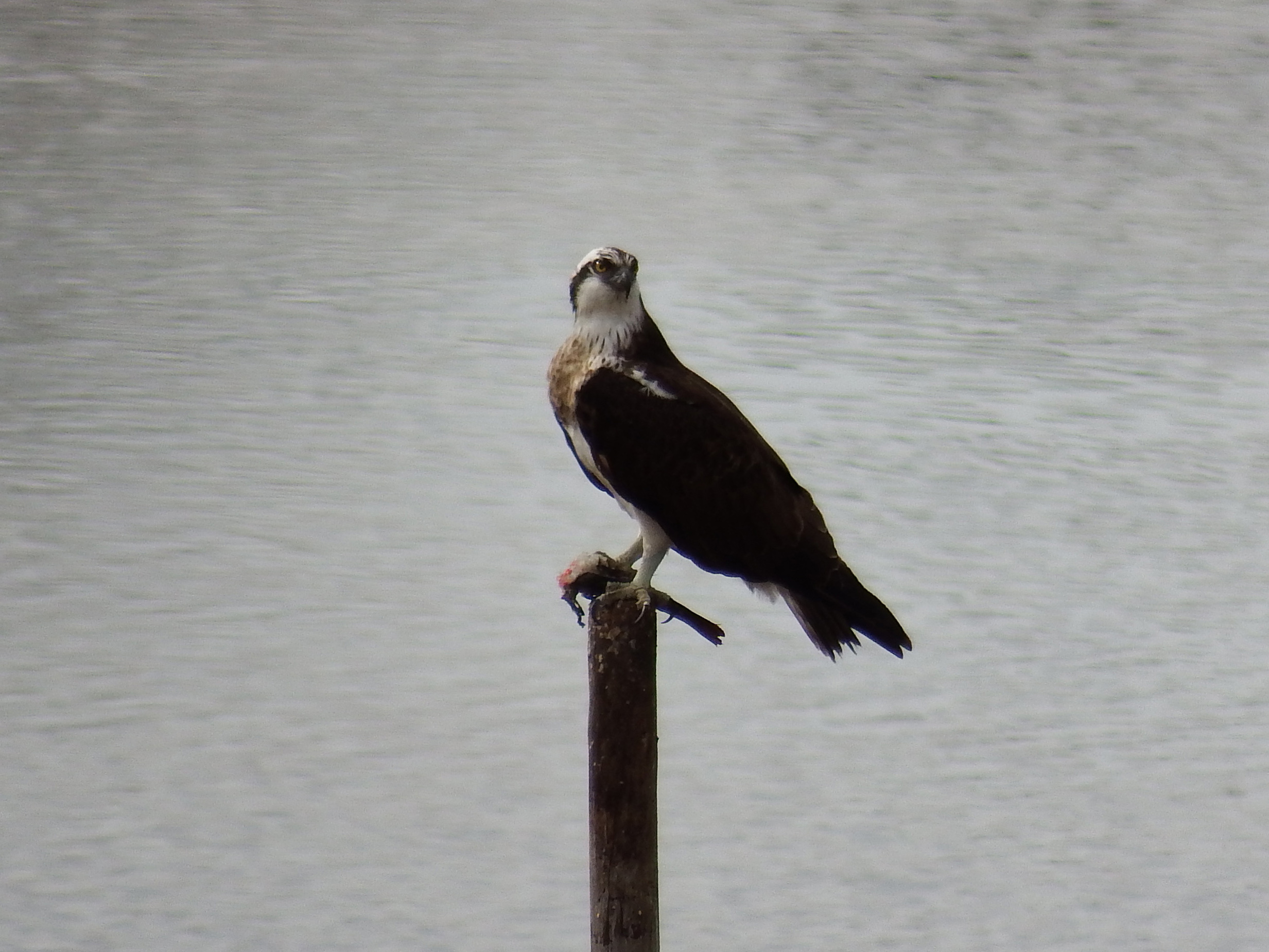 ミサゴがミサゴ棒に戻ってきました。魚の下半身だけをずっと持ったまんまです。