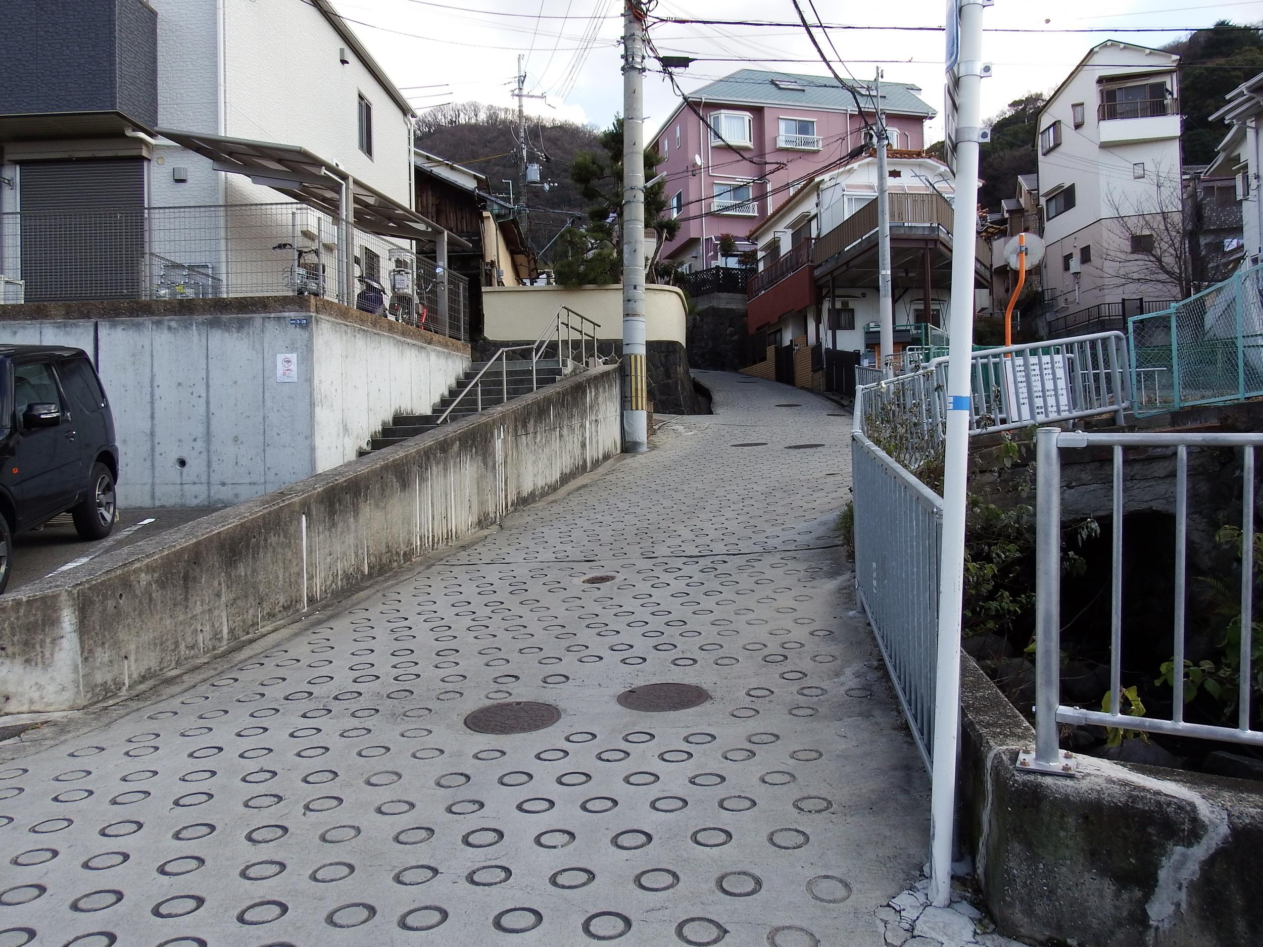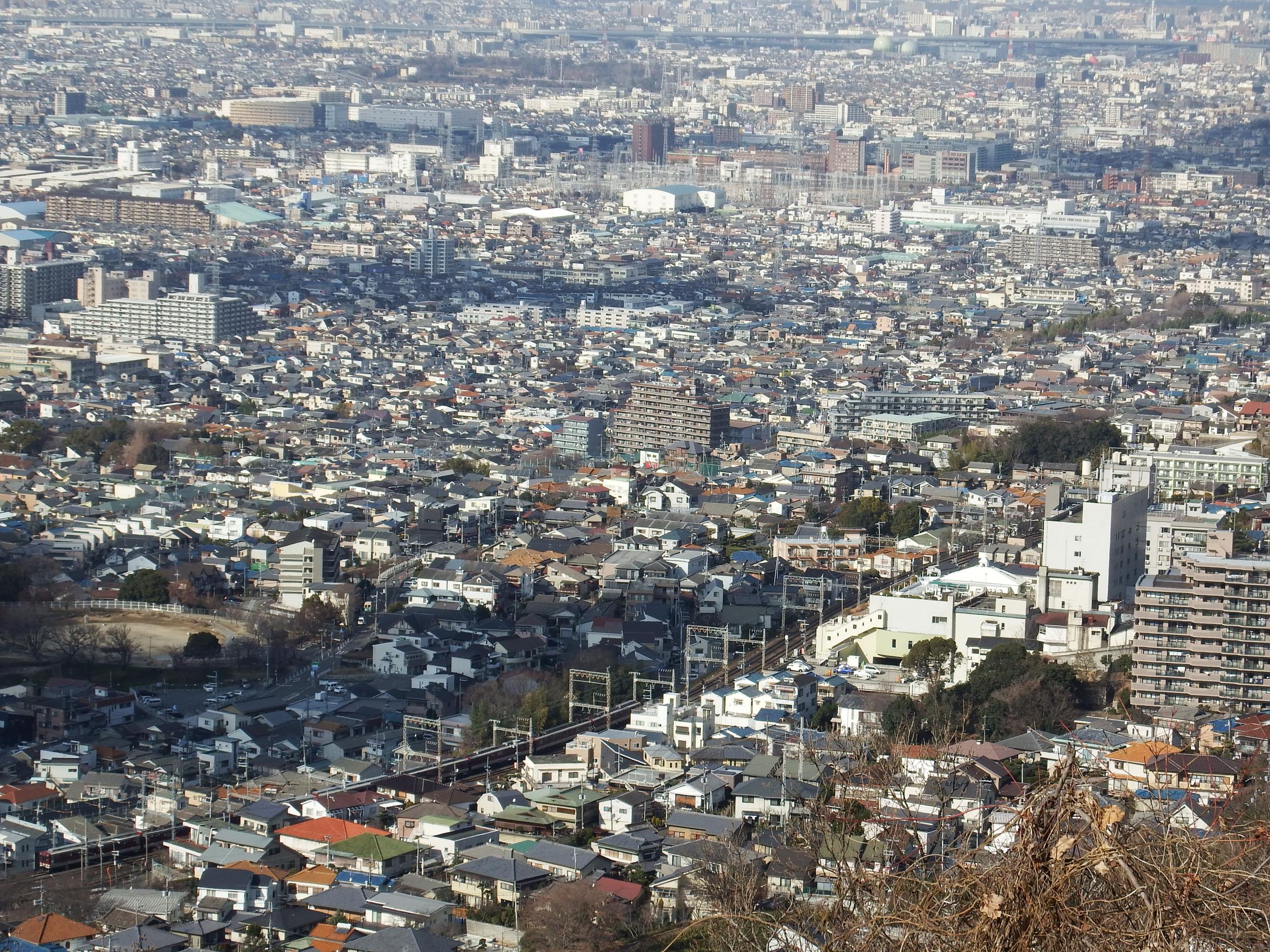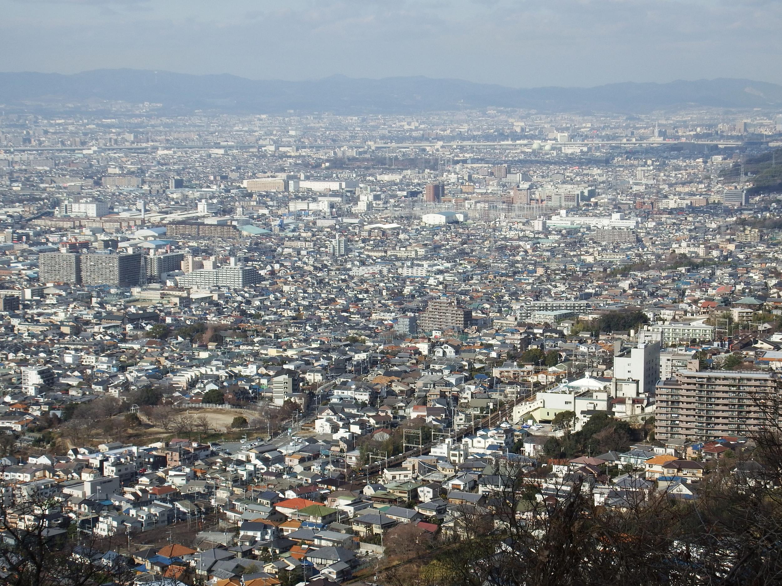 いつも車窓から大阪平野を眺める辺りです。ホテルセイリュウ脇の坂道を上って撮ってみると、けいはんな線が足のほぼ真下を走っていることが分かりました。