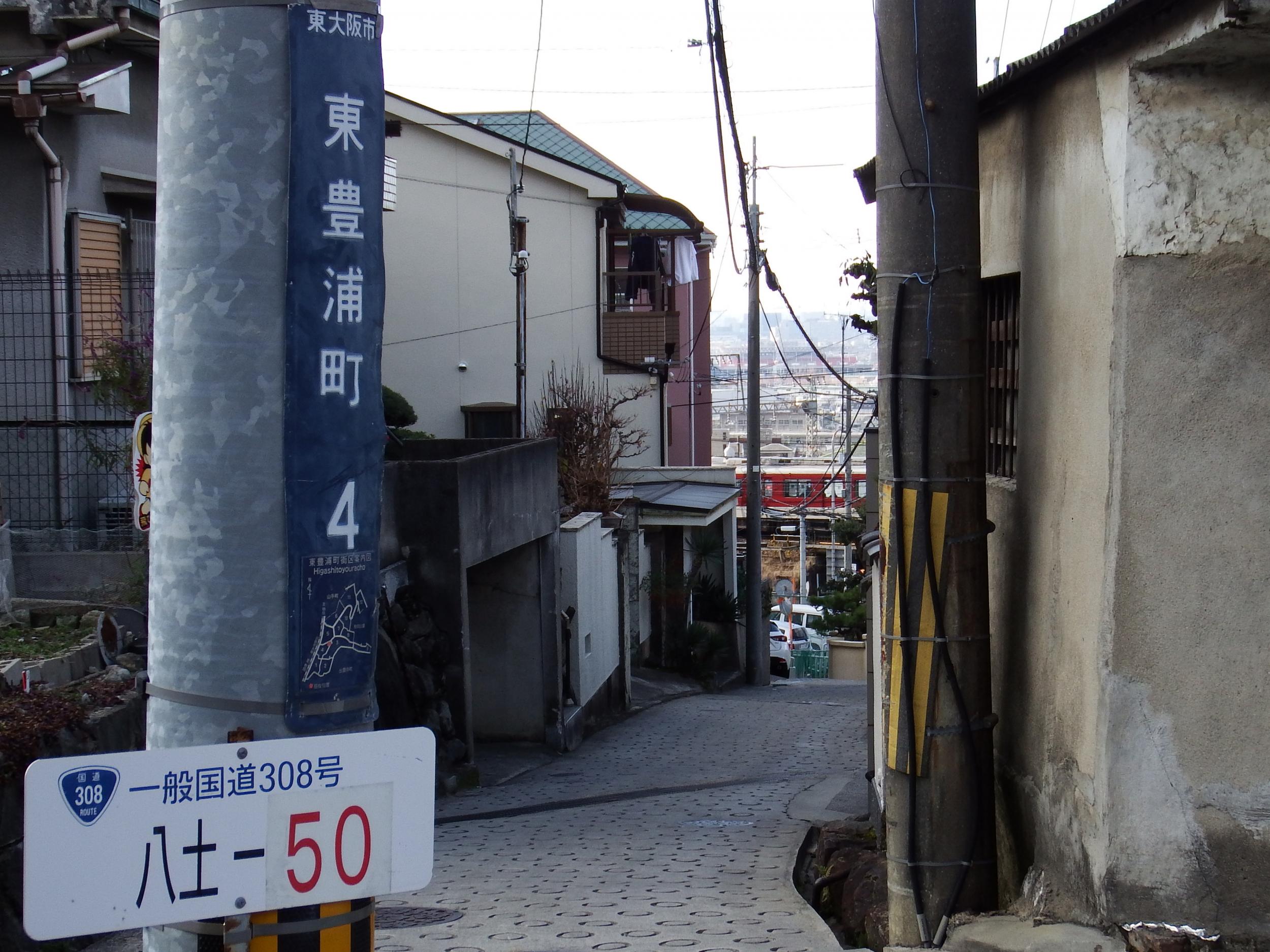 いつものように枚岡神社の脇を登らずに、線路沿いに歩いてみると国道308号線に出てきました。