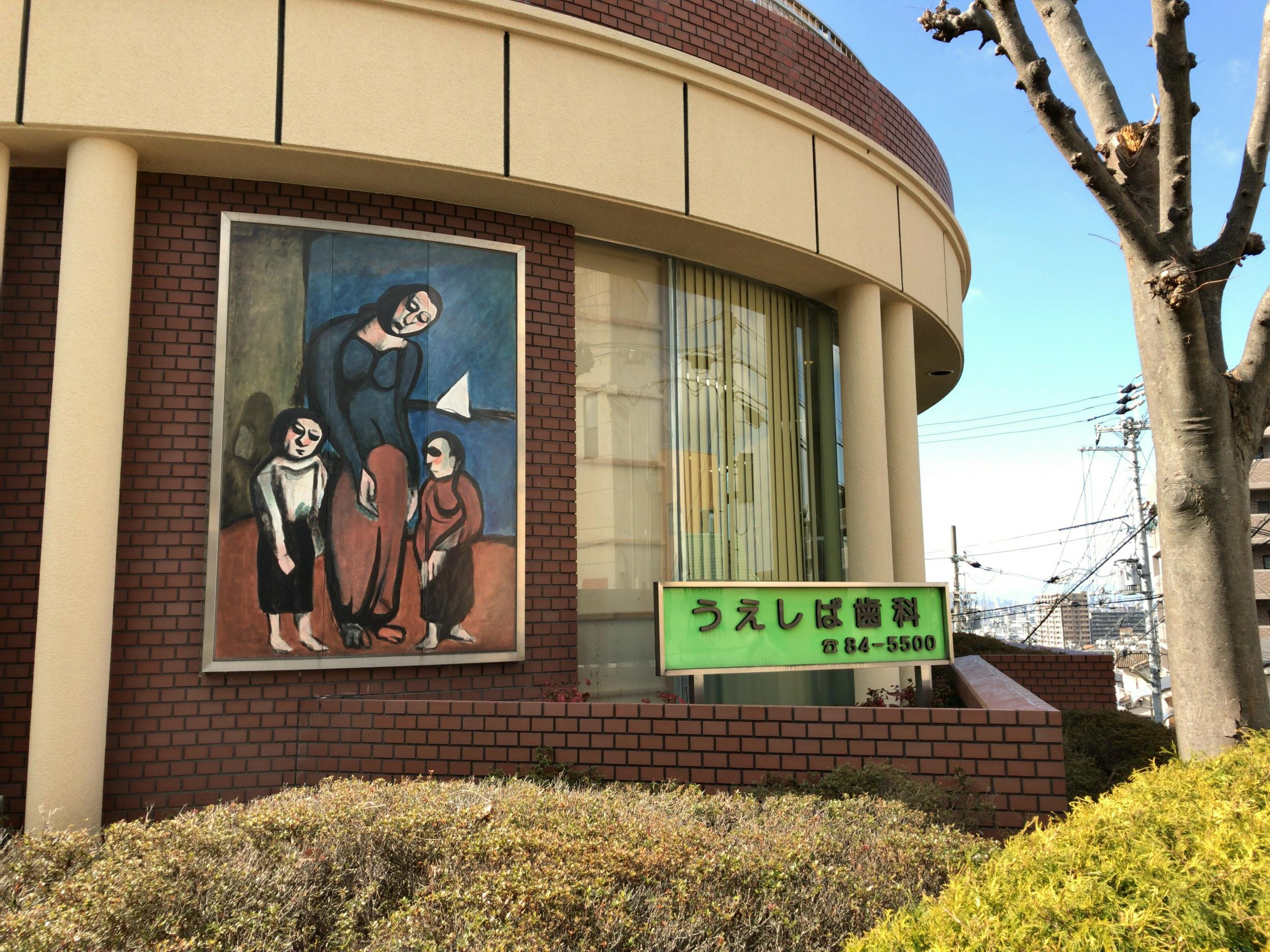 枚岡駅前の歯医者さんの外壁に飾られた絵がすごく気になりました。ルオーの模写でしょうか?詳しいことは何もわからないのですが、何かすごく元気のない母子です。見てるだけで歯が痛くなってくる気がします。
