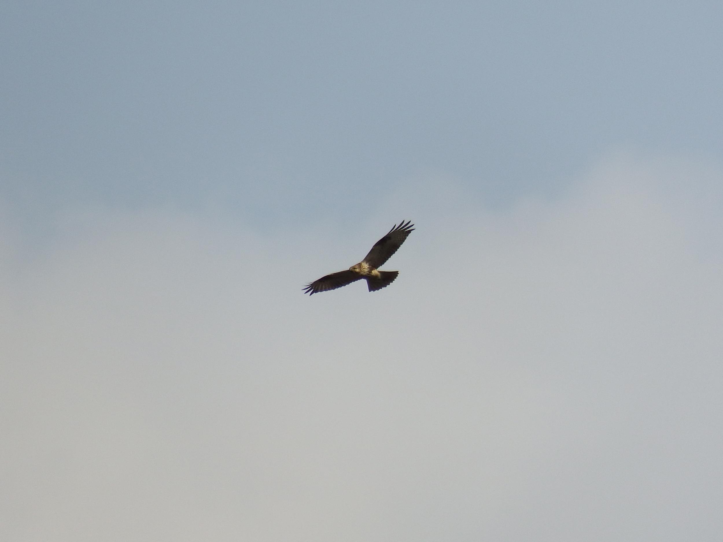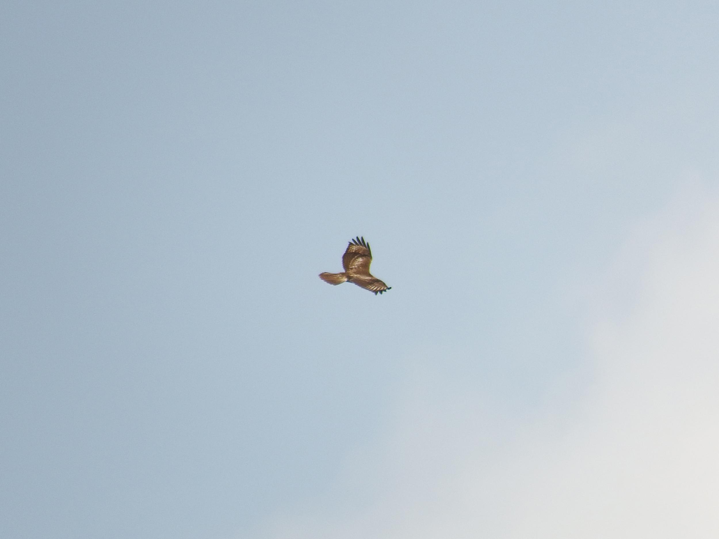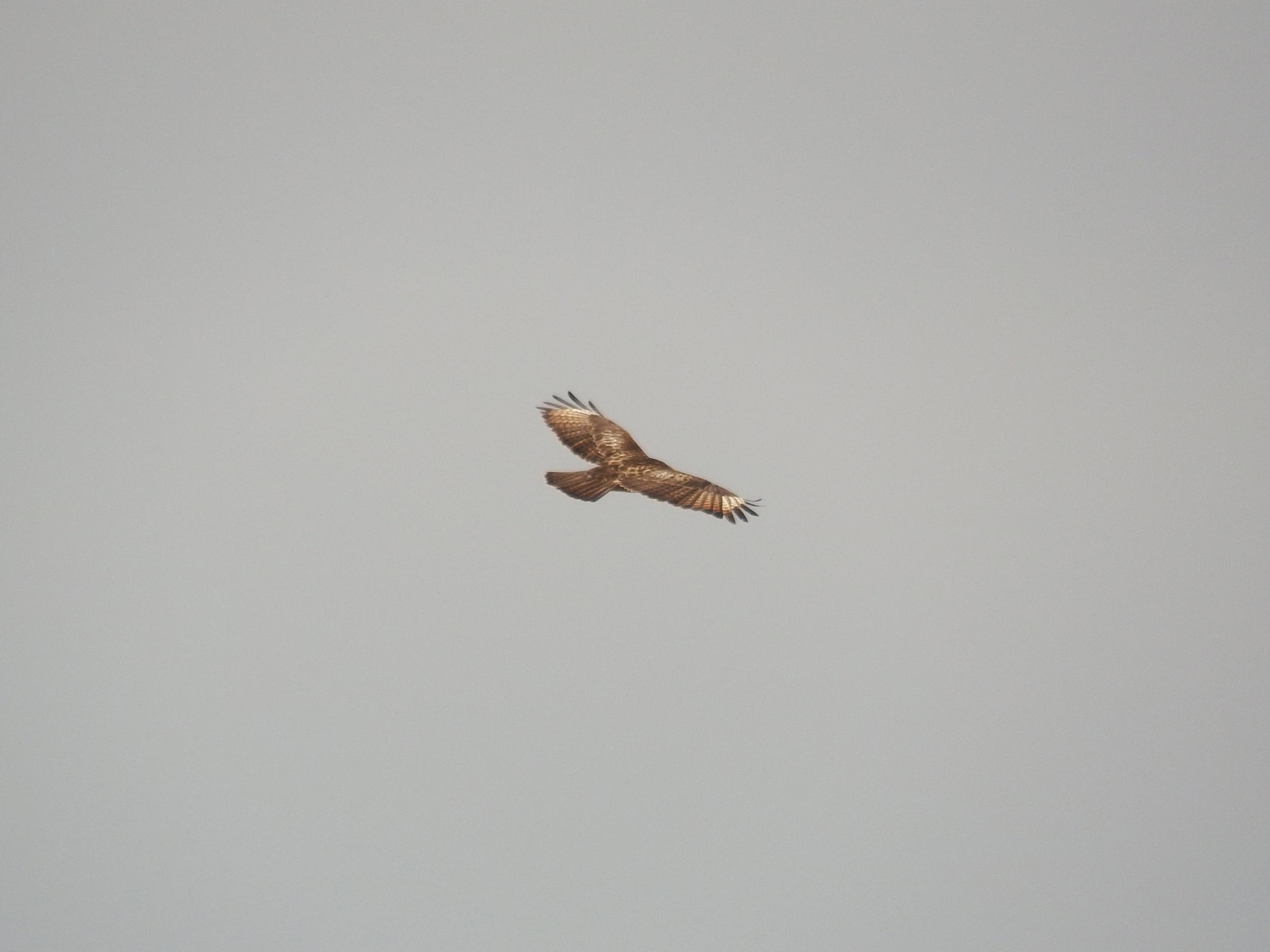 飛び立ちました。上空でゆっくり旋回しています。地面の野ネズミとか探しているわけで、ものすごい視力です。
