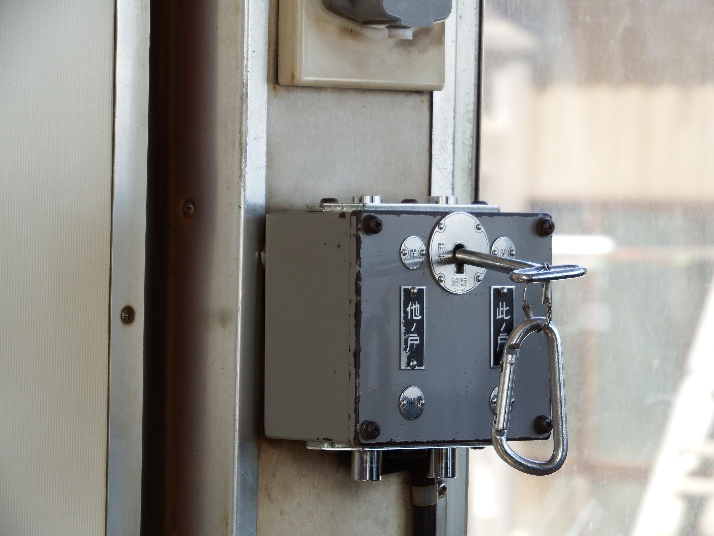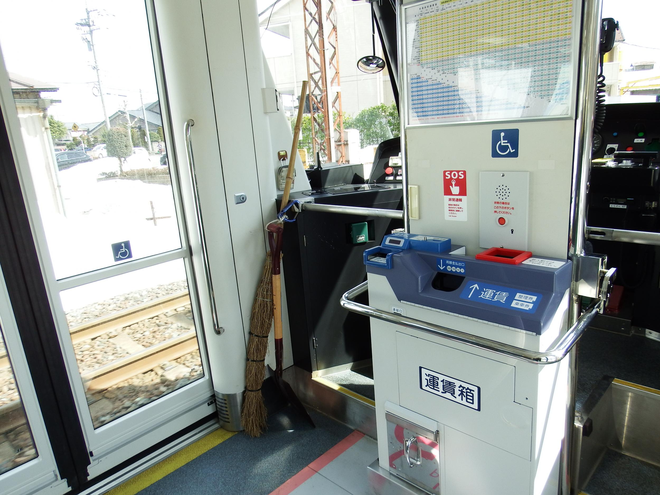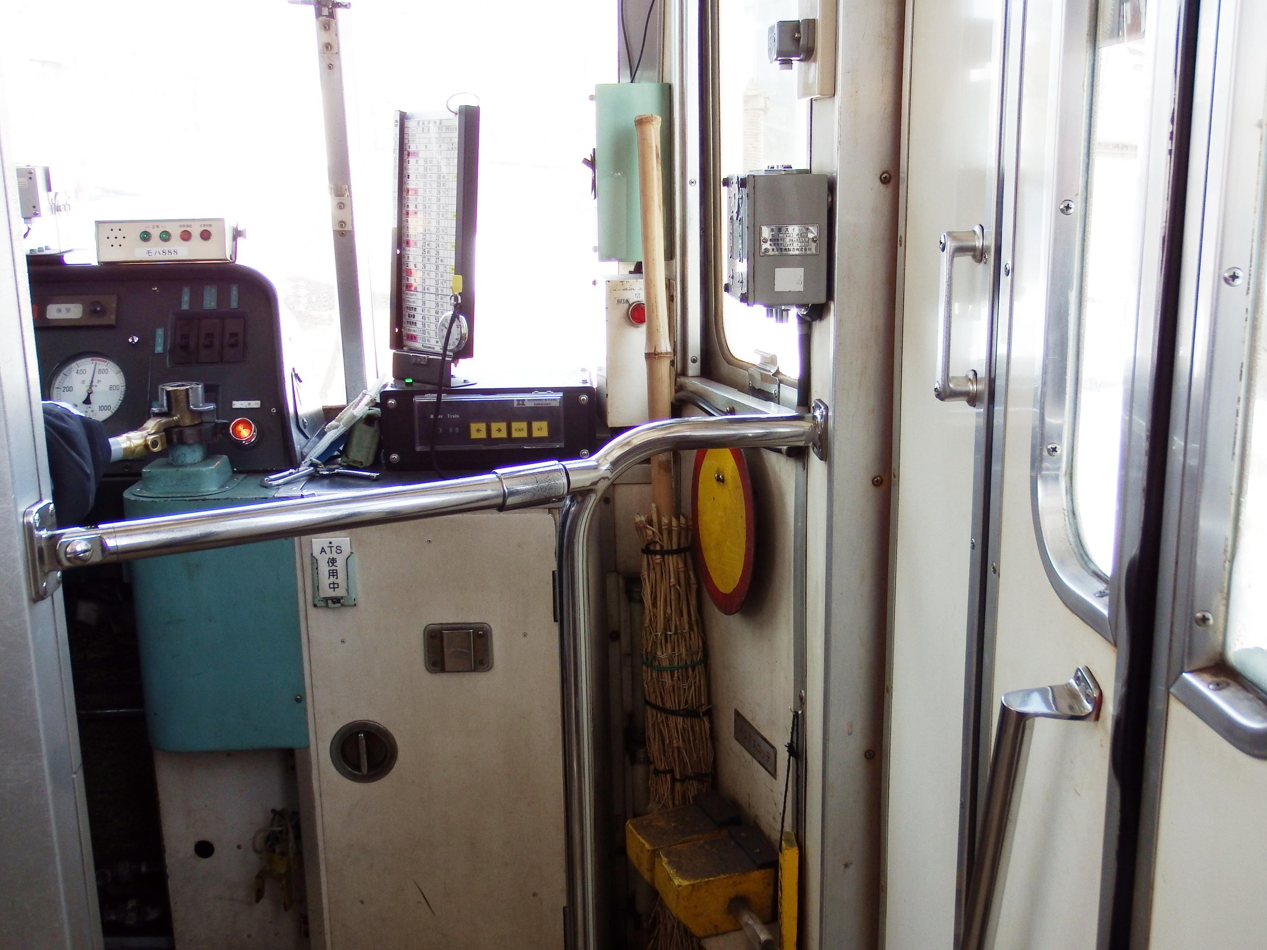運転台脇に竹箒、積雪時には何かと役立ちそうです。戸締め装置は此ノ戸と他ノ戸の2連式。