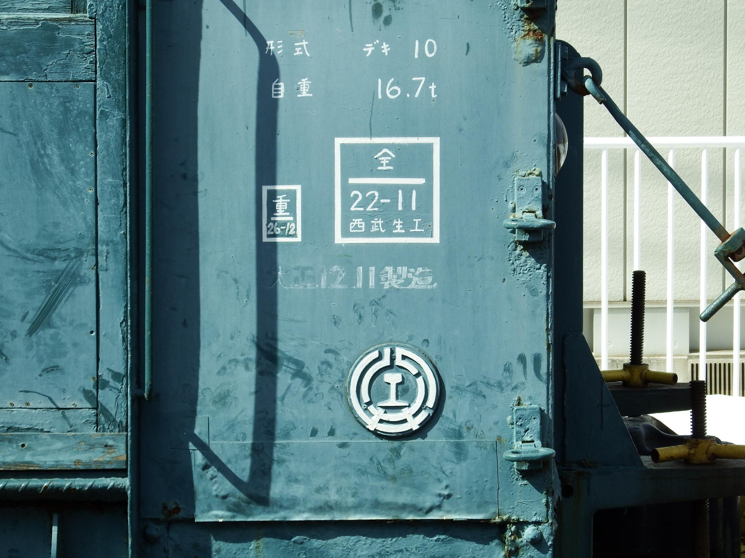 たぶん真鍮削り出しの福井鉄道社紋の銘板、レールの断面の周りにフク井、と読めます。デキ11の切り抜きは1のハネの部分だけ塗られていないのは何故でしょう。
