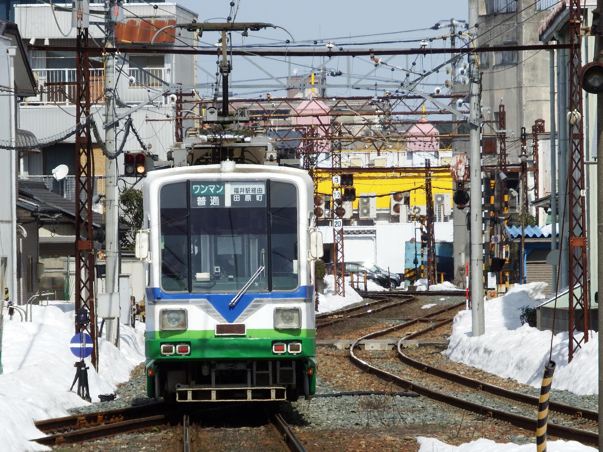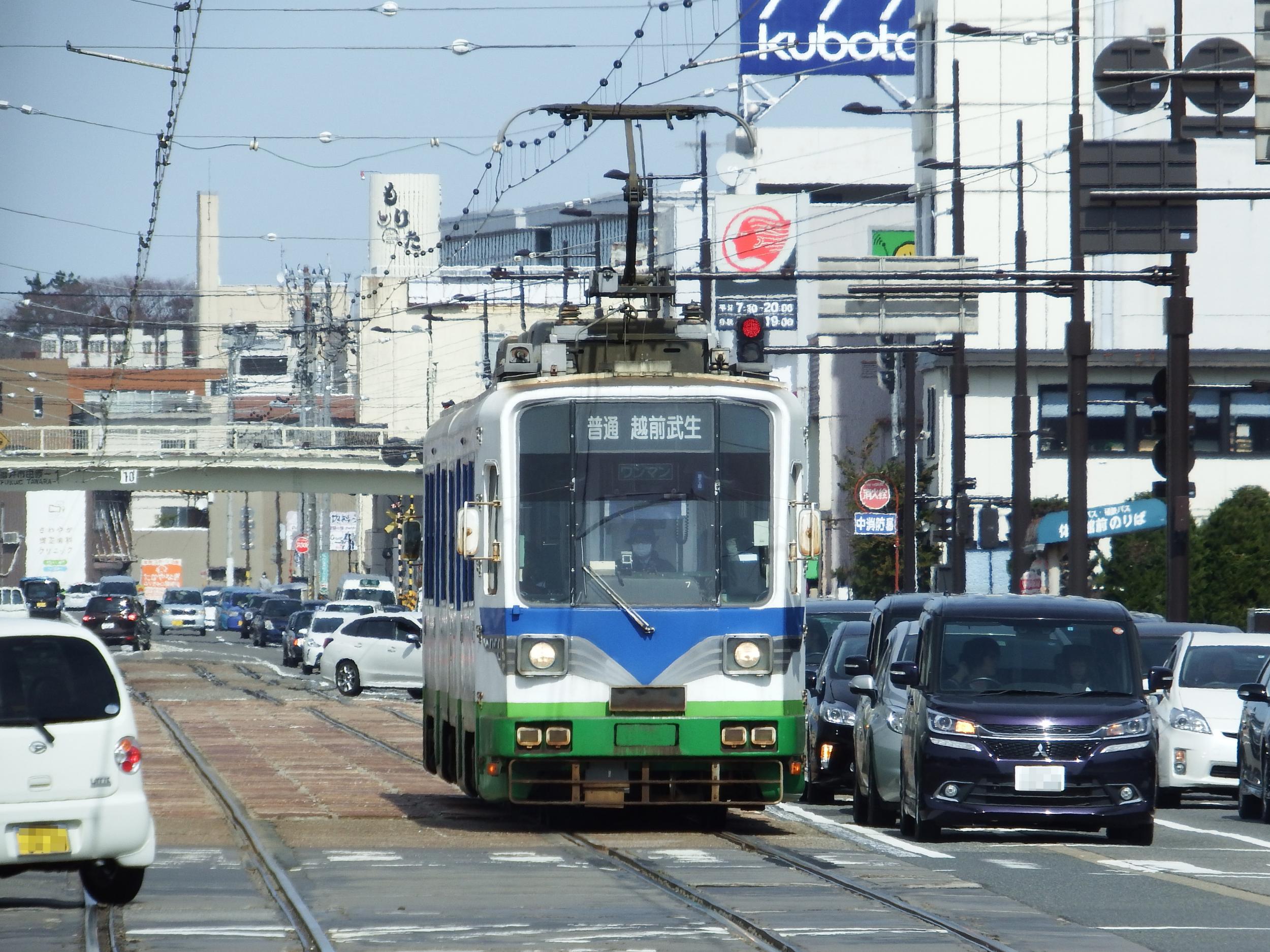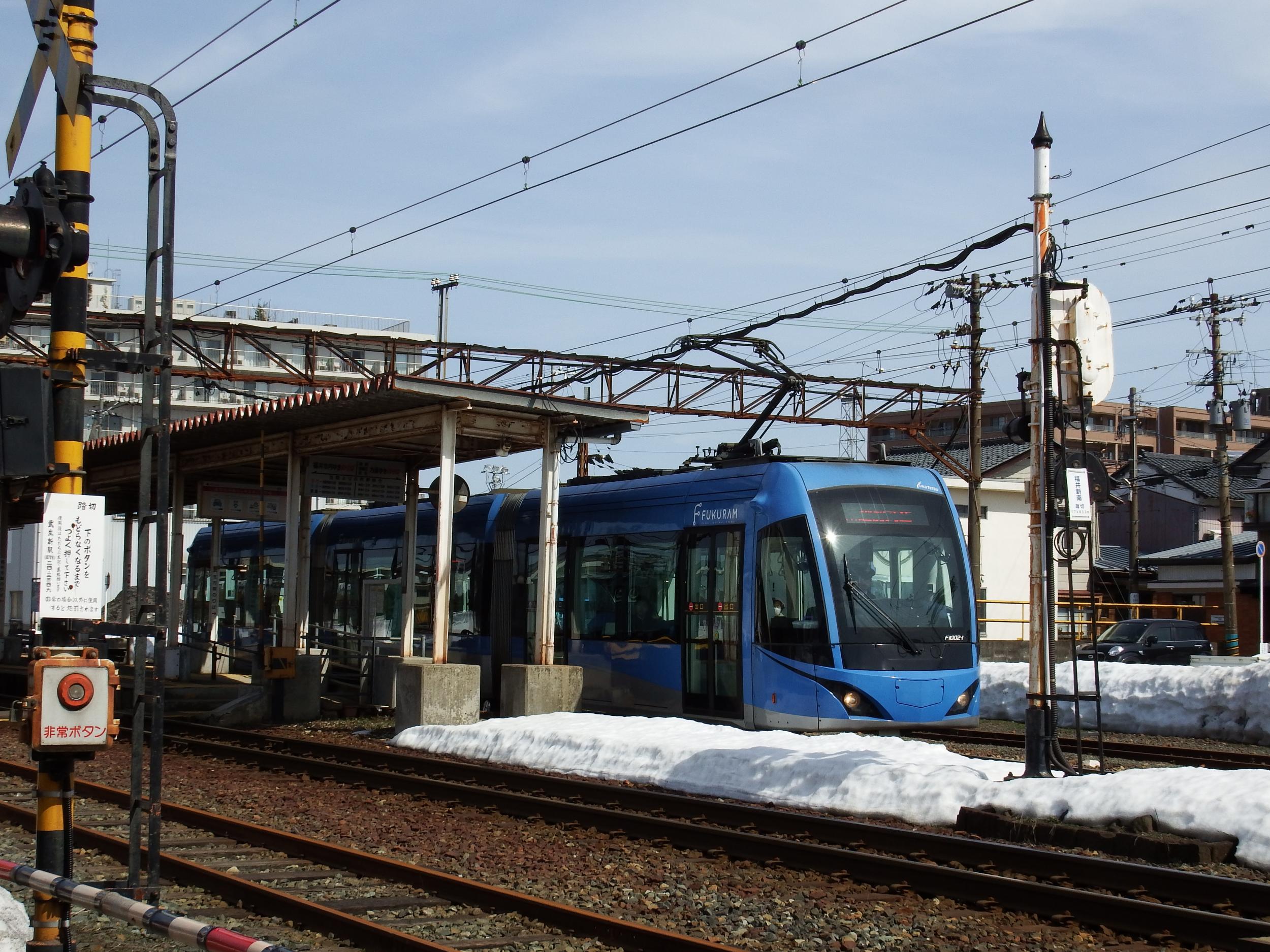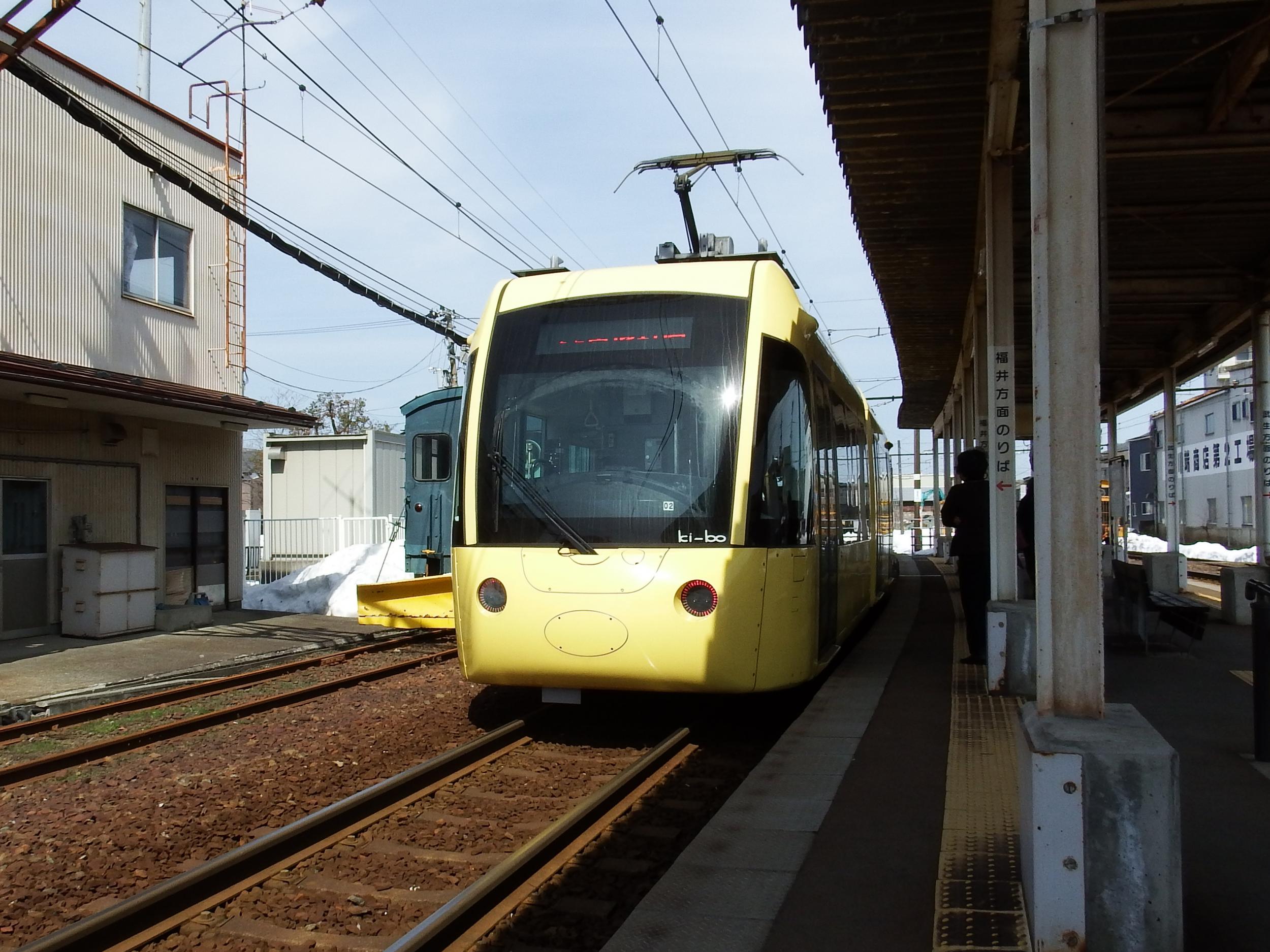 2連接で収容力がなく、設計当初からラッシュ時を外しての運用が前提だそうです。それだけじゃなくて鷲塚針原では40分、越前武生でも27分の折り返し時間があり、どう考えても非効率で、相互乗り入れのシンボルとしても予備車無しの1編成だけで十分かと。検査や故障の時は、フクラムを借り入れるか、あるいは田原町まで三国芦原線の大型車、田原町から880形でも全然問題無いでしょう。ちょっと乗っただけでは分からない事情があるのかも知れませんが、地方での鉄道相互乗り入れという偉業を成し遂げただけに、他都市のモデルケースになるような運用が求められます。キーボ撮り鉄乗り鉄が目的でやってきた福井ですが、どうにも気になります。予備編成は3連接に改造して福井鉄道に貸出すか、あるいは他社へ売却が適切かと。