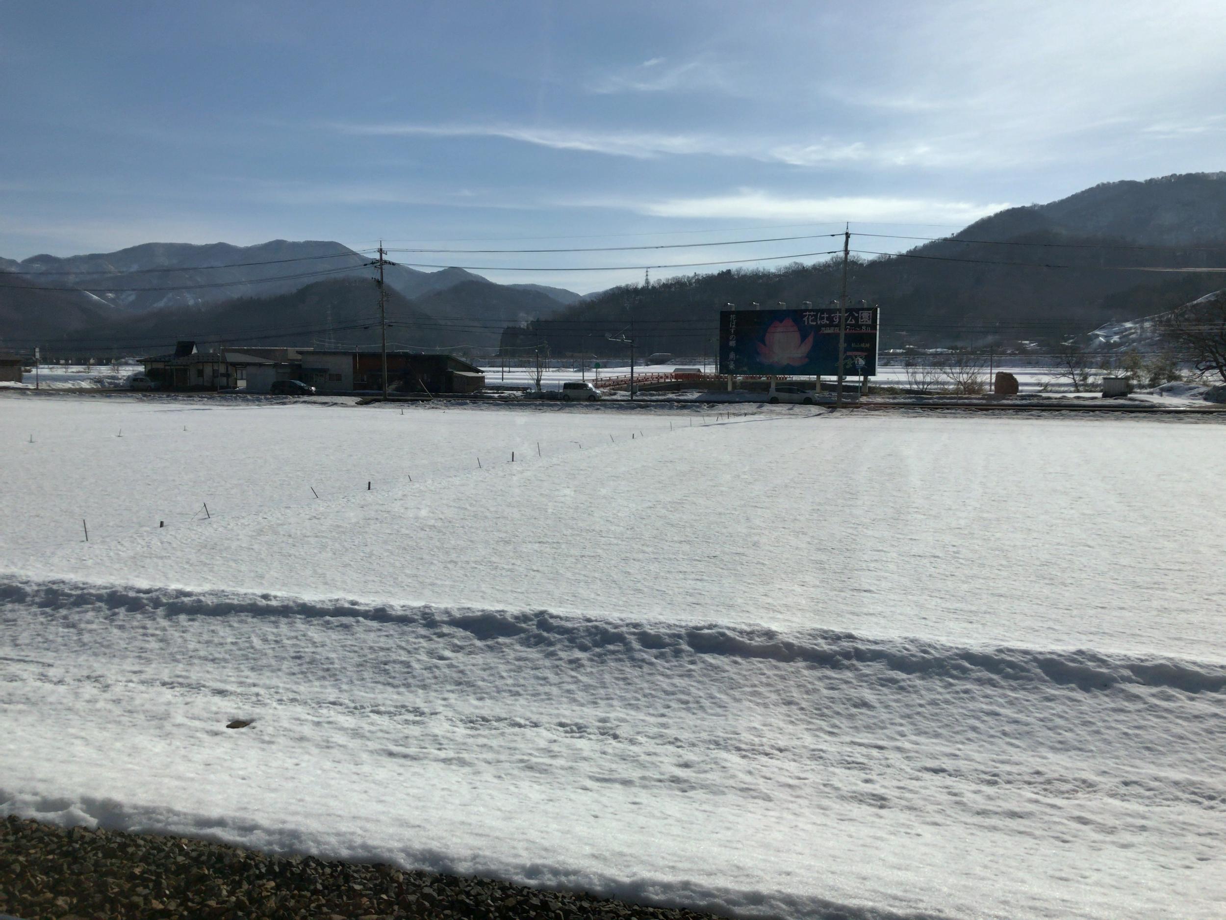 湖西線永原辺りからちらほら地面に雪が残っていたのですが、北陸トンネルを越えた南今庄では待合室の屋根に20cmくらい、湯尾付近では田んぼは真っ白。