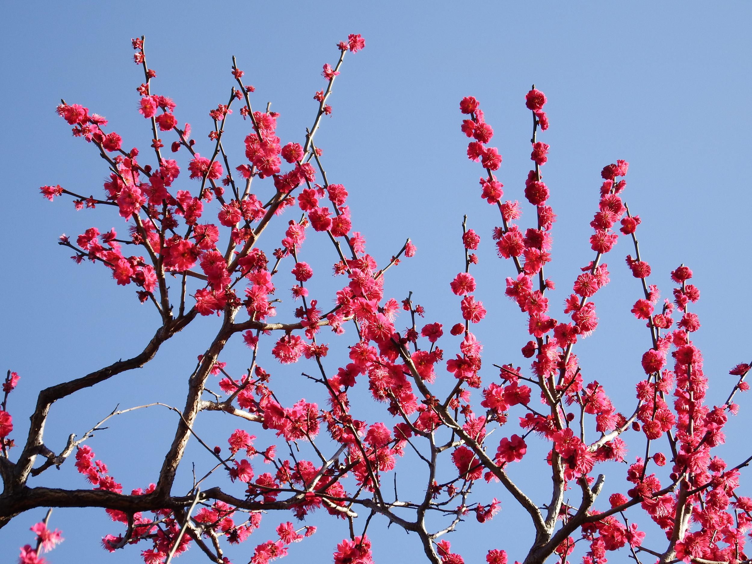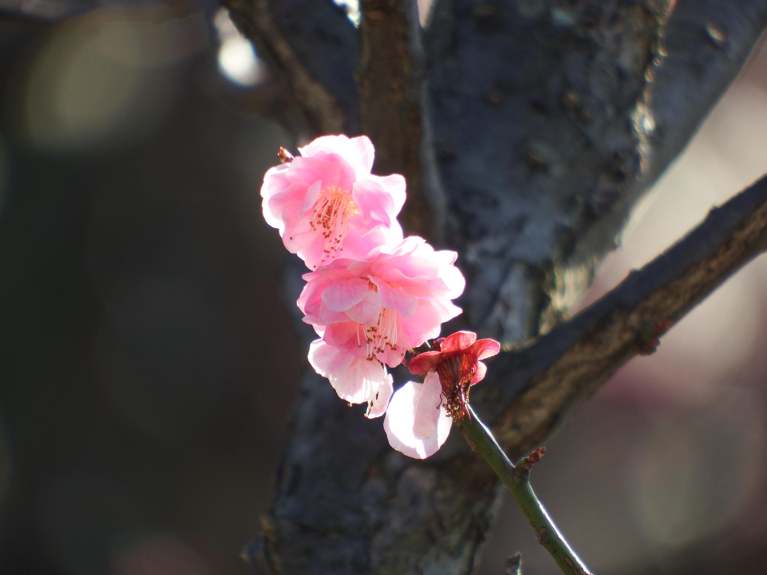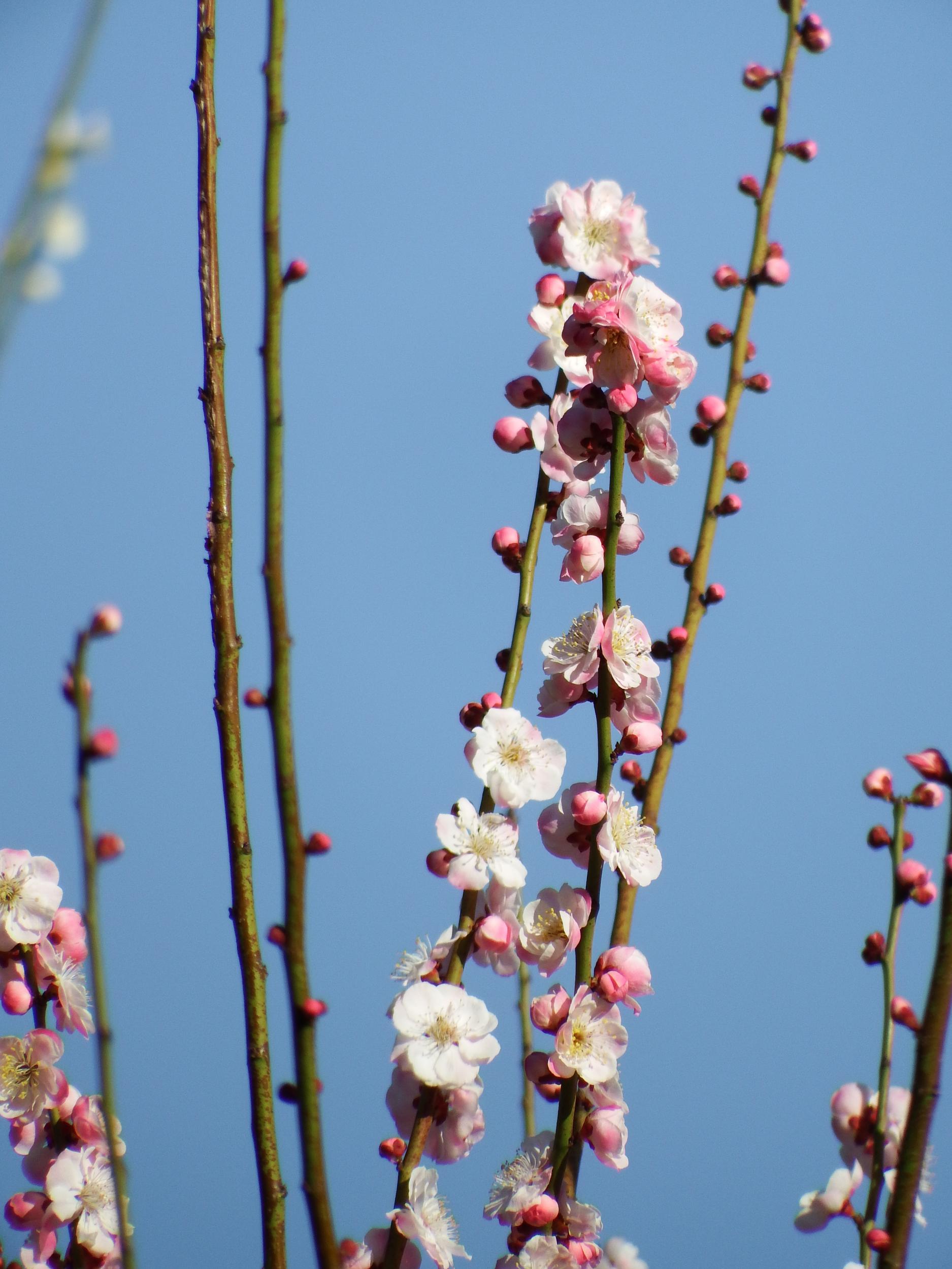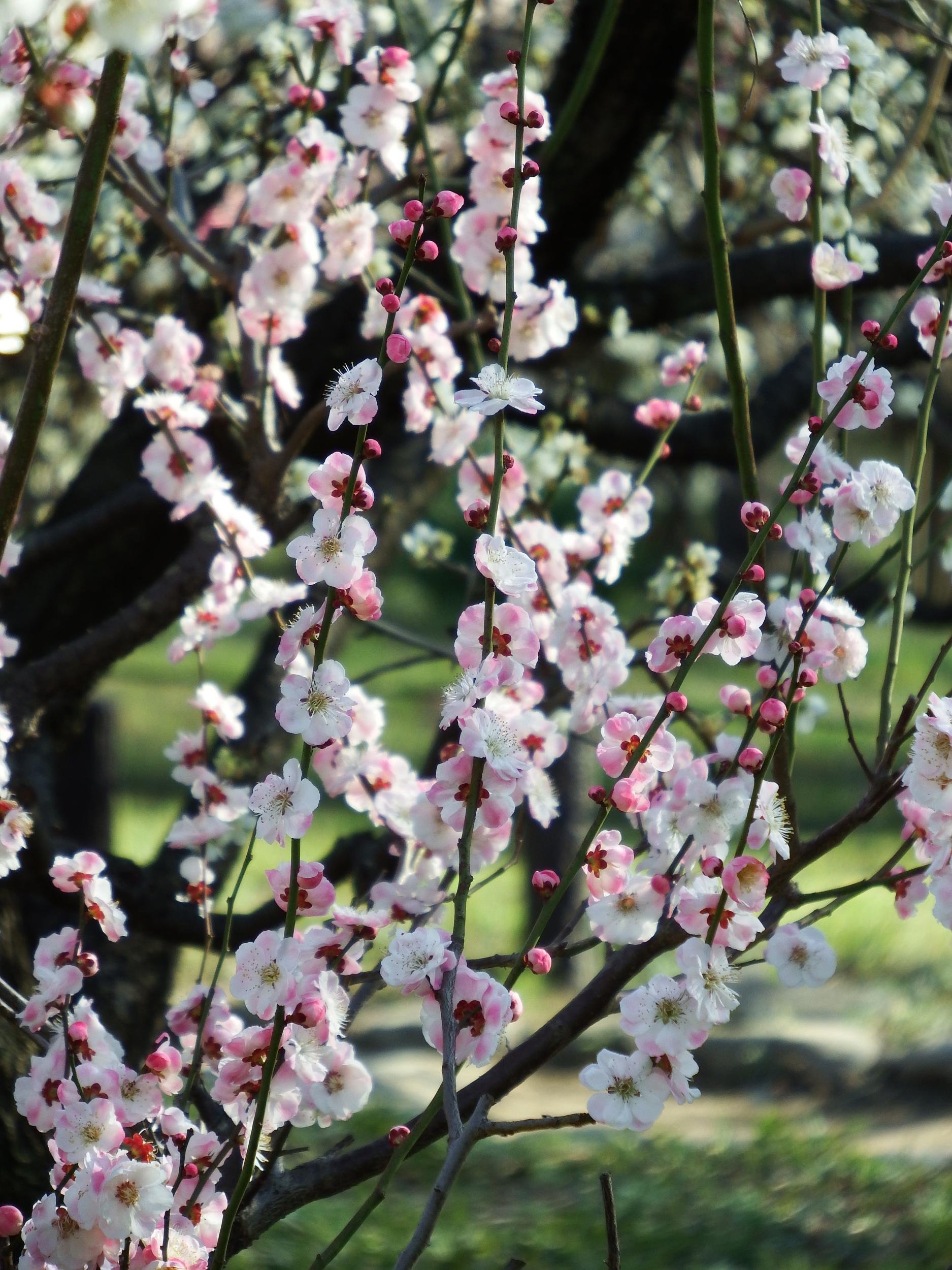 梅林からちょっと外れた東外堀に張り出した場所に1本だけある呉羽枝垂、まだつぼみが固い時この木にエナガが止まっていました。それにしても幹のクネクネ具合がすごいです。