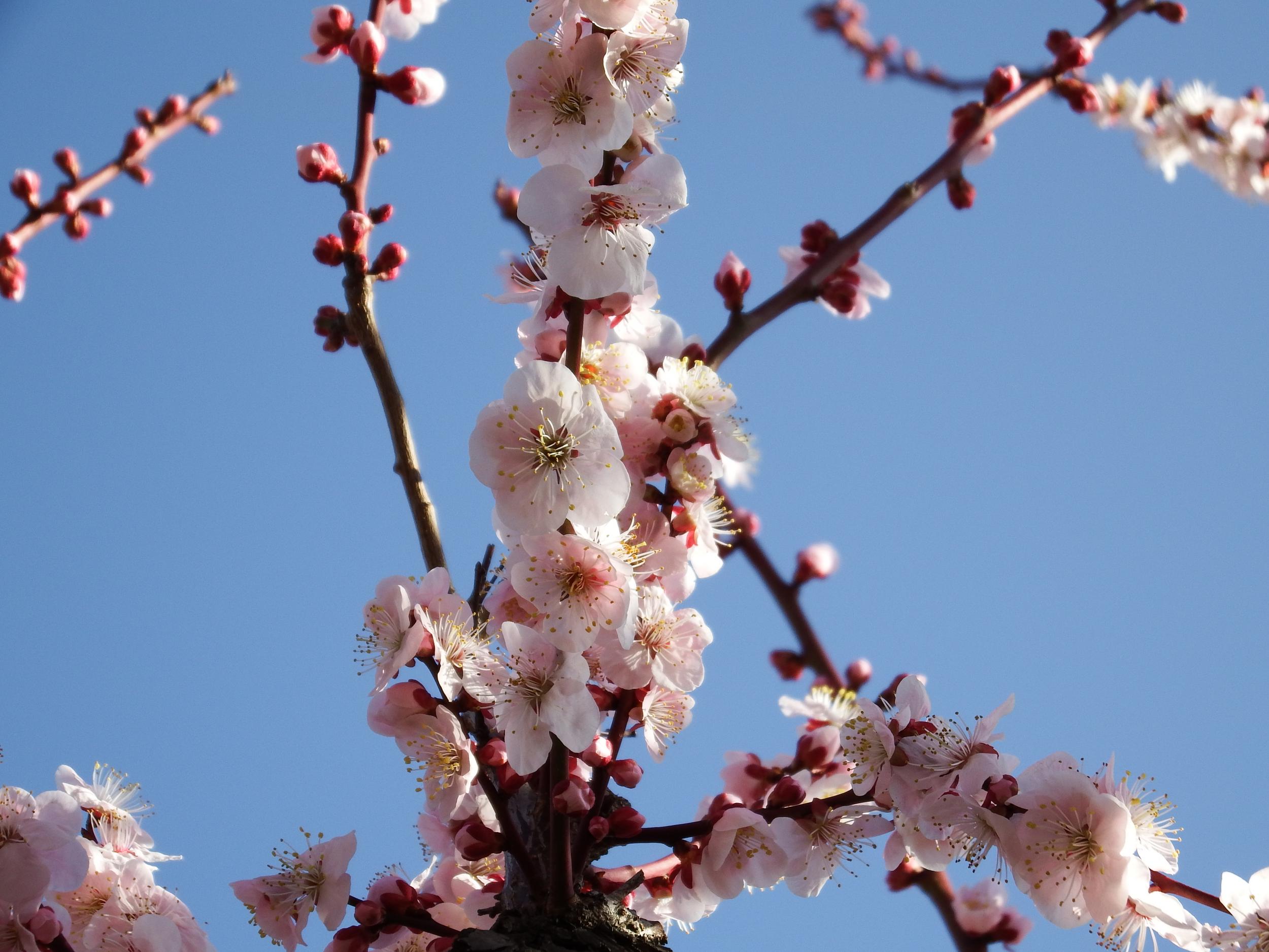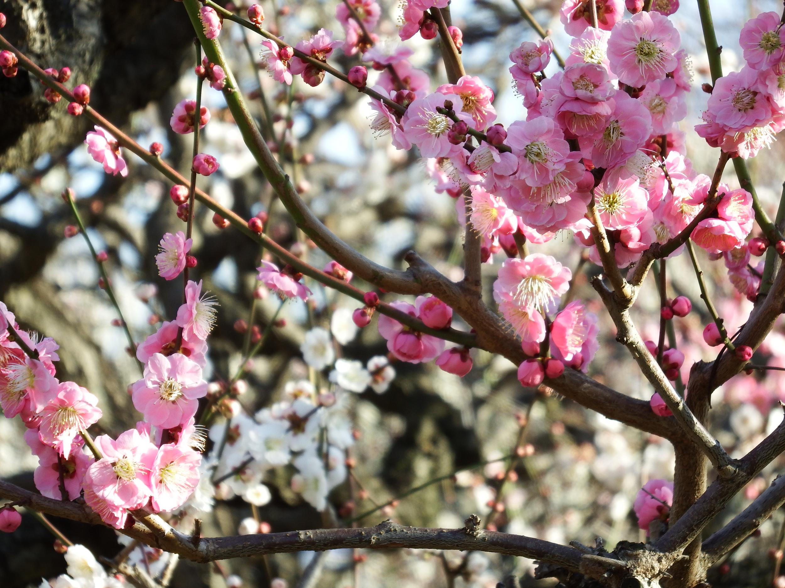 東錦、こちらはひとつの枝から白と薄紅の花が別々に咲いてます。