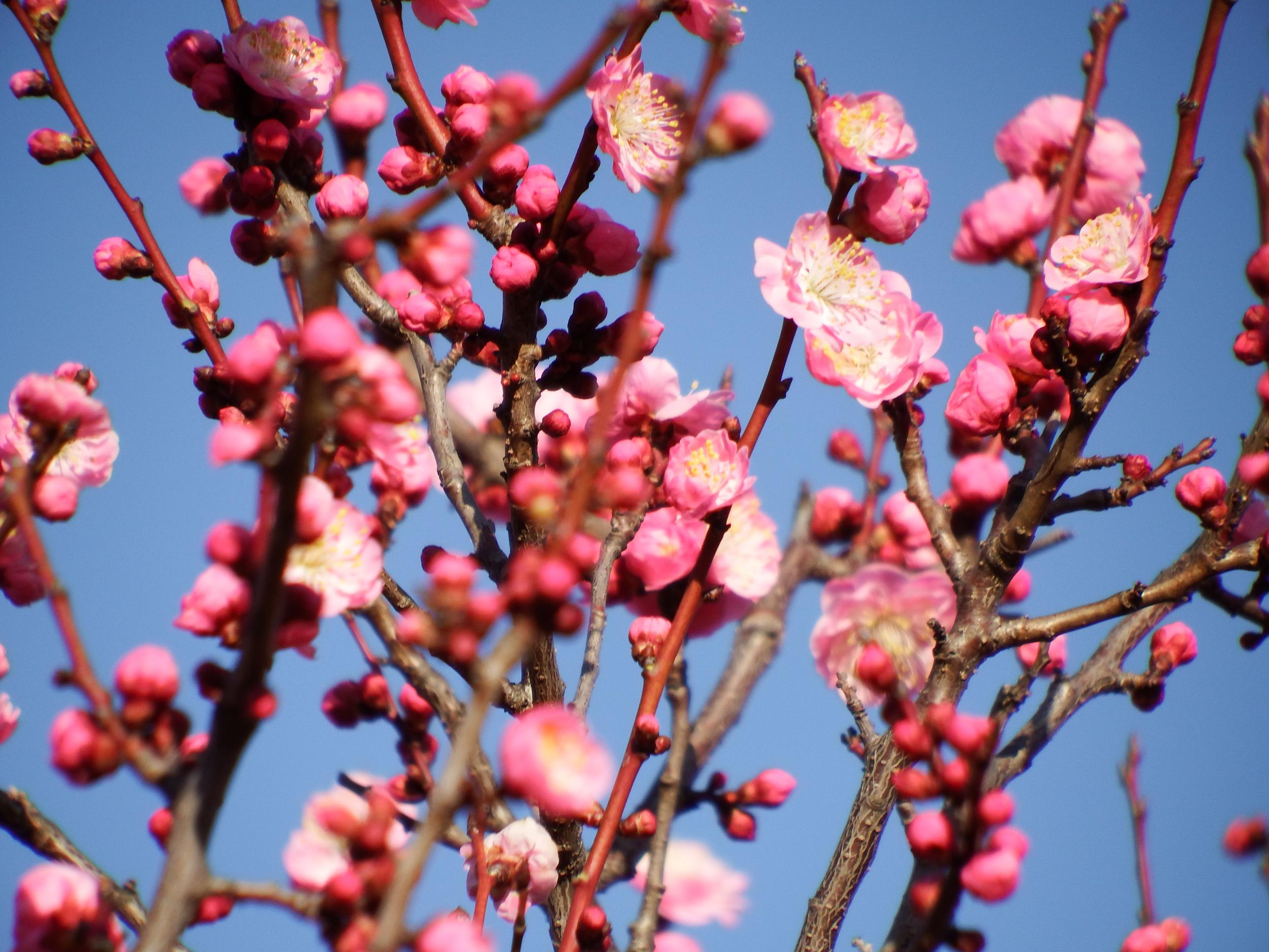 100種類くらいある梅林で最も美しいと思う朱鷺の舞、白い花びら一枚一枚に薄紅色のチーク。