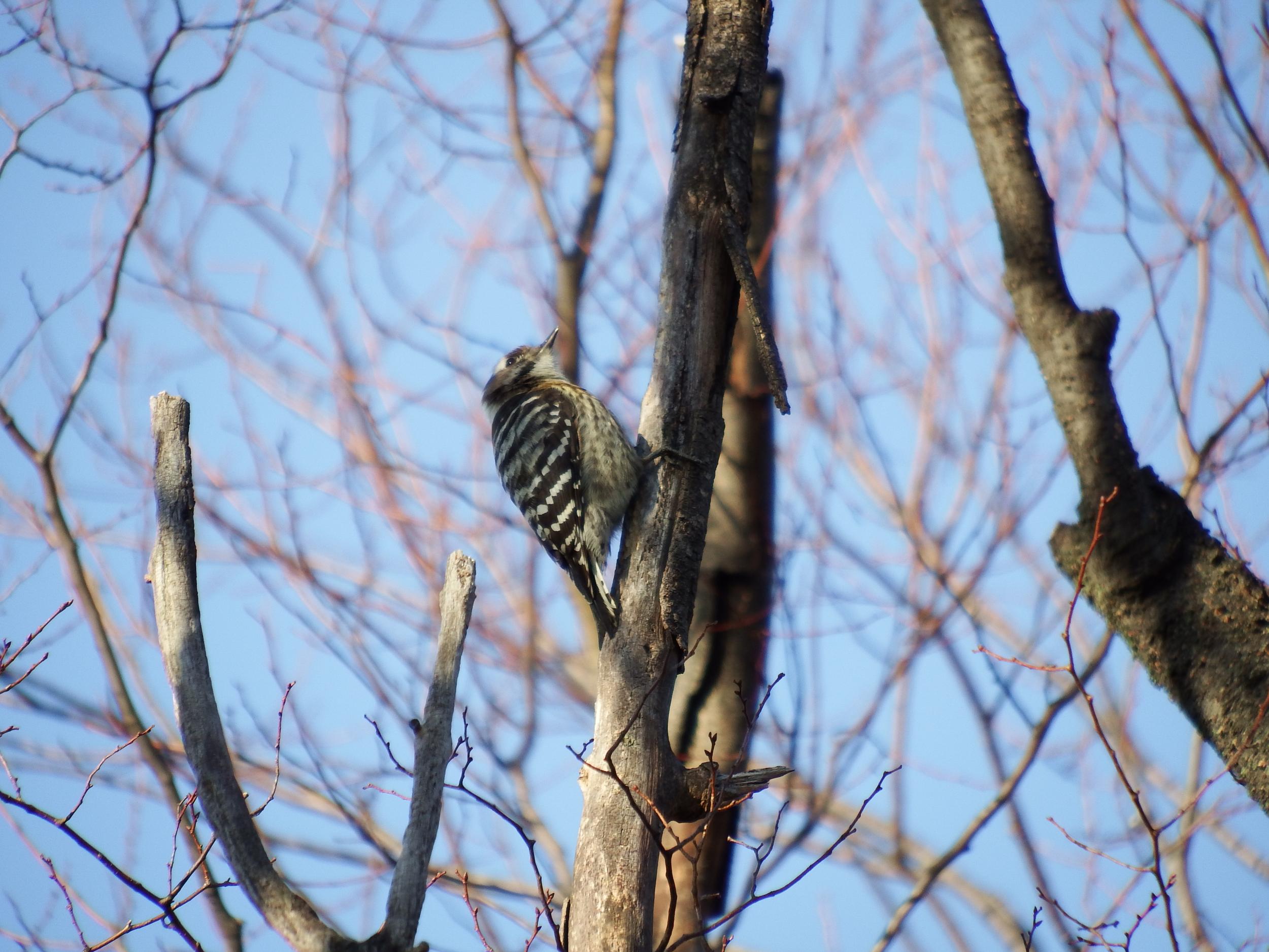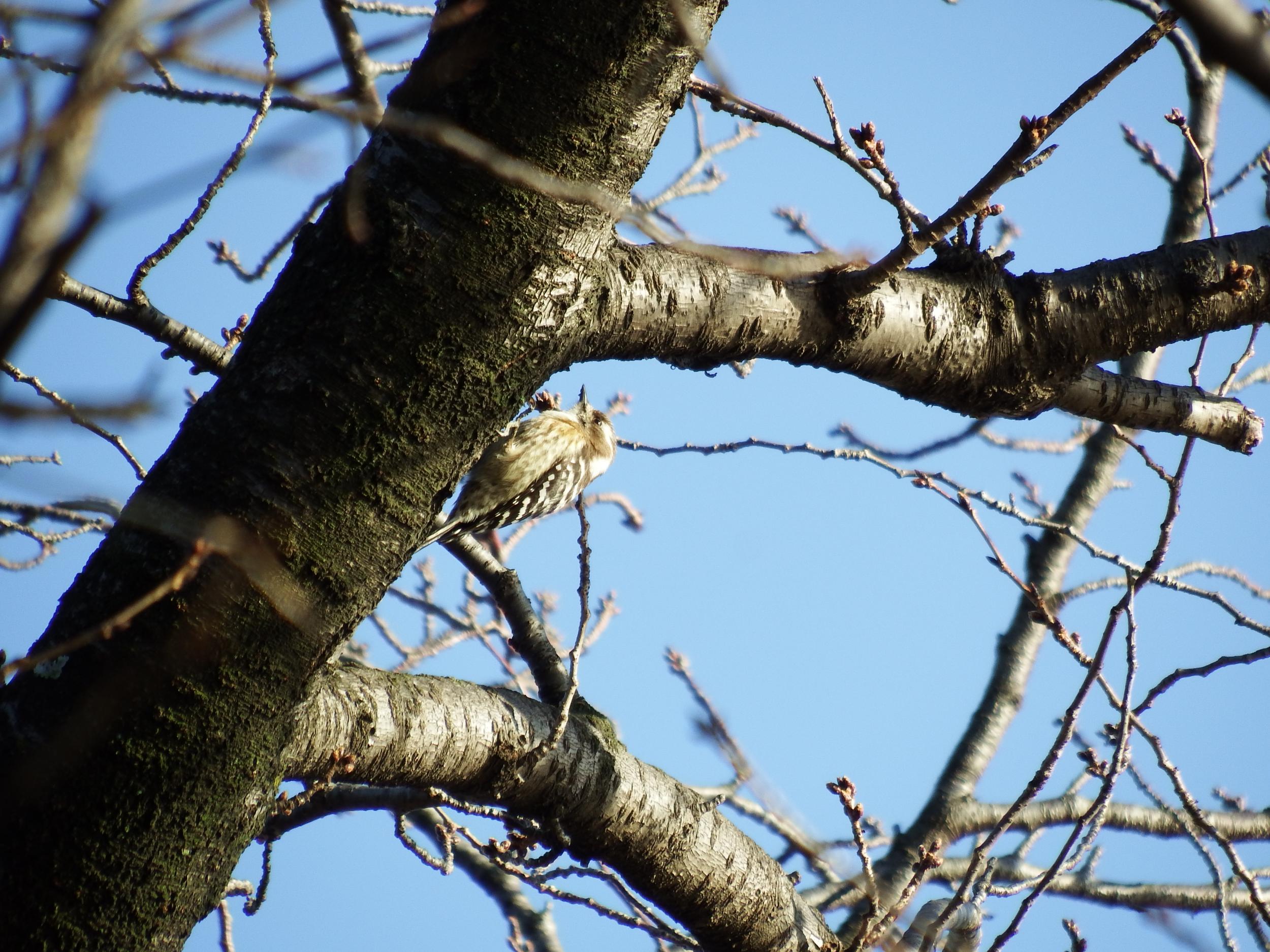 エナガとカワラヒワ、どっちを撮るかとなるとカワラヒワには申し訳ないけどやっぱりエナガ、したらカワラヒワは怒ったように行ってしまったのですが、コゲラがいました。