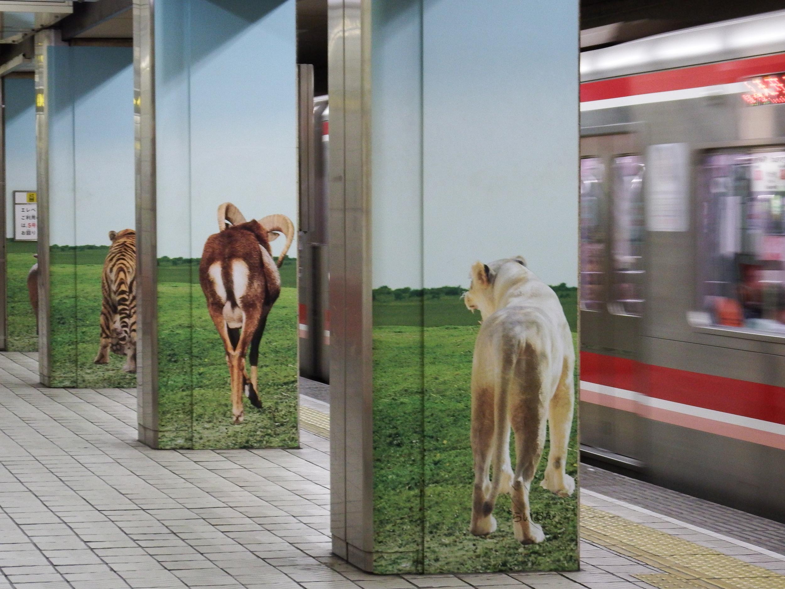 地下鉄動物園前から天王寺へ。動物たちのおいどが並んでます。