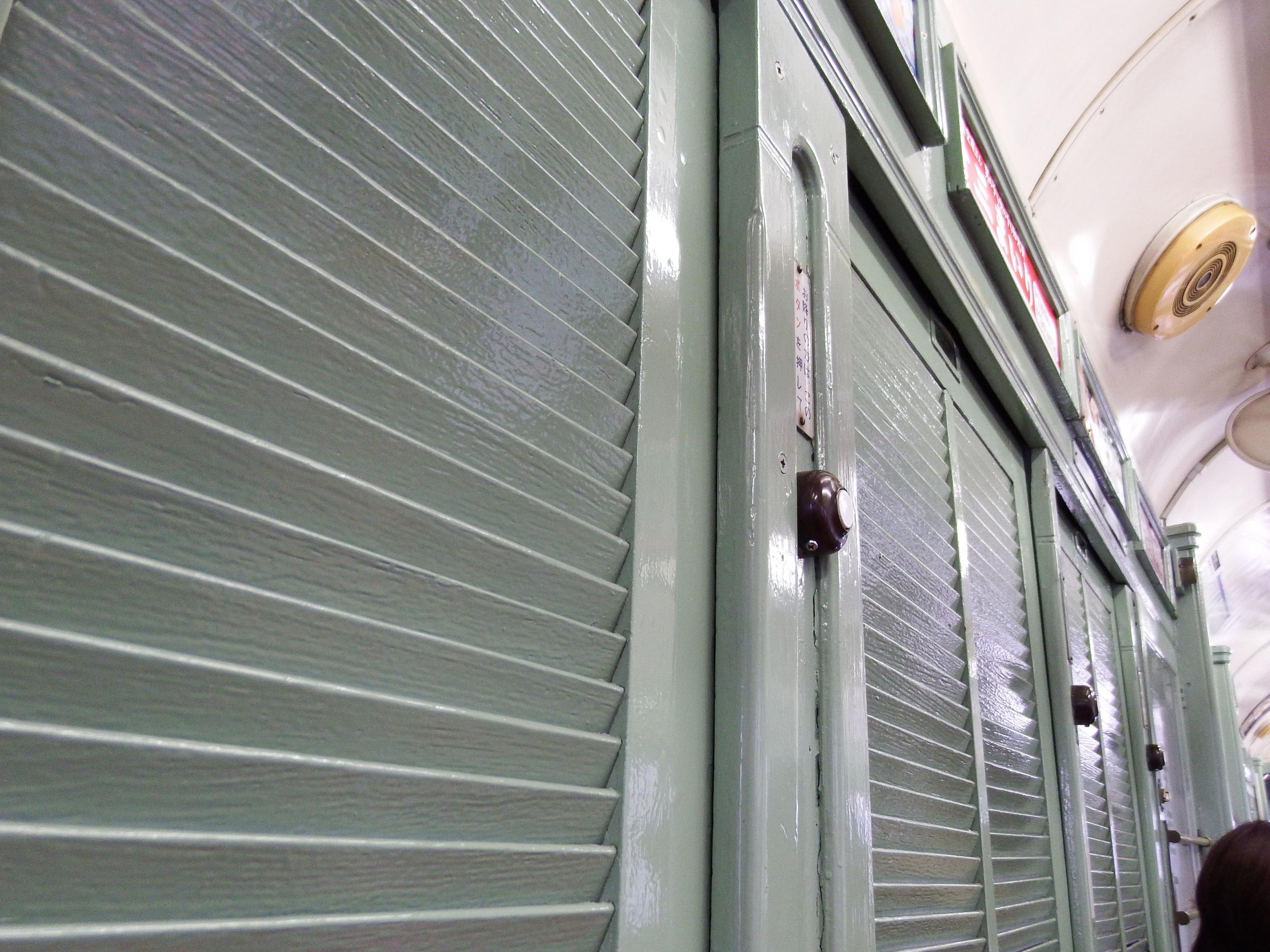 日除けの木製鎧戸がきれいです。製造銘板は神戸川崎車輌會社昭和参年。