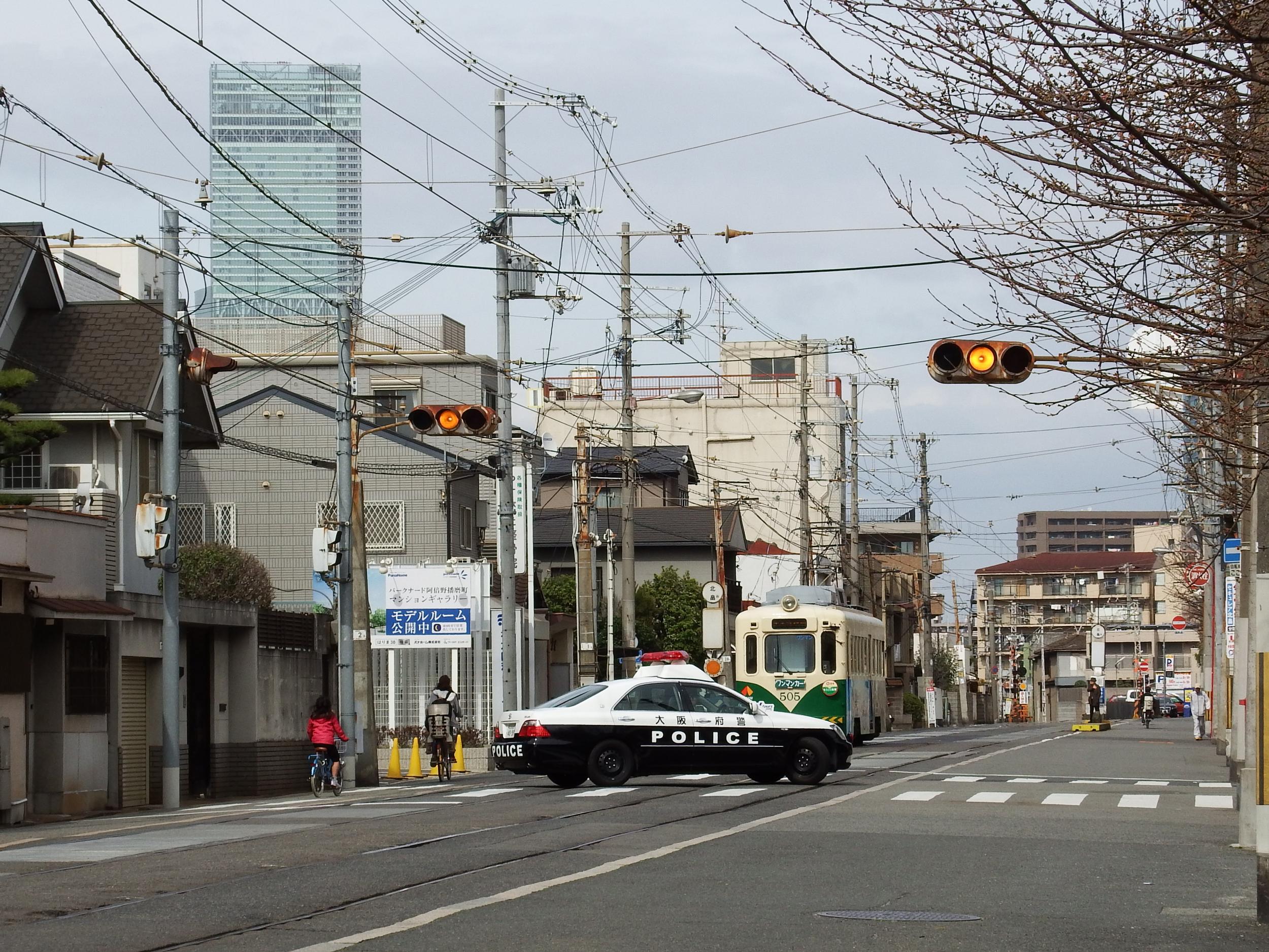 僅かな乗客を乗せて発車、阪堺線の恵美須町-住吉間はやはり先行きが不安です。環状線の323系がオーバークロスもここからだとくっきりとは撮れません。
