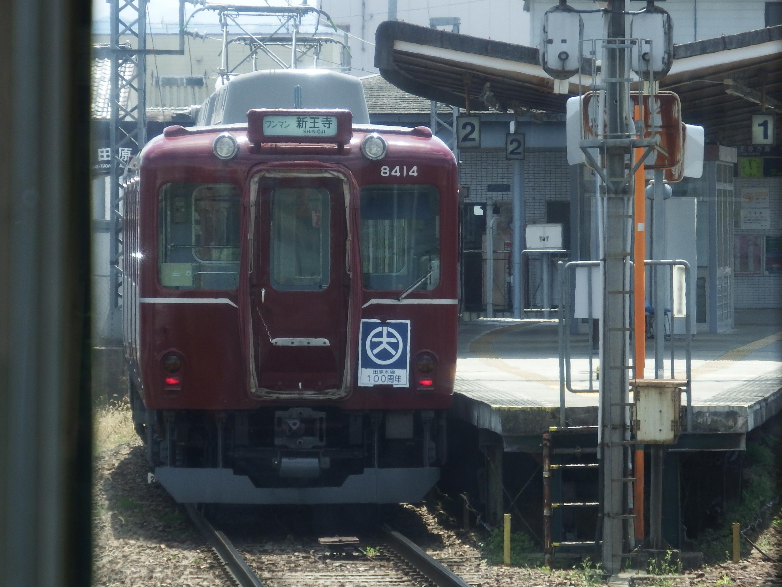 西田原本から標準色の8400系B13編成に乗車したら、発車間際に820系復刻塗装となったB14編成がやってきました。田原本線のワンマン対応ですが、田原本線だけじゃなくて他の3連と連結されて奈良線や京都線にも入線するらしく、せっかく田原本線までやってきたのに目的の電車は自分ちの近くにいた、ではシャレにならないところでした。