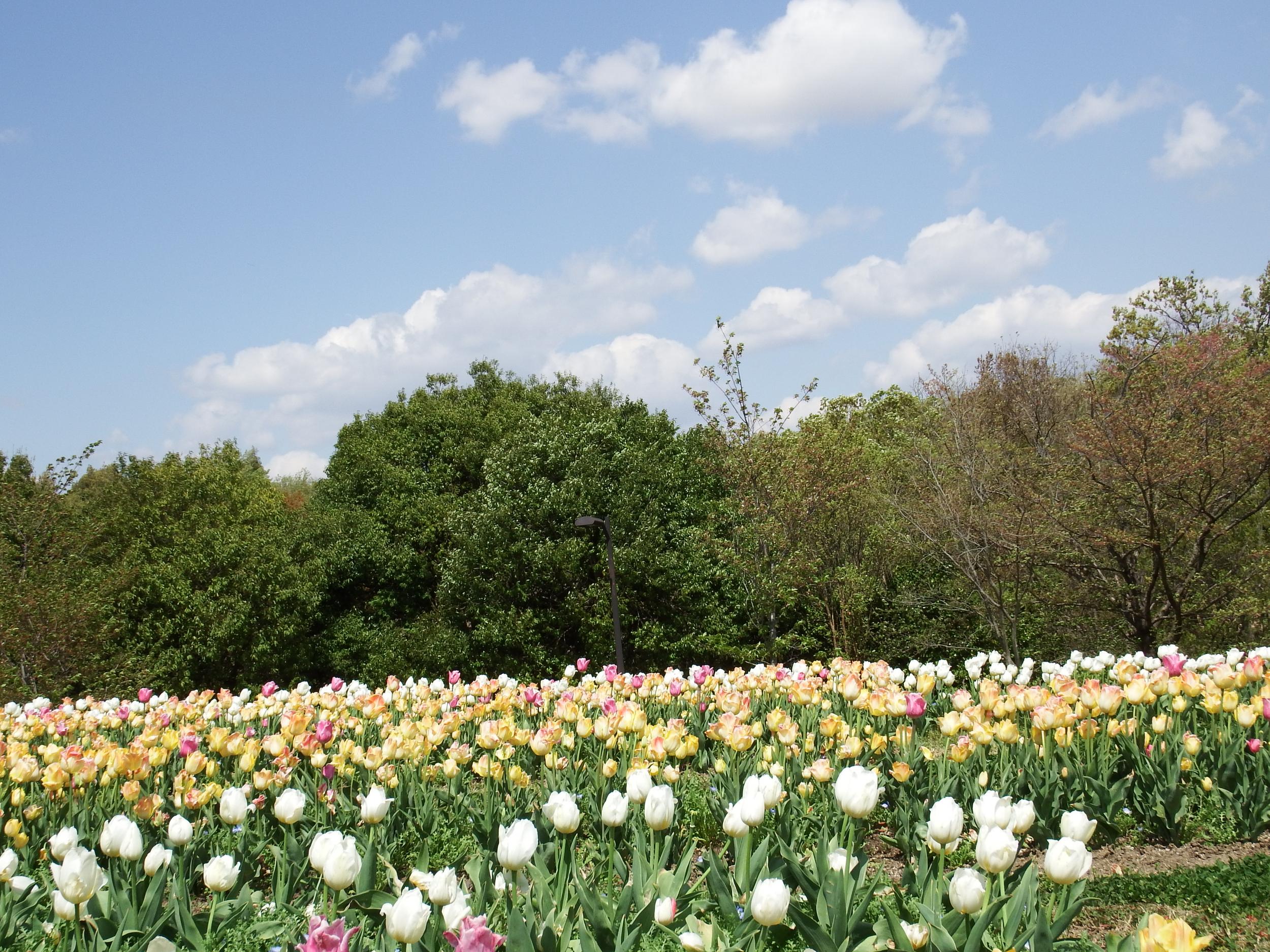 久しぶりの馬見丘陵公園はチューリップが満開。園芸品種の花にはあまり興味がないものの、これだけ綺麗だとさすがにカメラを向けたくなります。