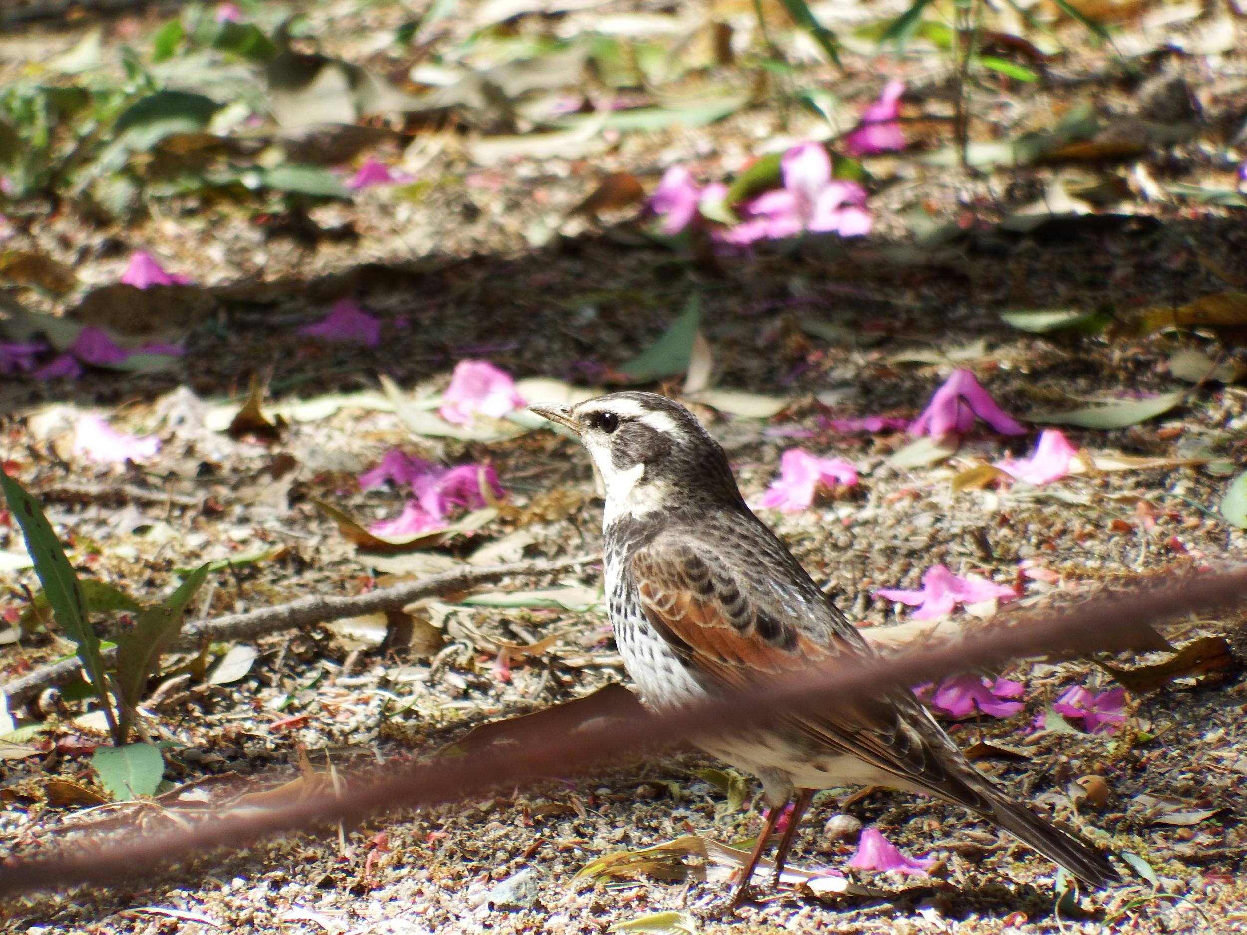公園の周囲は雑木林に囲まれていて、ホーホケキョや色んな鳥の声が聞こえるものの全然見つかりません。何とかツグミ1羽だけ。ハナミズキが綺麗、鮮やかなチューリップより惹かれます。