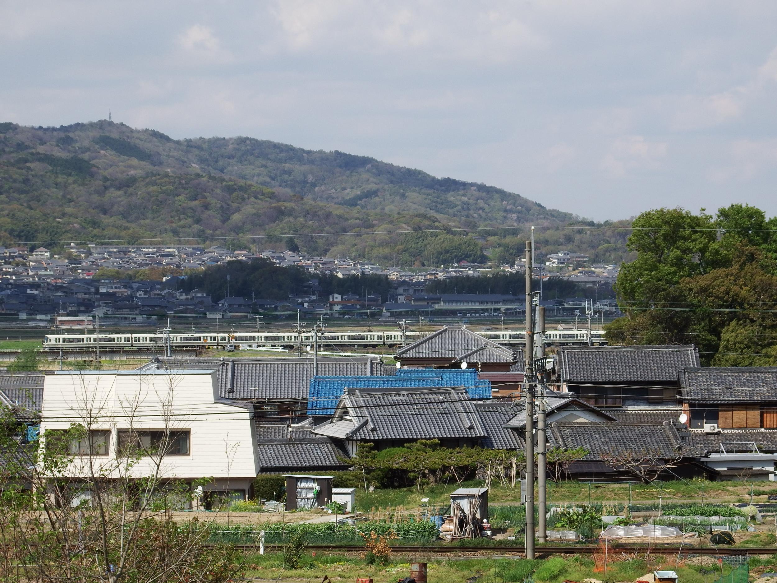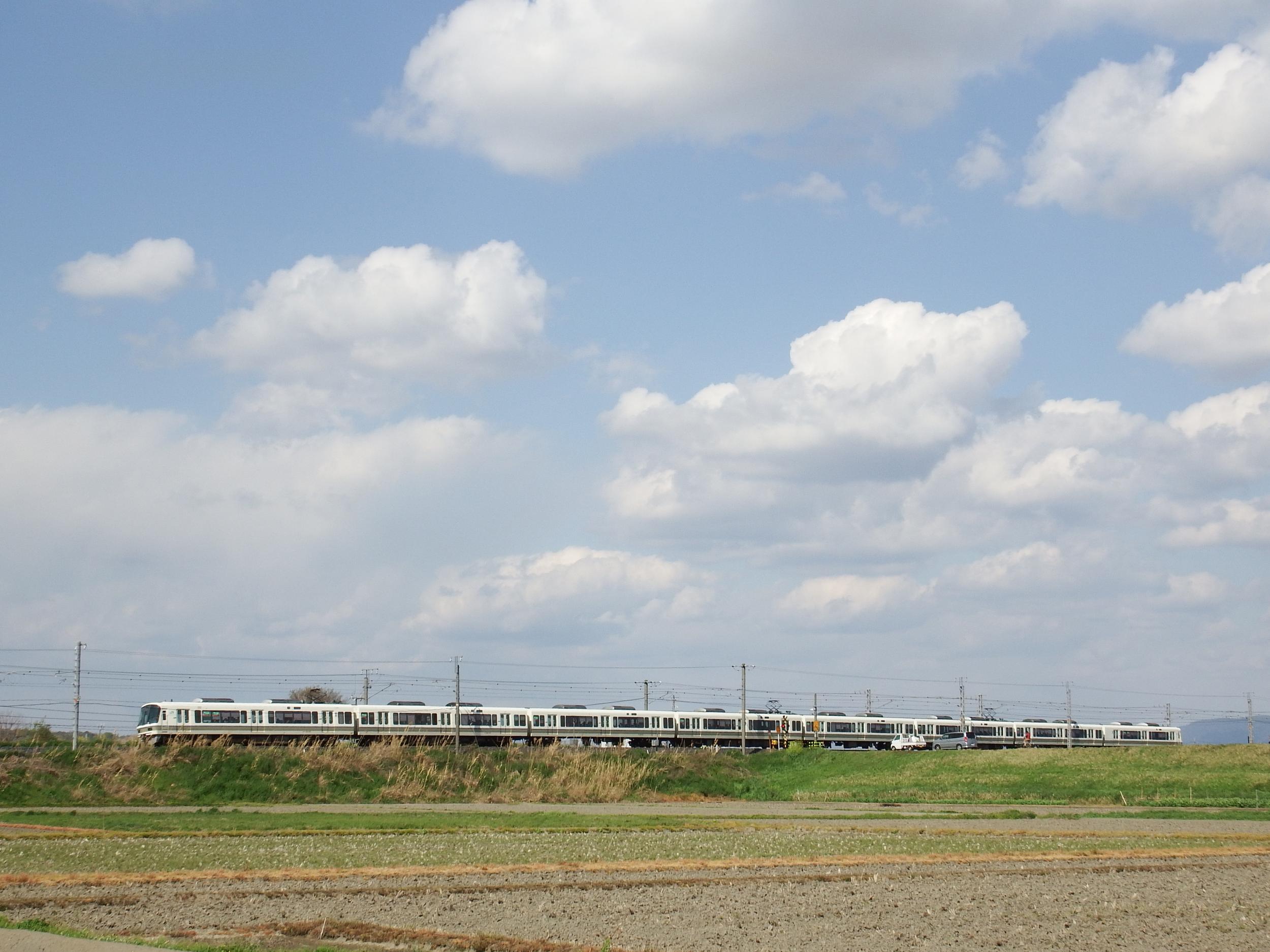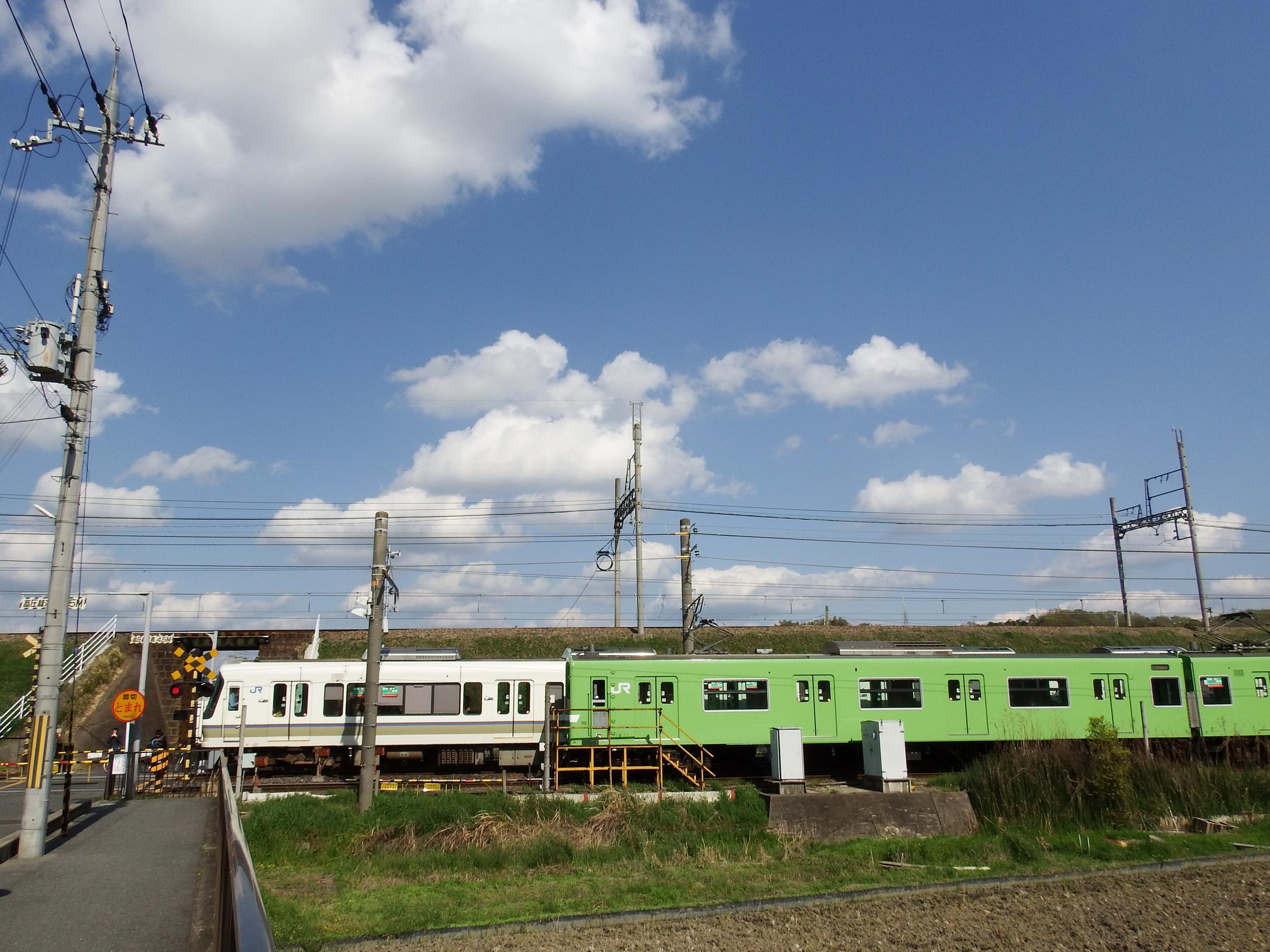 駅の北側には大きな空間が広がっています。221系が大和川を渡り築堤を下りてきます。空にはヒバリ。風も強く、先週の陽気が嘘のように寒いです。