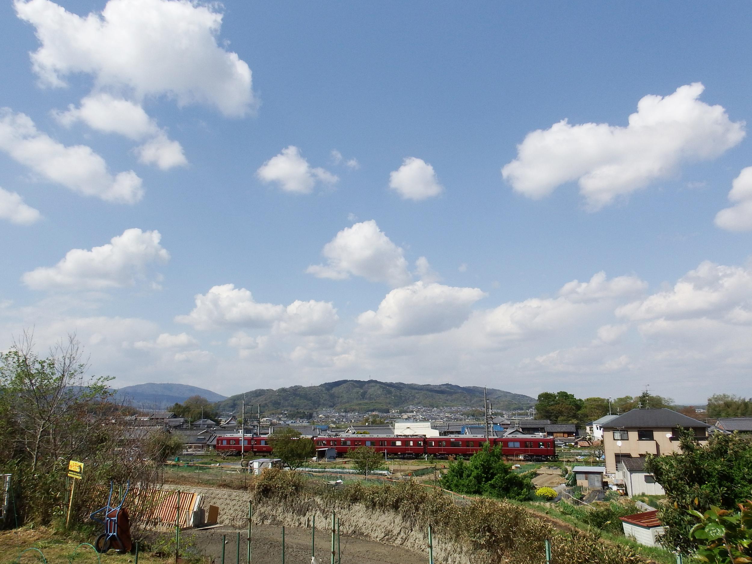古い建物では無さそうですが木造スレート葺のいい感じの駅舎です。東側に広い空間が広がっています。正面は竜王山。B14編成が来る前に西田原本行で試してみたところ電車の顔が逆光になるので別の場所を探します。田原本駅は奈良県磯城郡田原本町、箸蔵駅は奈良県北葛城郡広陵町で、この辺りは平成の大合併とかなくて小規模な自治体がビッシリ並んでいます。水道の運営とかどうなっているんでしょう。