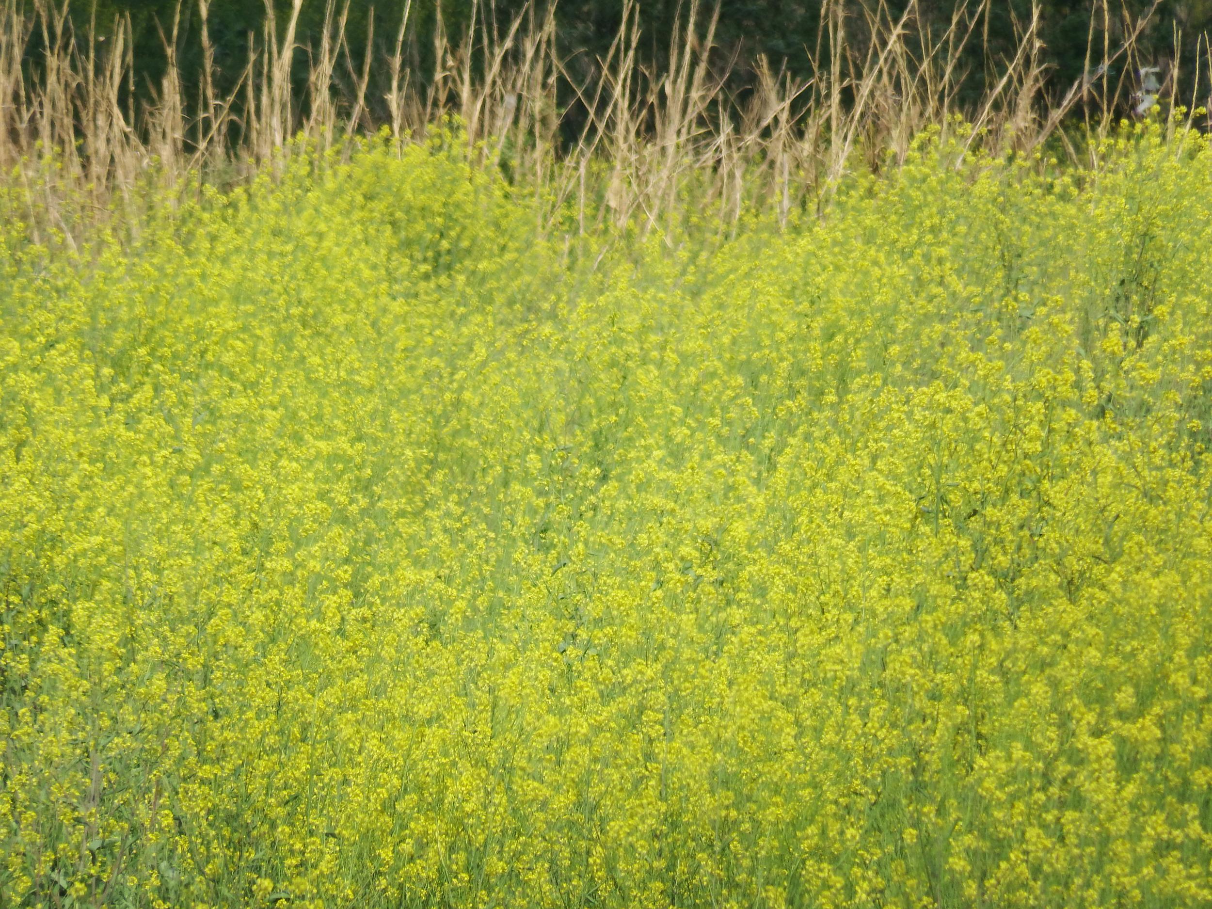 土手の内側には菜の花がビッシリ、信貴山がよく見えます。生駒山地にあるのに大阪からは見えない山です。