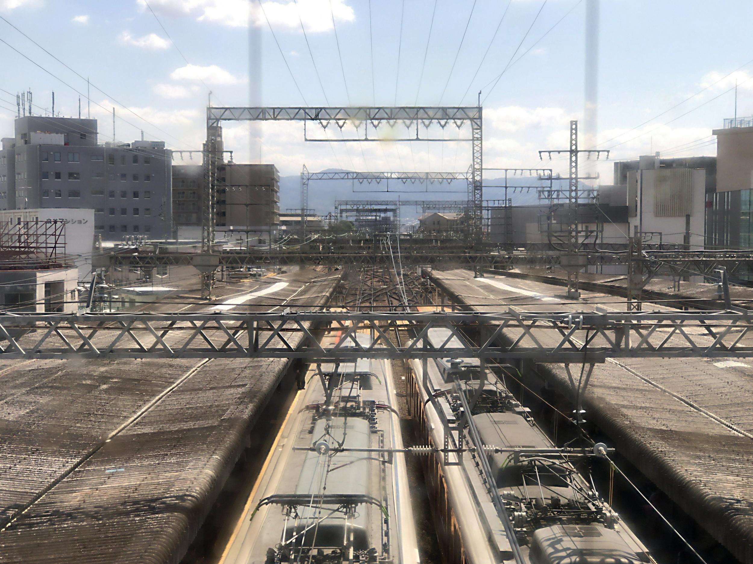 満腹してすく近くにある喫煙所で一服、西向きの展望デッキより、東向きの喫煙所の方がポイントが交錯して、トレインビューとしてはこっちの方が面白いのですが、窓ガラスにはヤニがこびりついてます。