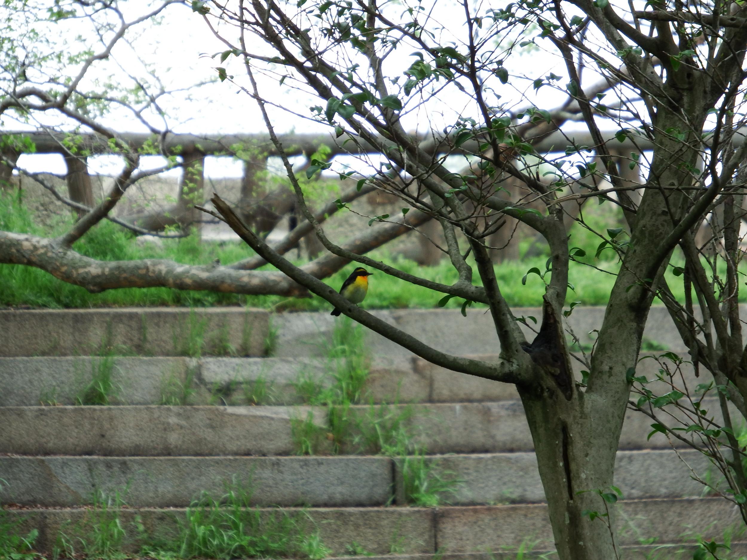 鶴彬の歌碑の近くでキビタキ。この1カットで見失ったものの今季初キビタキ。
