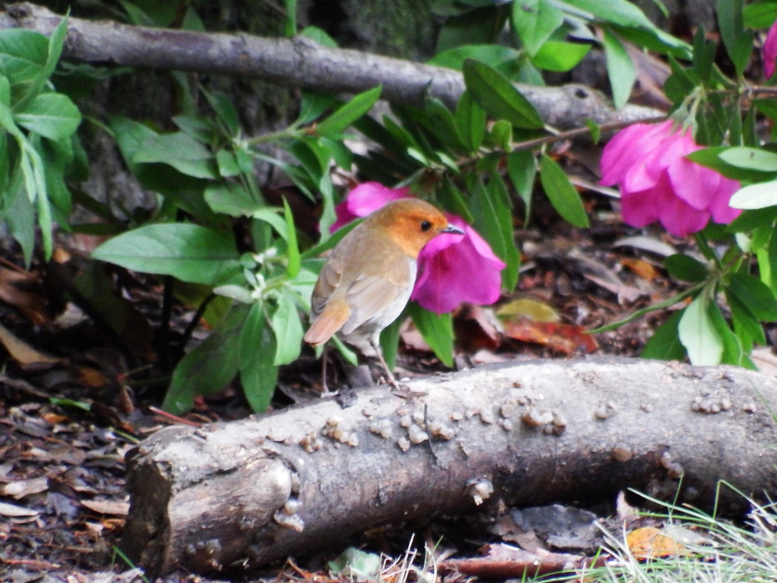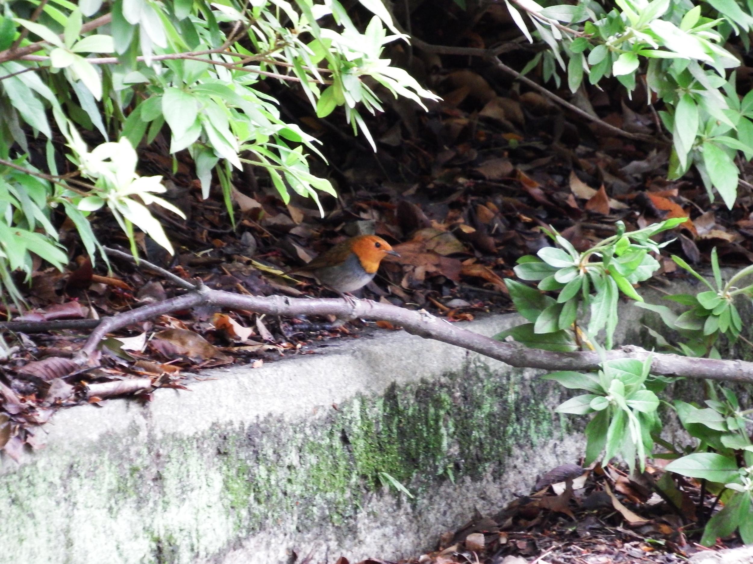 修道館裏に10人くらいのギャラリー、ツツジの垣根にコマドリ。これまでも殆どシルエットだけ、今日も垣根の陰だとなかなかピントが合わなかったももの、オレンジ色のコマドリが何とか1カット撮れました。