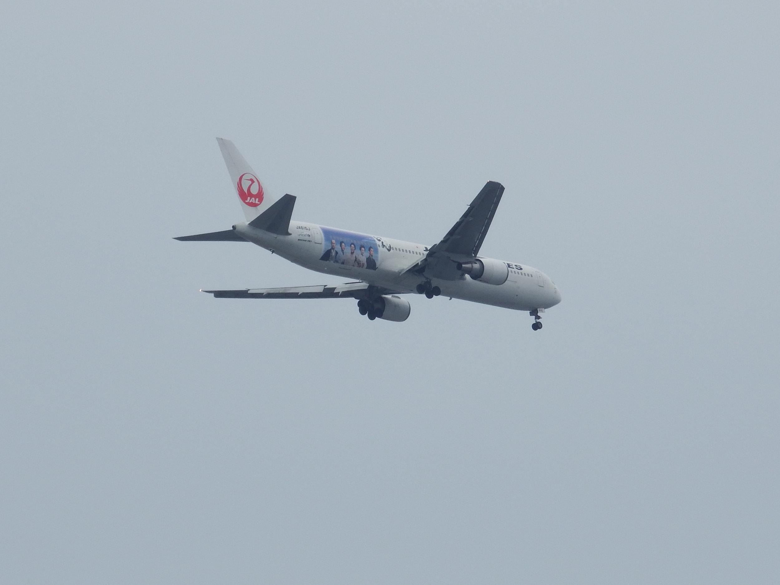背の高い雑草をかき分け苦労して赤川鉄橋の下をぐるっと回ってみたもののそれだけ。JAL機に何か描いてあるなと撮ってみると西郷どん、左端が島津斉彬の渡辺謙さんです。