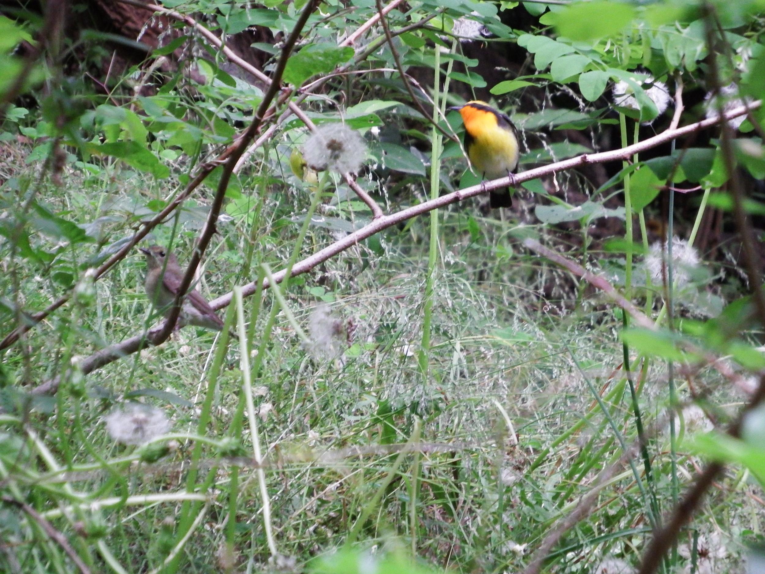 キビタキはどっかへ行っては同じ場所に戻ってきてくれます。♀もやってきました。縄張り意識の強いキビタキでこの距離感は夫婦で間違いないと思います。