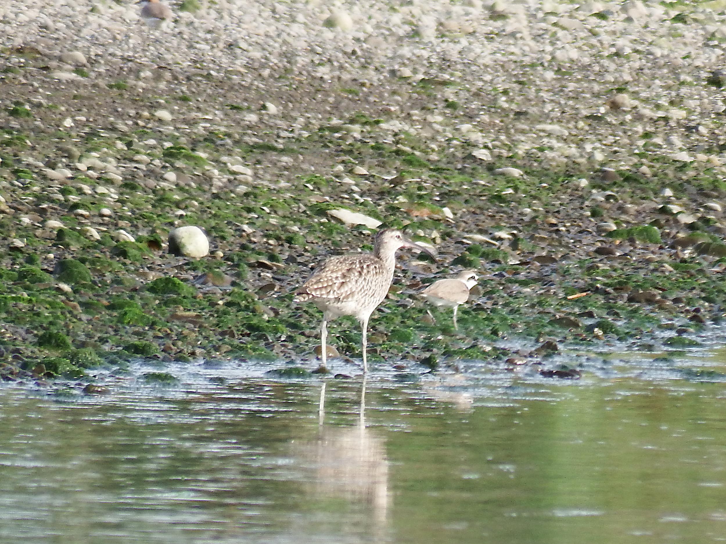 チュウシャクシギとシロチドリ。