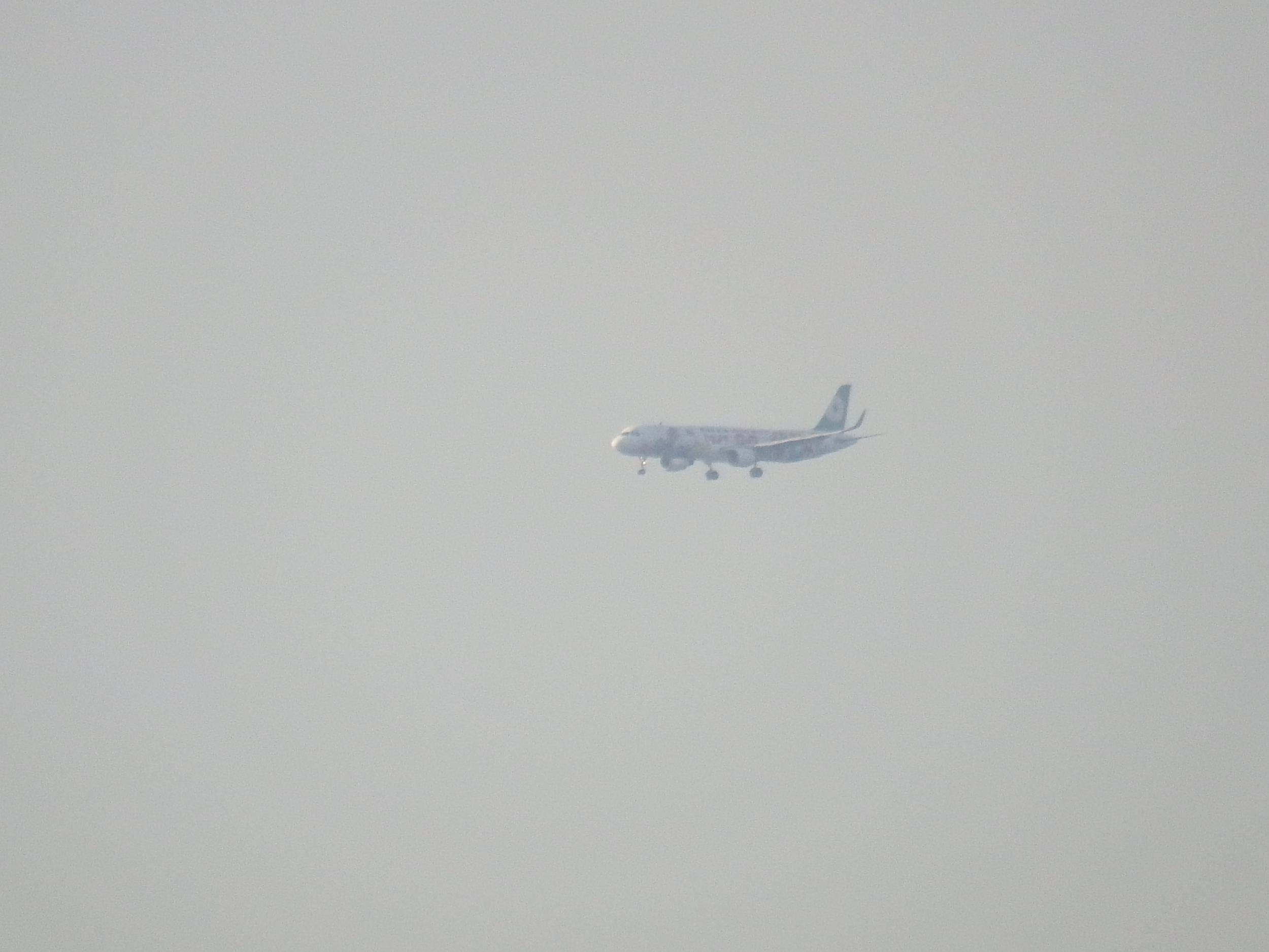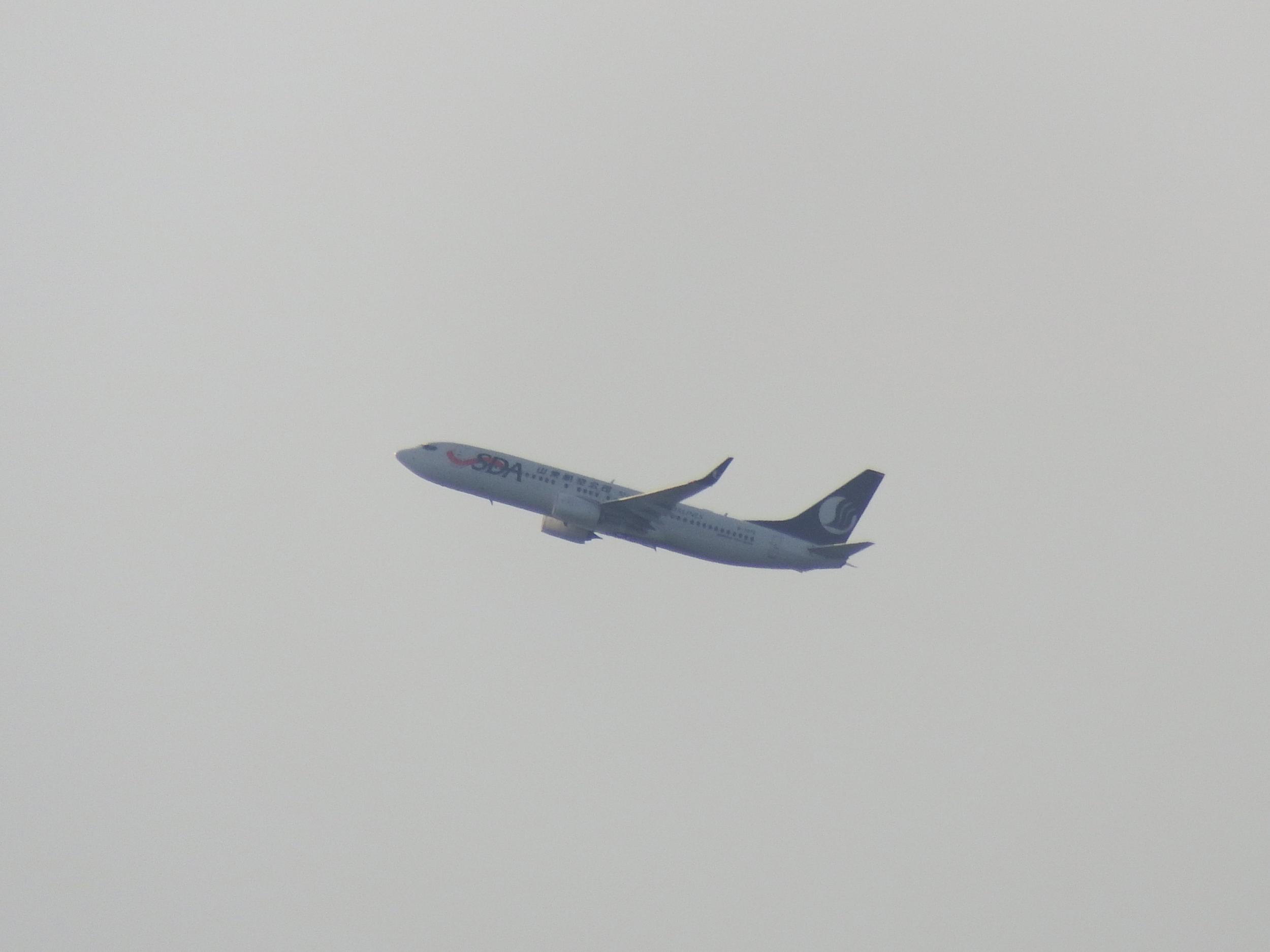 りんくうタウンと画面左下にチュウシャクシギ、うっすら見える山かげは生駒、この方角だとかなり山容が違ってます。今日の離陸は南向き、山東航空昆明行B737です。