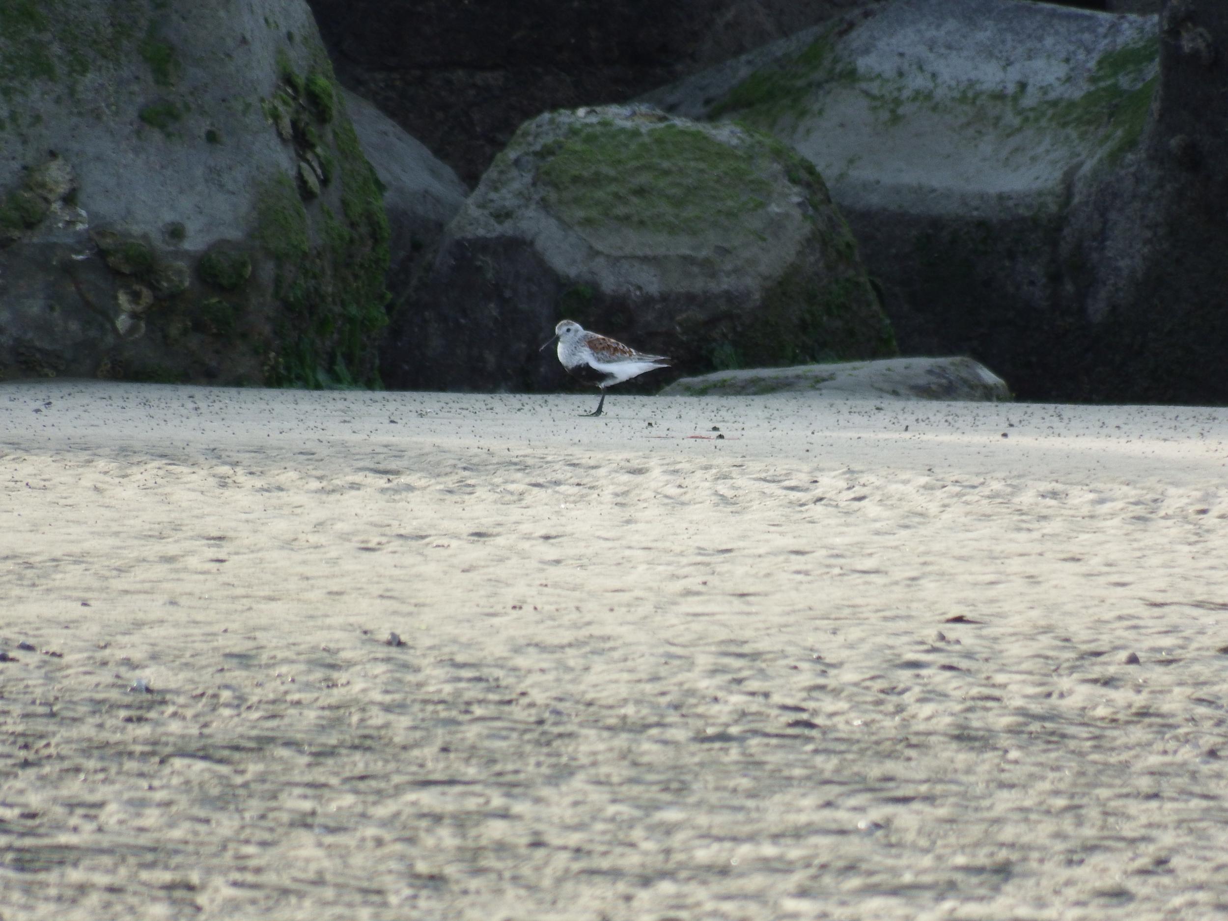 片足上げて寛ぐチュウシャクシギ。T君を見送り、自分はさらに尾崎の浜を散策。阪南市民のH君に聞いてみたところ、この浜の名正式名称はやはり不明でした。