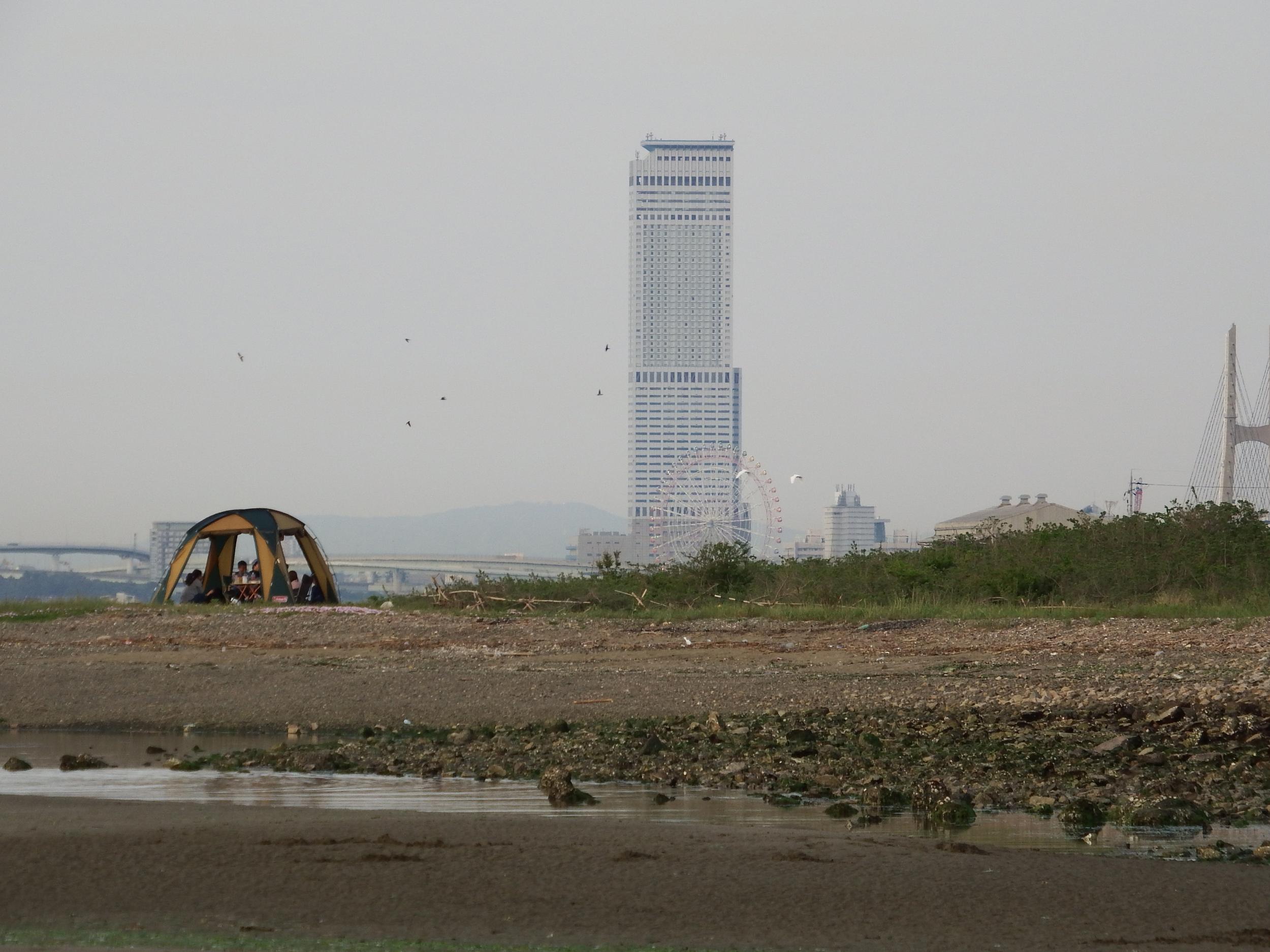泉南市のK君宅で高校からの友人たちとゴールデンウィーク定例飲み会。ちょっと早めに切り上げ、といっても3時間飲んでますが、近所に住んでるT君と男里川河口へ酔醒まし。