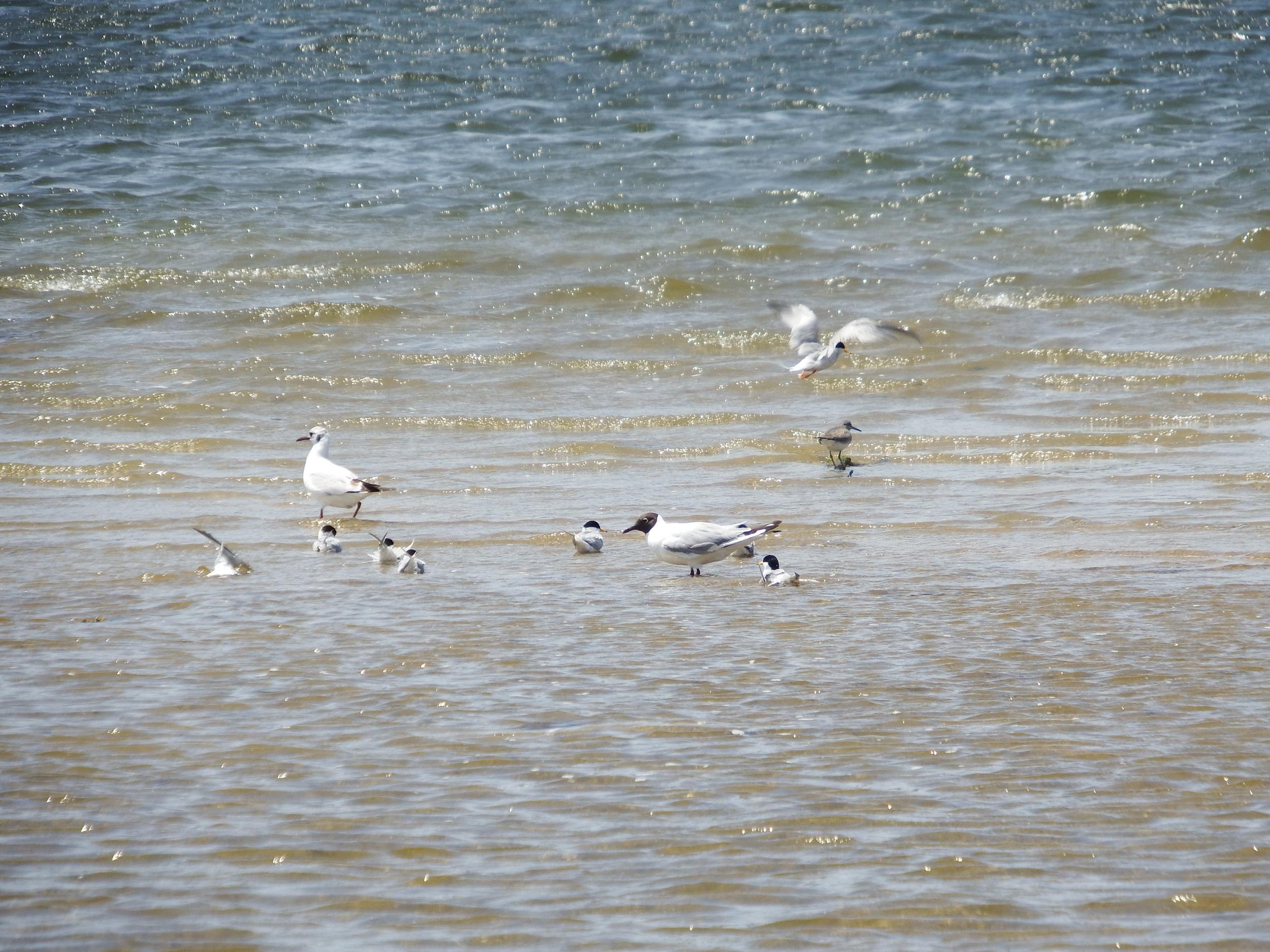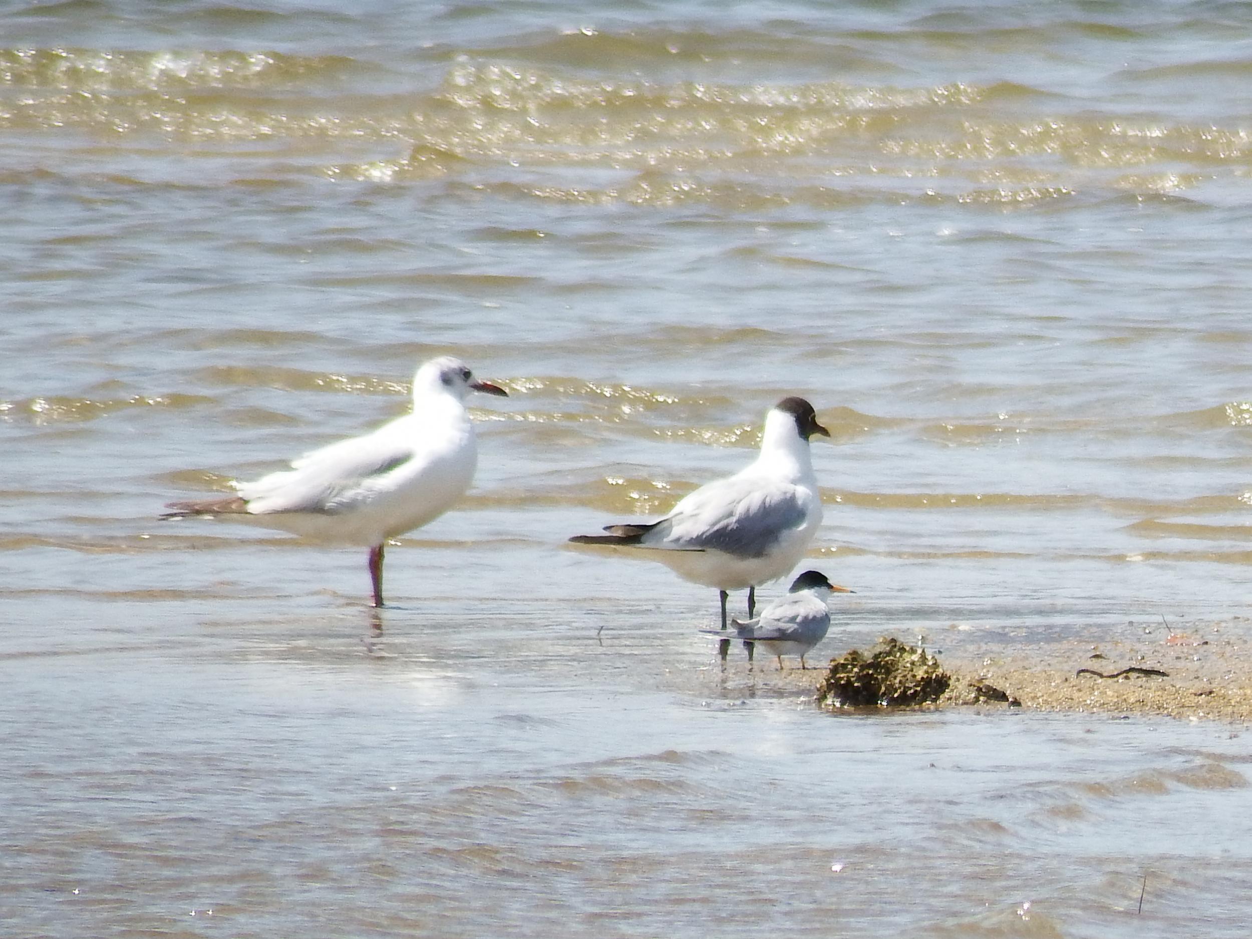 コアジサシ、ユリカモメ、ダイサギキアシシギ