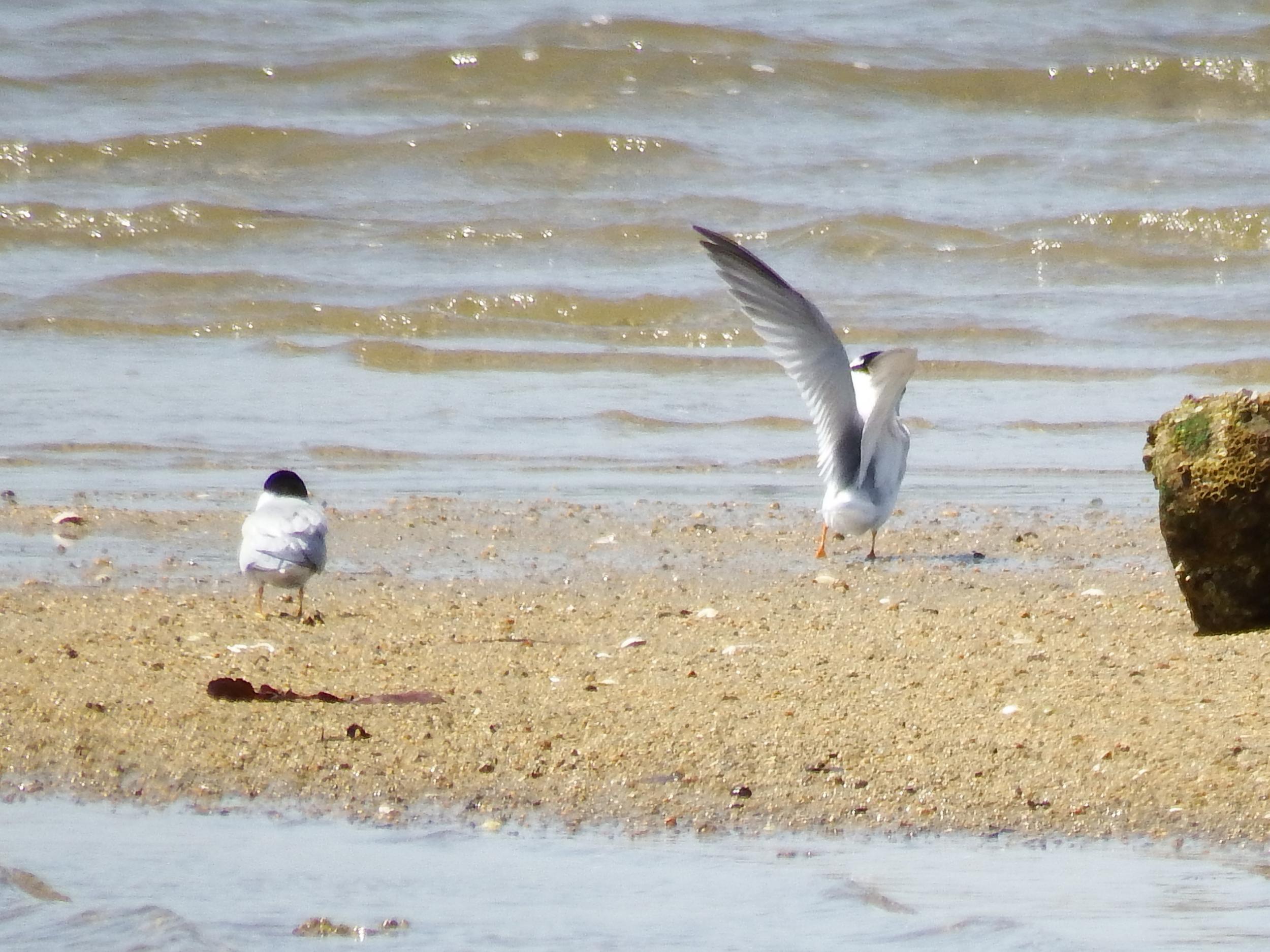 干潟の白い鳥はユリカモメでした。でも期待通りコアジサシもいます。