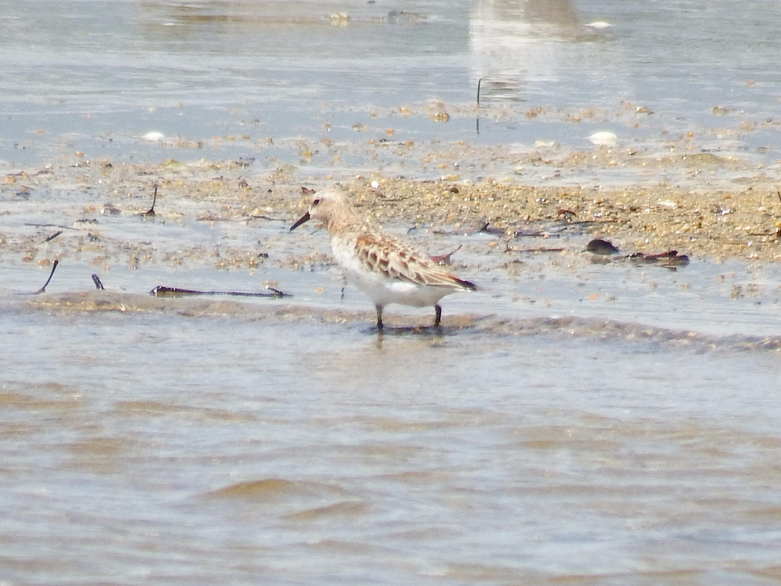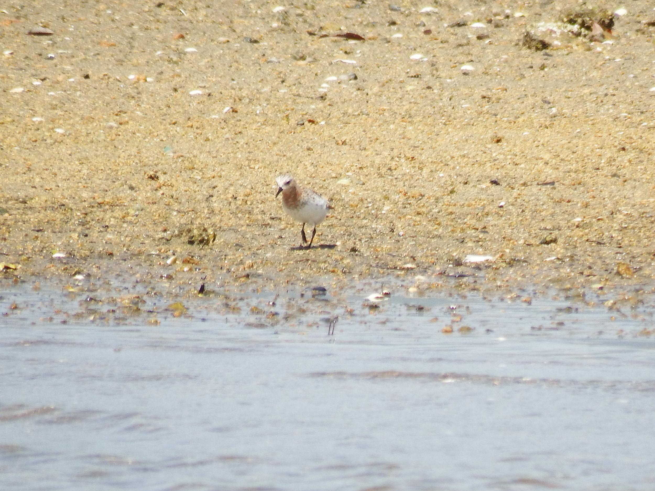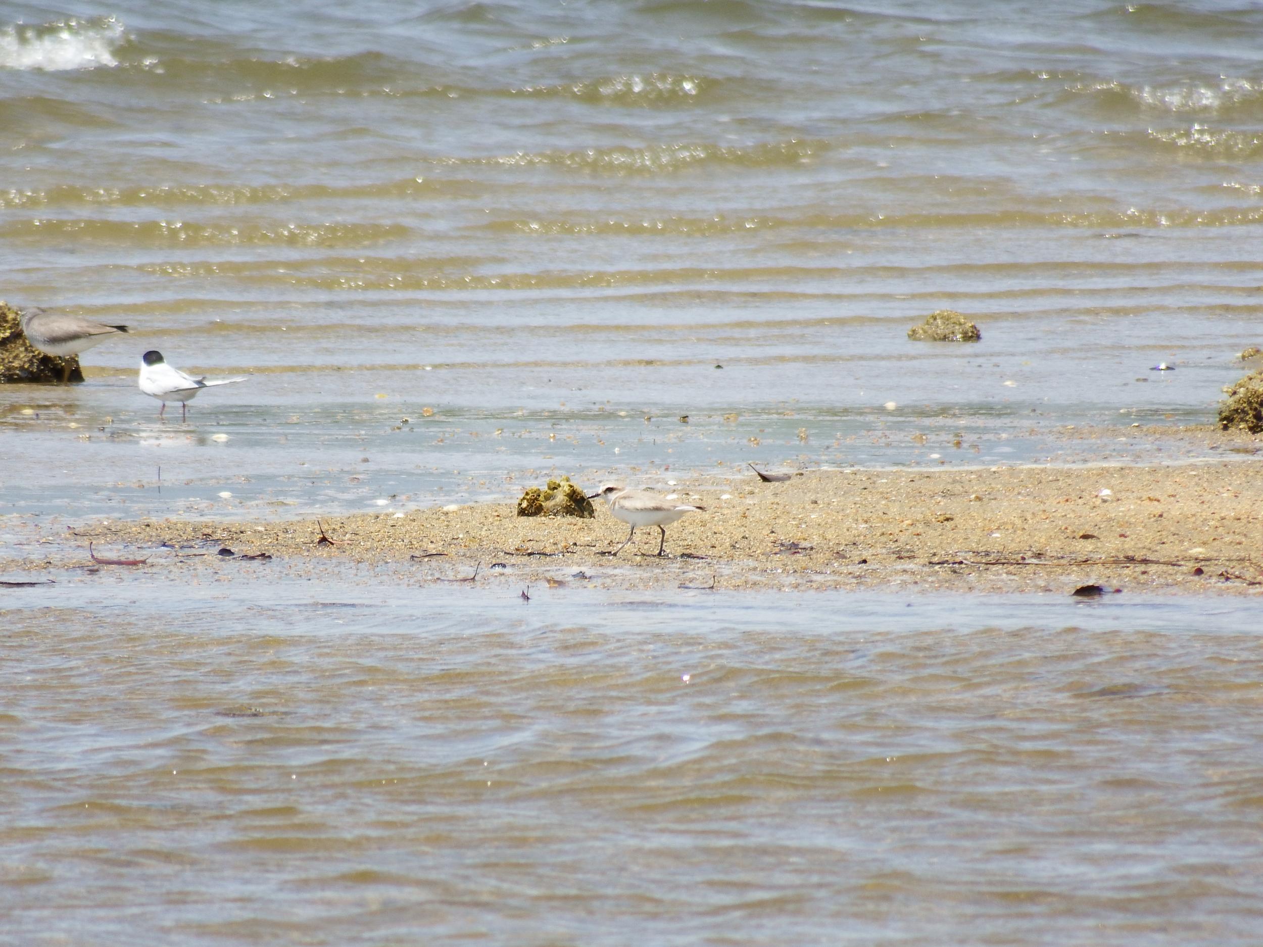 トウネンがいて、その先にキアシシギとコアジサシ。