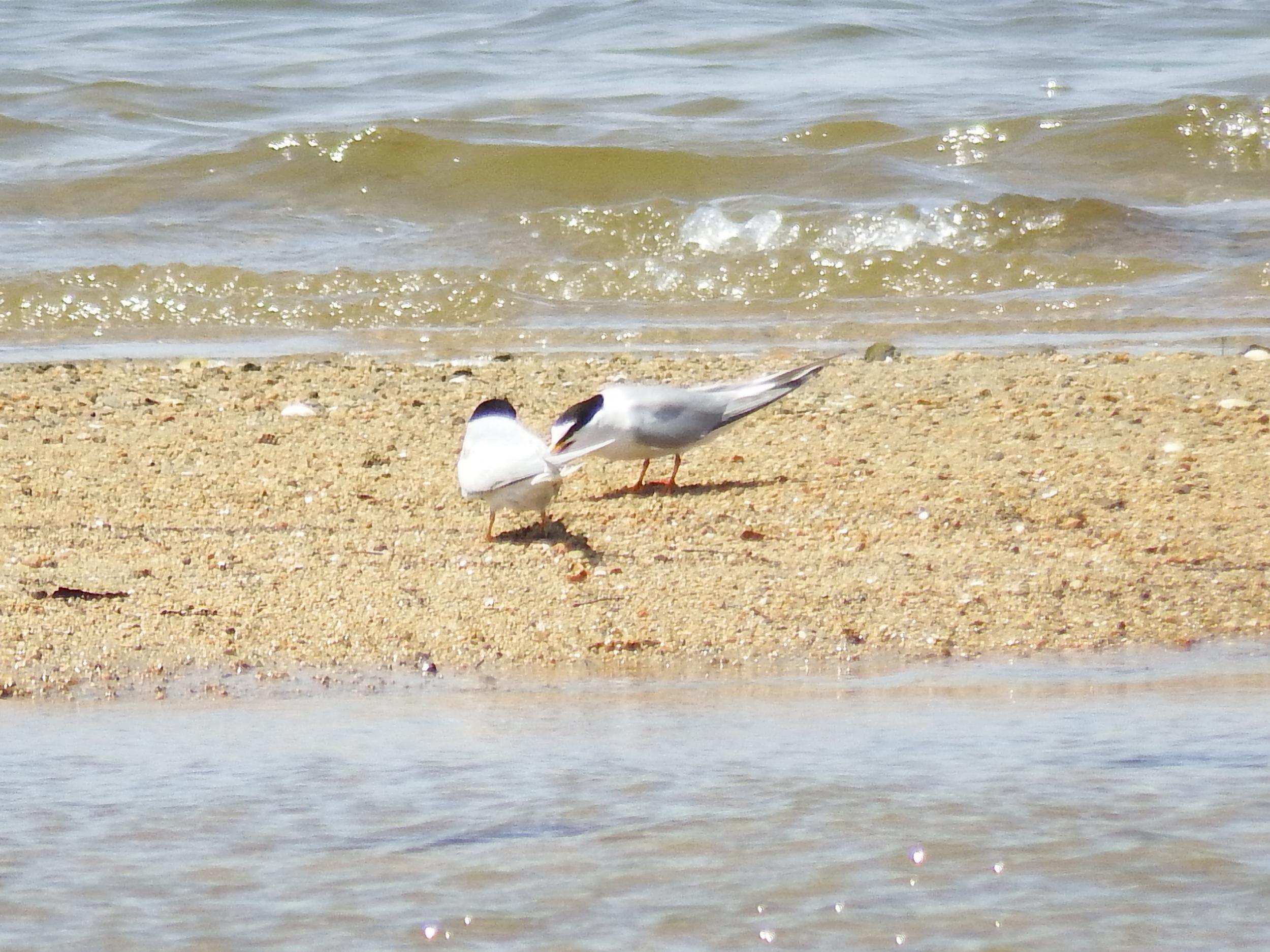 ♂が捕まえてきた小魚を♀にプレゼント。コアジサシ独特の求愛行動です。