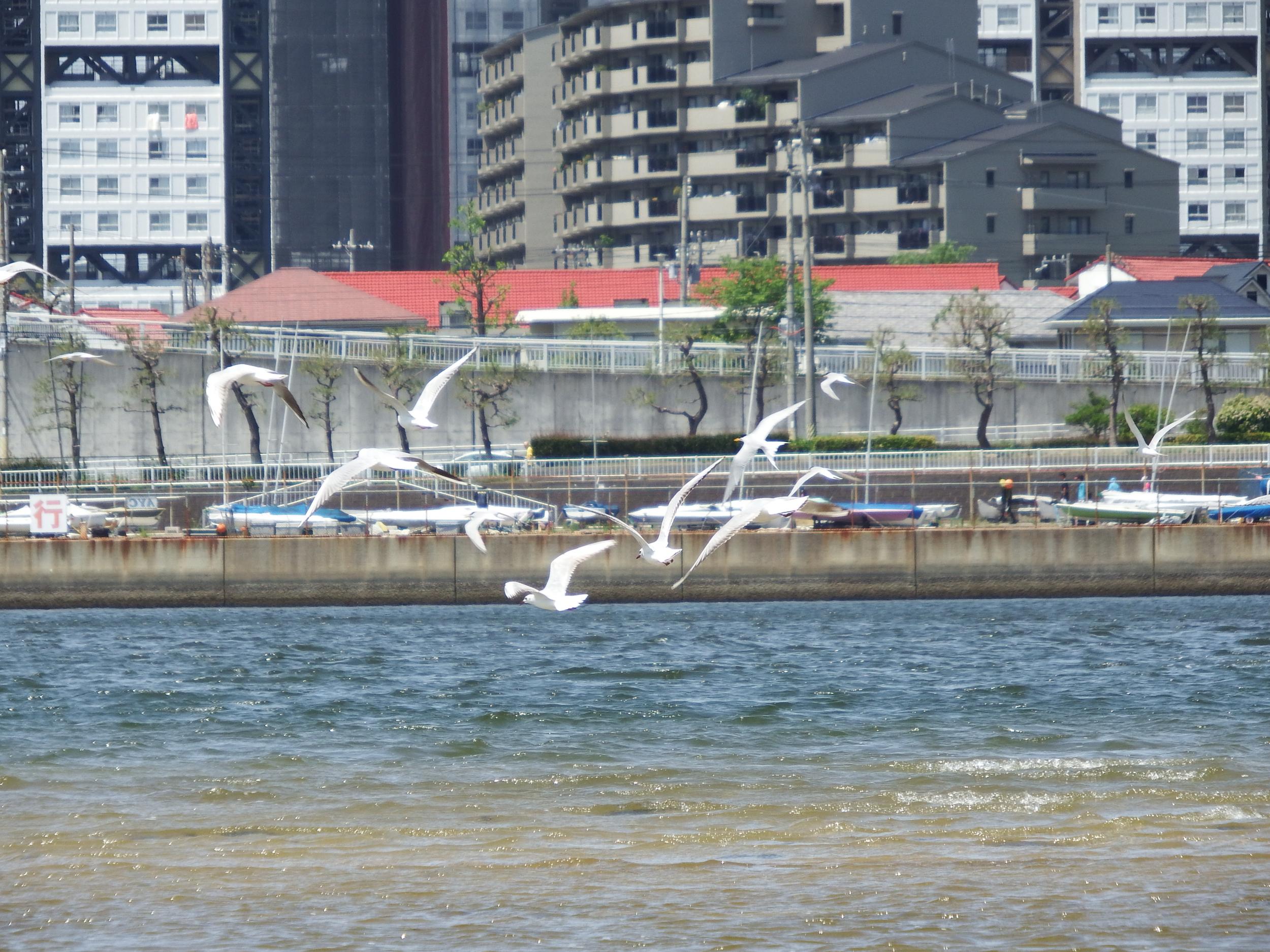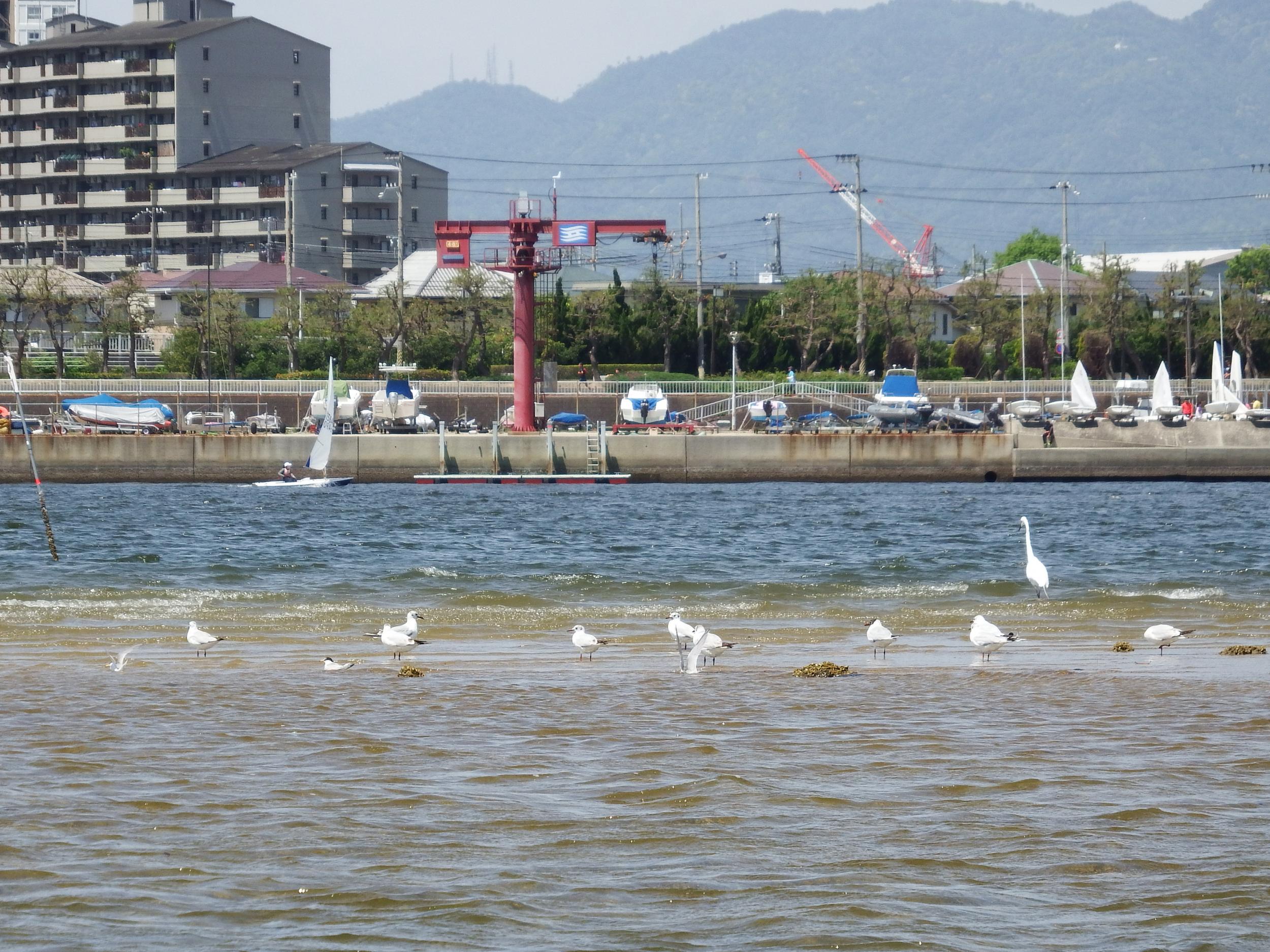 ちなみにこのユリカモメたち、冬場にここにいたユリカモメじゃなくて、ずっと南の方で越冬したグループが旅鳥として香櫨園浜に立ち寄ったものと思われます。