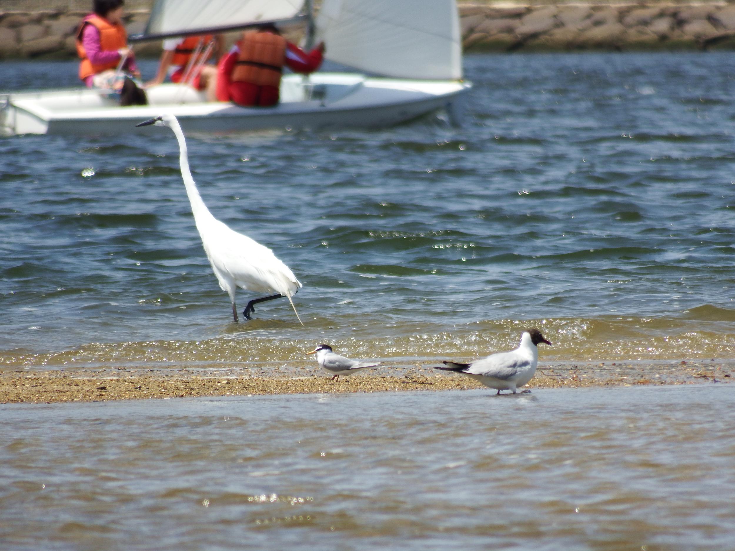 コアジサシ、ユリカモメ、ダイサギコアジサシ、ユリカモメ