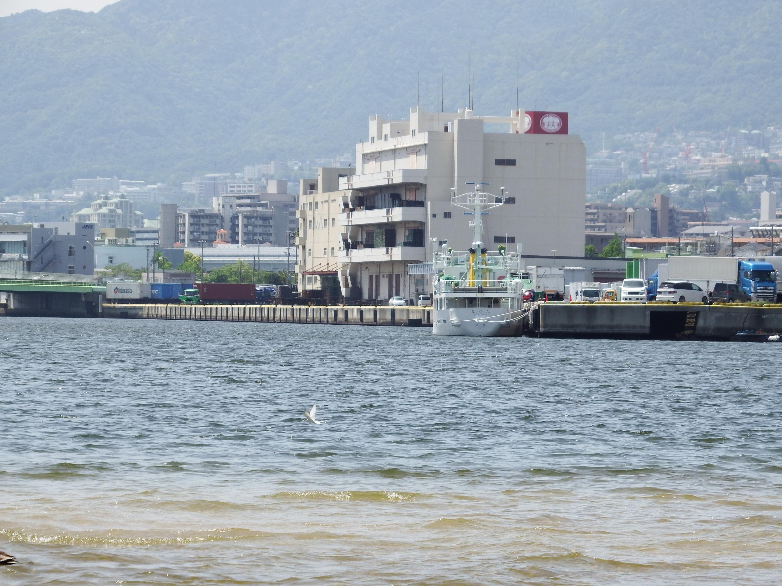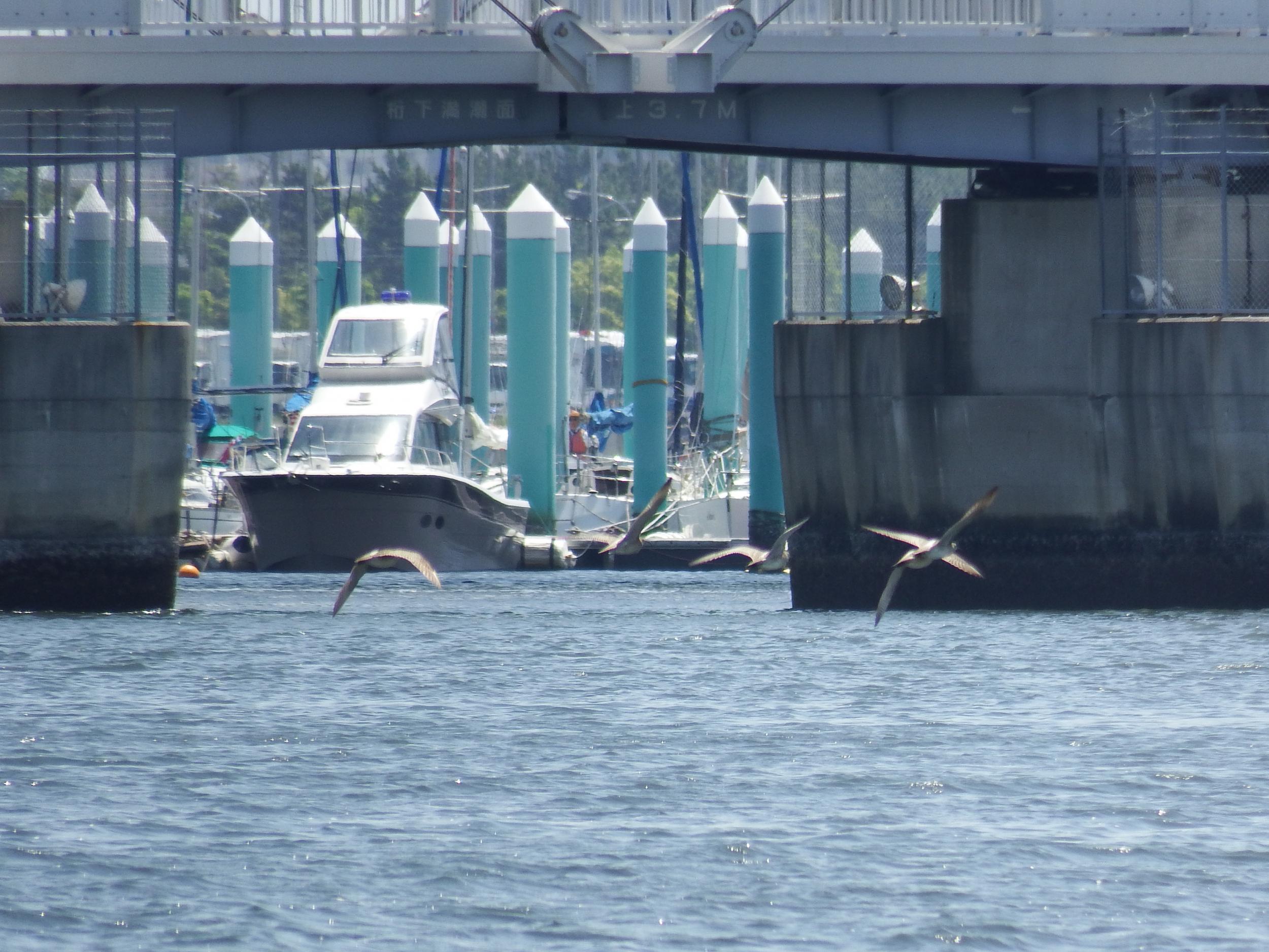 ここでもキアシシギ、今日はボッチのキアシシギばかりです。コアジサシも飛んでます。停泊している船は海技丸とあります。この近くにある海技大学校の訓練船です。南芦屋浜という外海に面した人工浜もあるのですが、もう歩きたくないので今日は止しておきます。