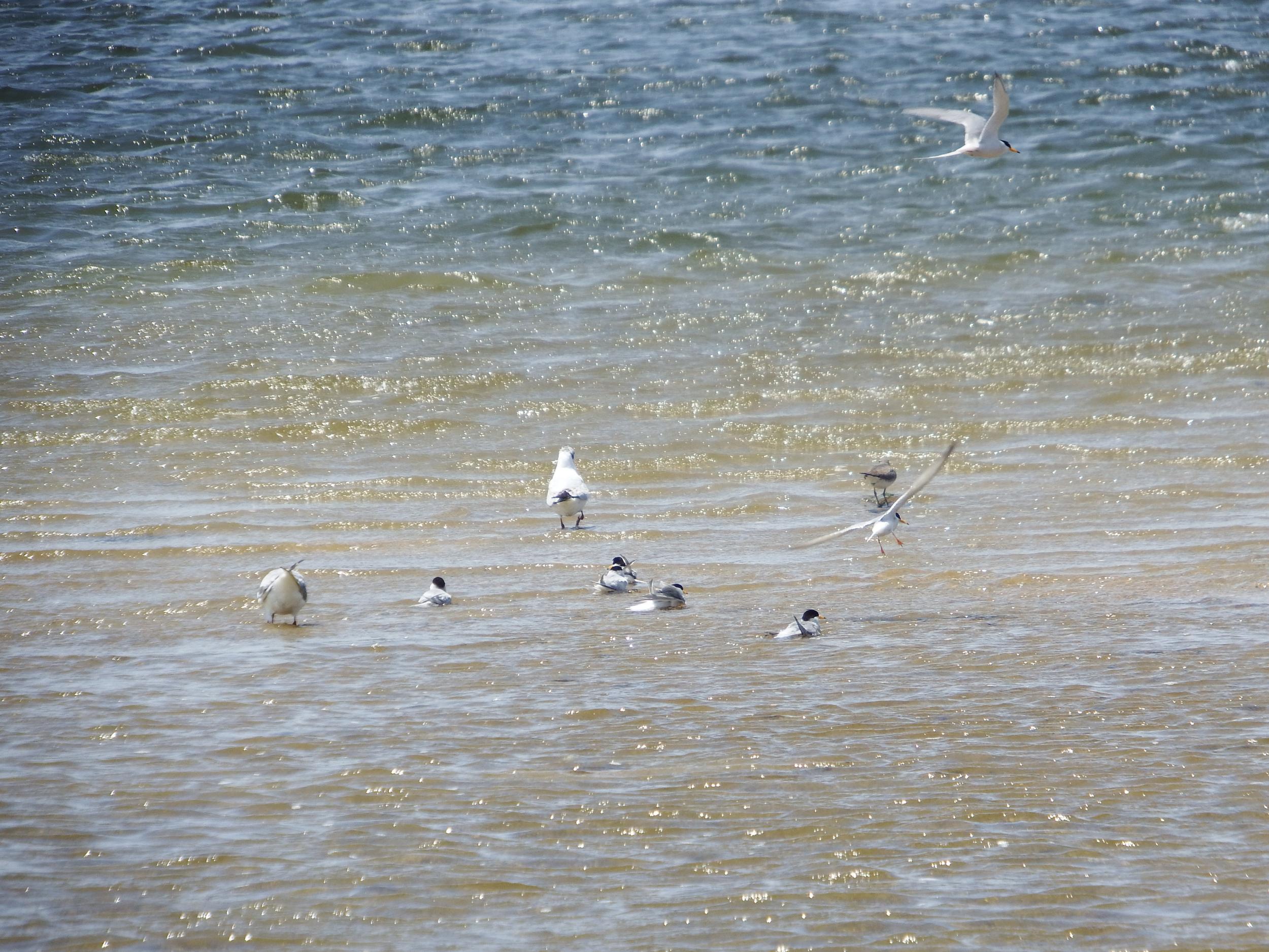 空や水上にはコアジサシ、自分の位置から上下左右、サラウンド状態の鳥見です。