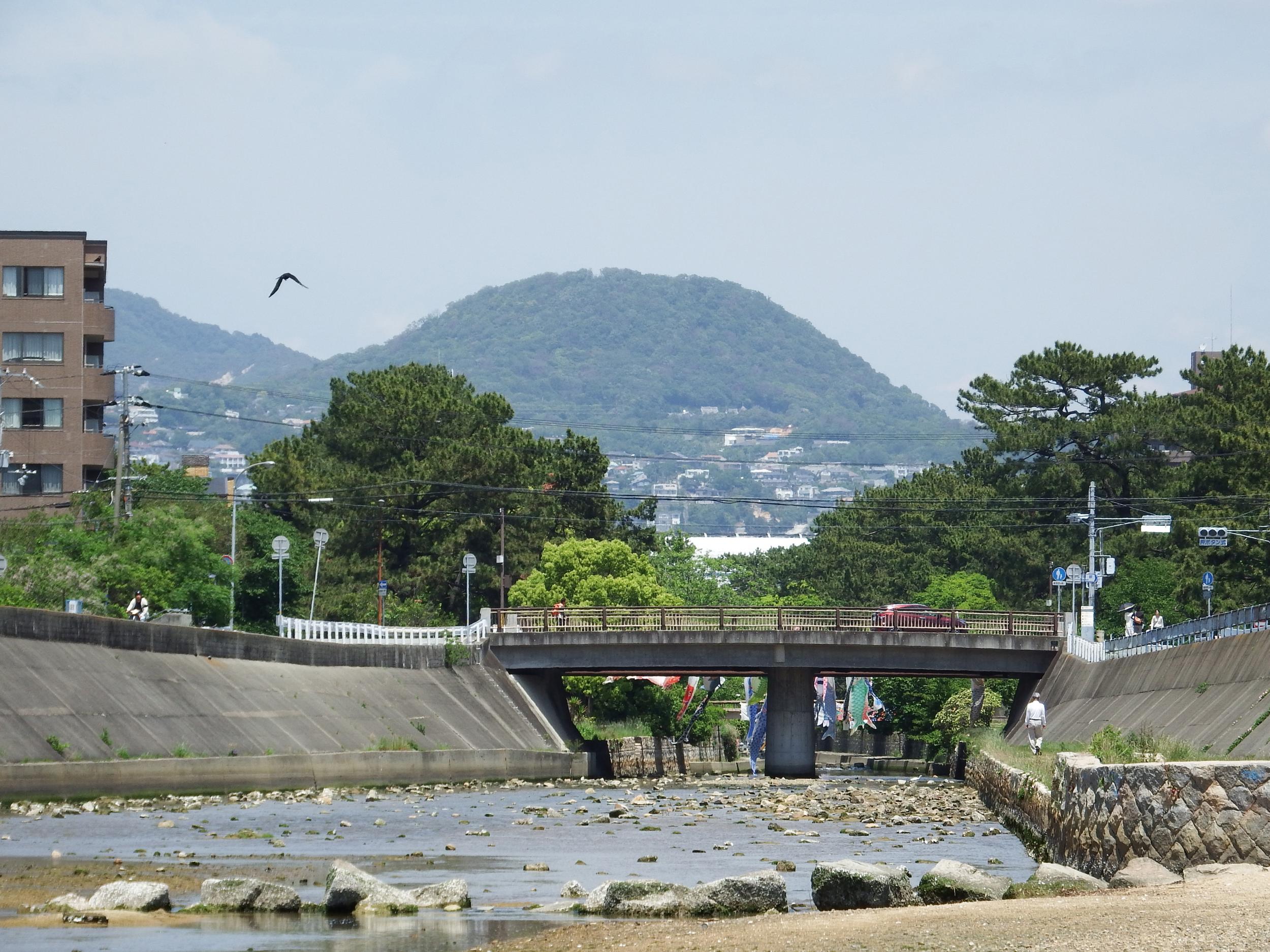 香櫨園浜は引き上げることにします。夙川河口から甲山、鯉のぼりの頭が橋に隠れてしまいました。