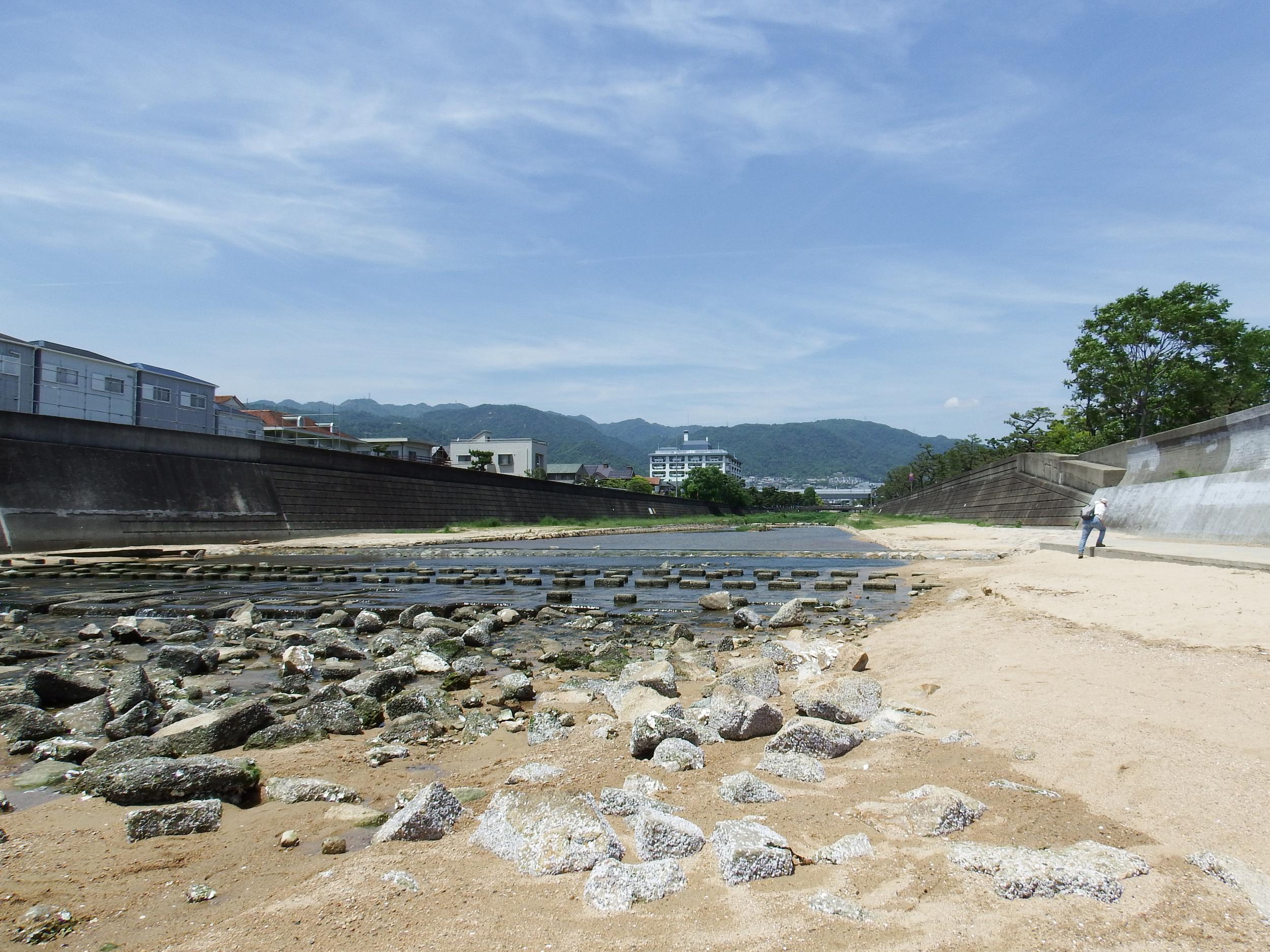 香櫨園浜から3kmほど歩いて堤防を越えると小さな浜が広がりました。芦屋浜、芦屋川の河口です。