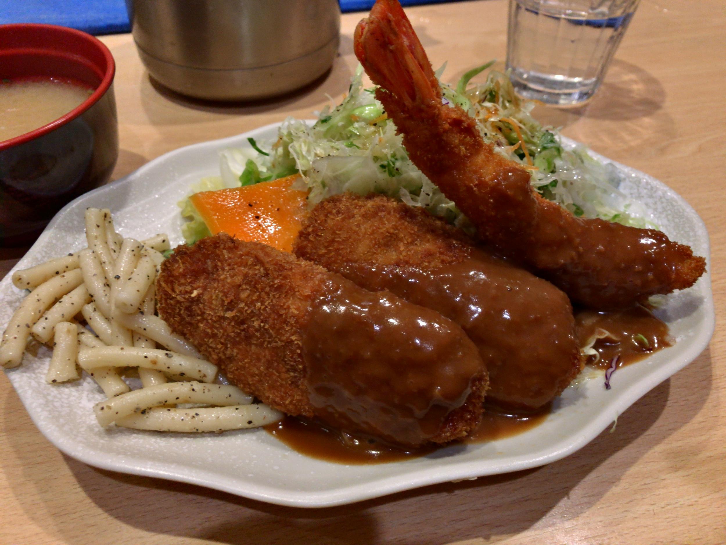 元町で下りて中華街から横道に入ったところに見つけた双平という洋食屋さん。メンチカツ2個とエビフライのAセットです。このエビフライ、朝の海老天とは大違いでコロモは薄く、中身の直径2cm以上ありそうな噛みごたえすらあるエビにビックリ。エビフライ2本のBセットにすればよかったです。煮干し(たぶん)出汁のよく効いた味噌汁も旨く、エビが美味しい店は間違いないという持論が証明された思いです。