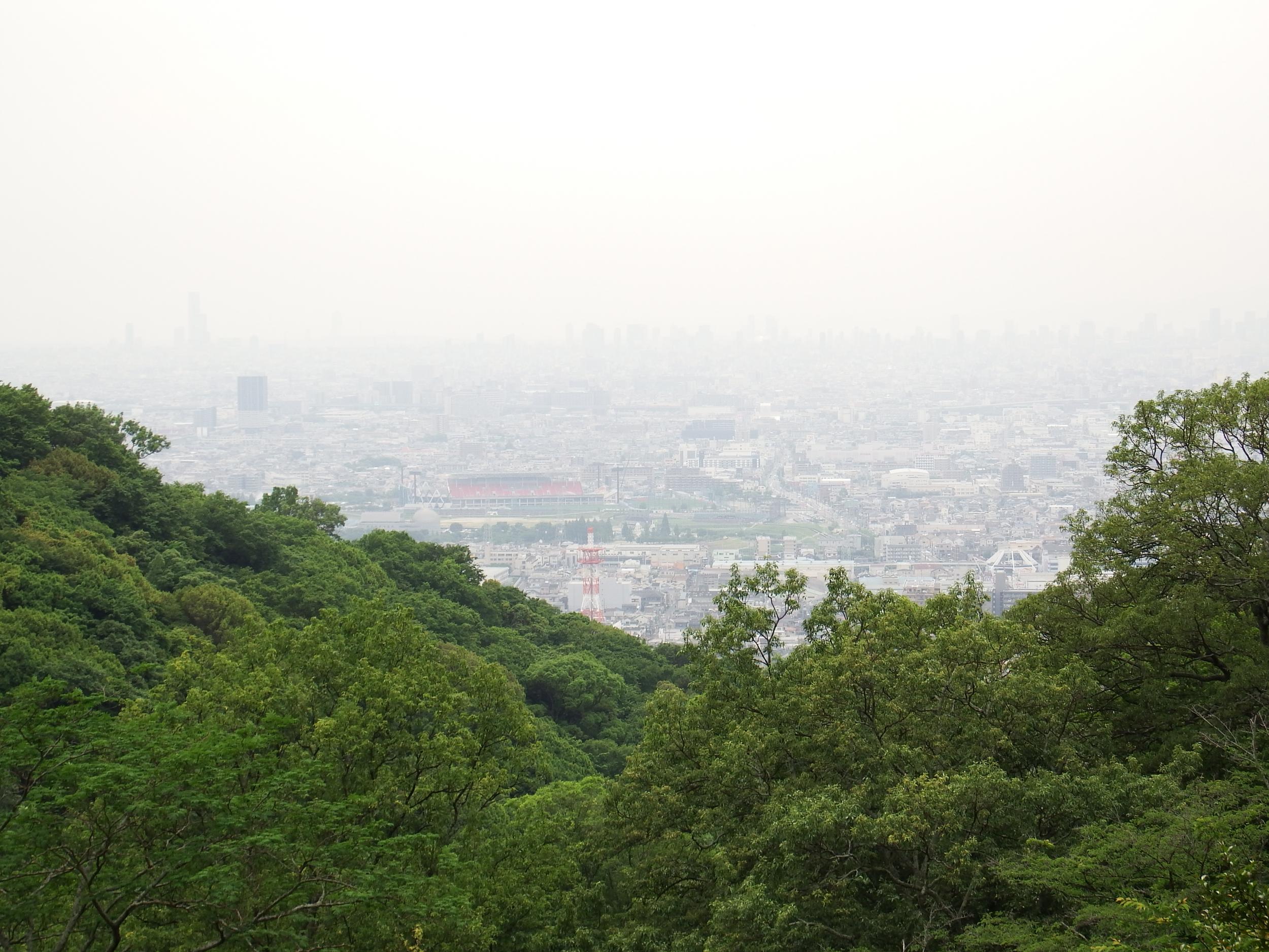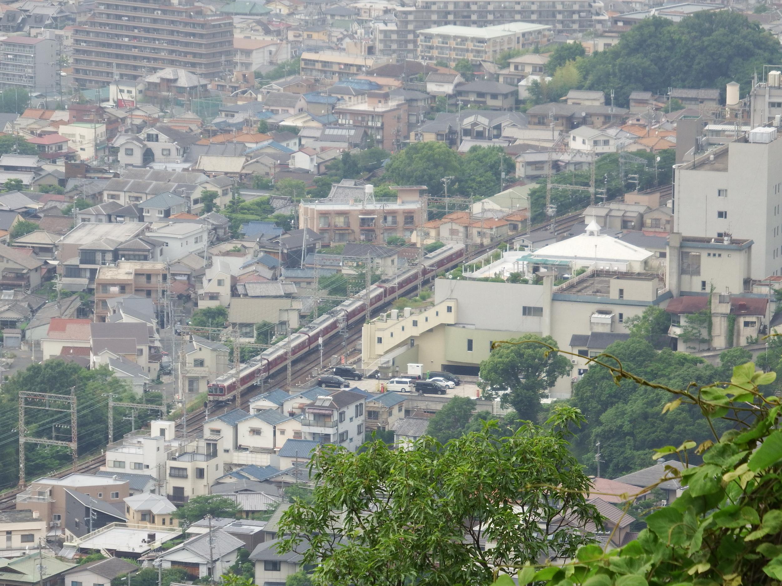 さくら広場からの風景、予報では晴れるはずが曇ったままです。いつもの急坂を額田山展望台まで登ってみたものの、特に何も見つからず近鉄電車を撮っただけで下ります。