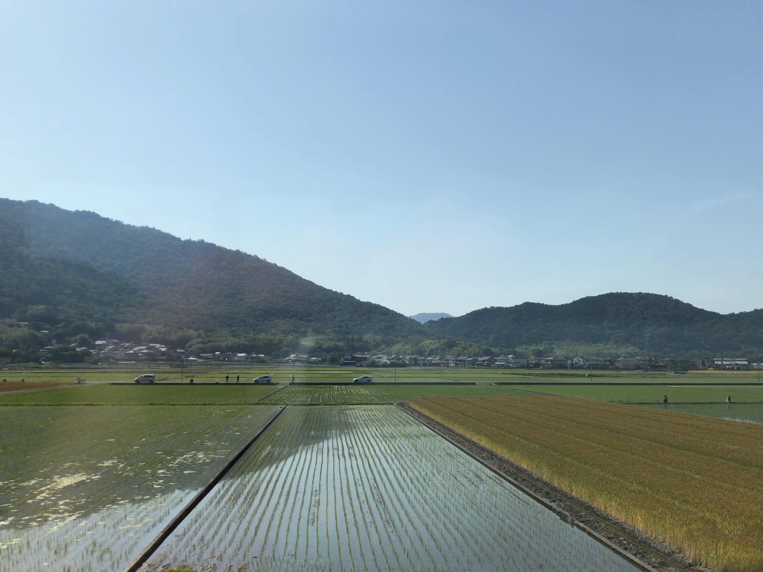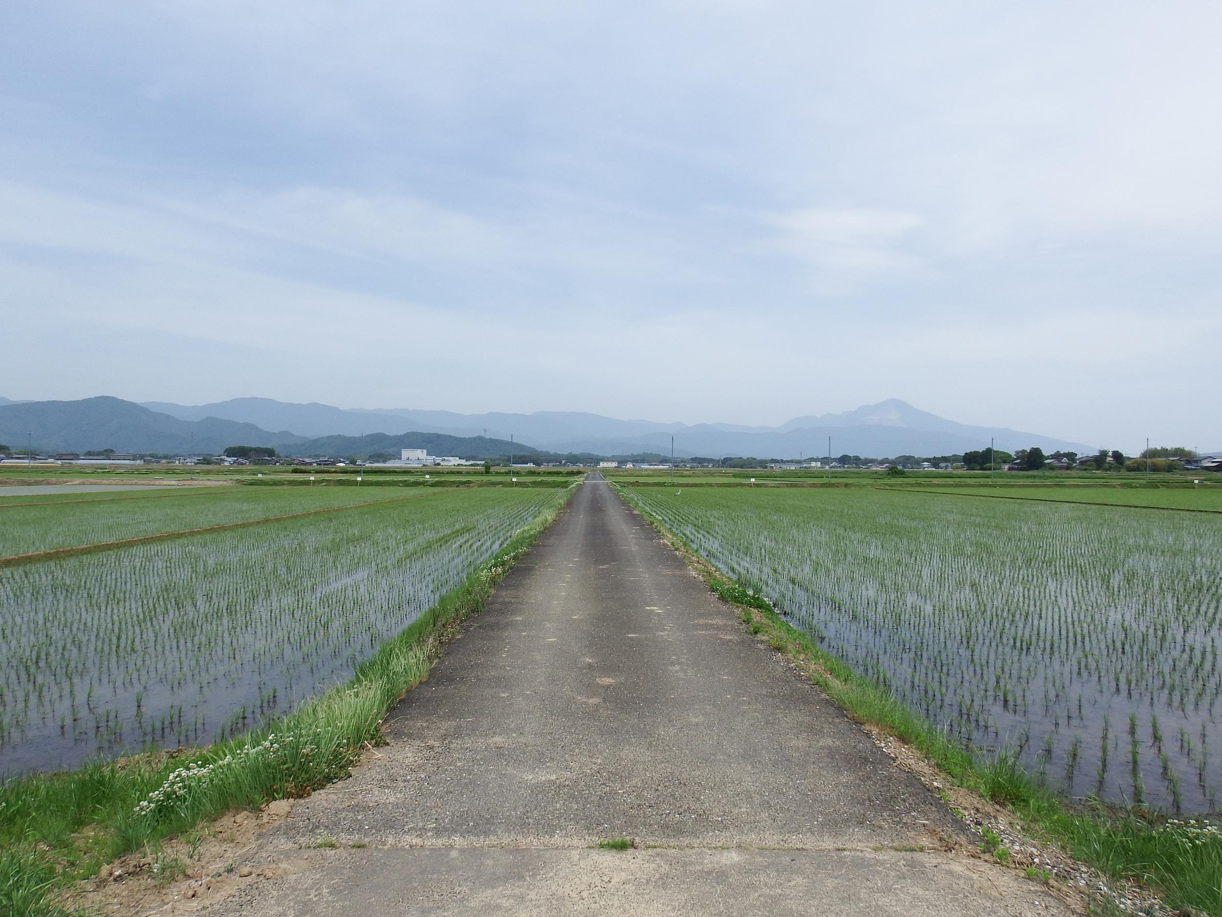 道の駅裏側の水田に映る、さっきとは違った角度からの山本山と遠くに伊吹山、いつ来ても気持ちのいい場所です。