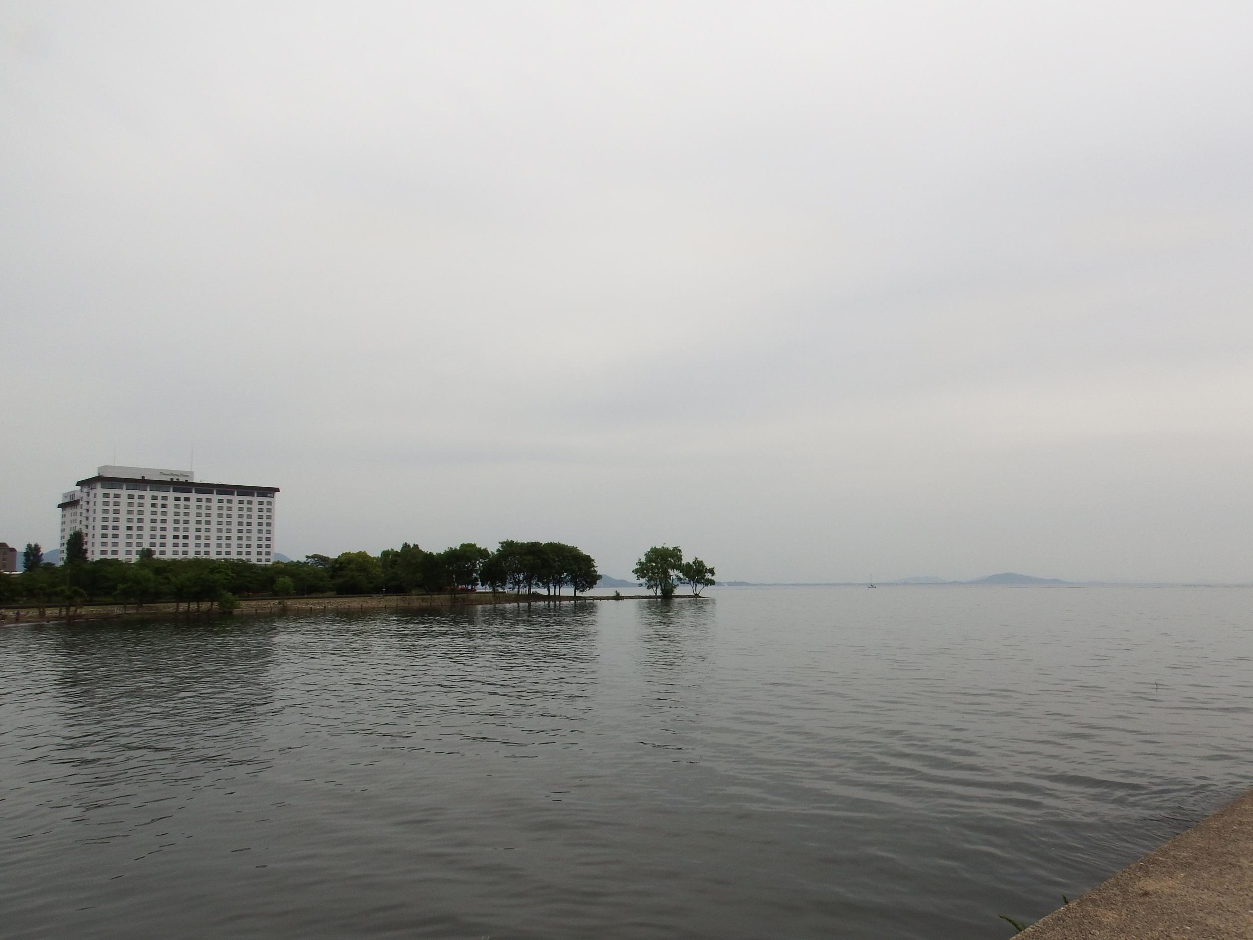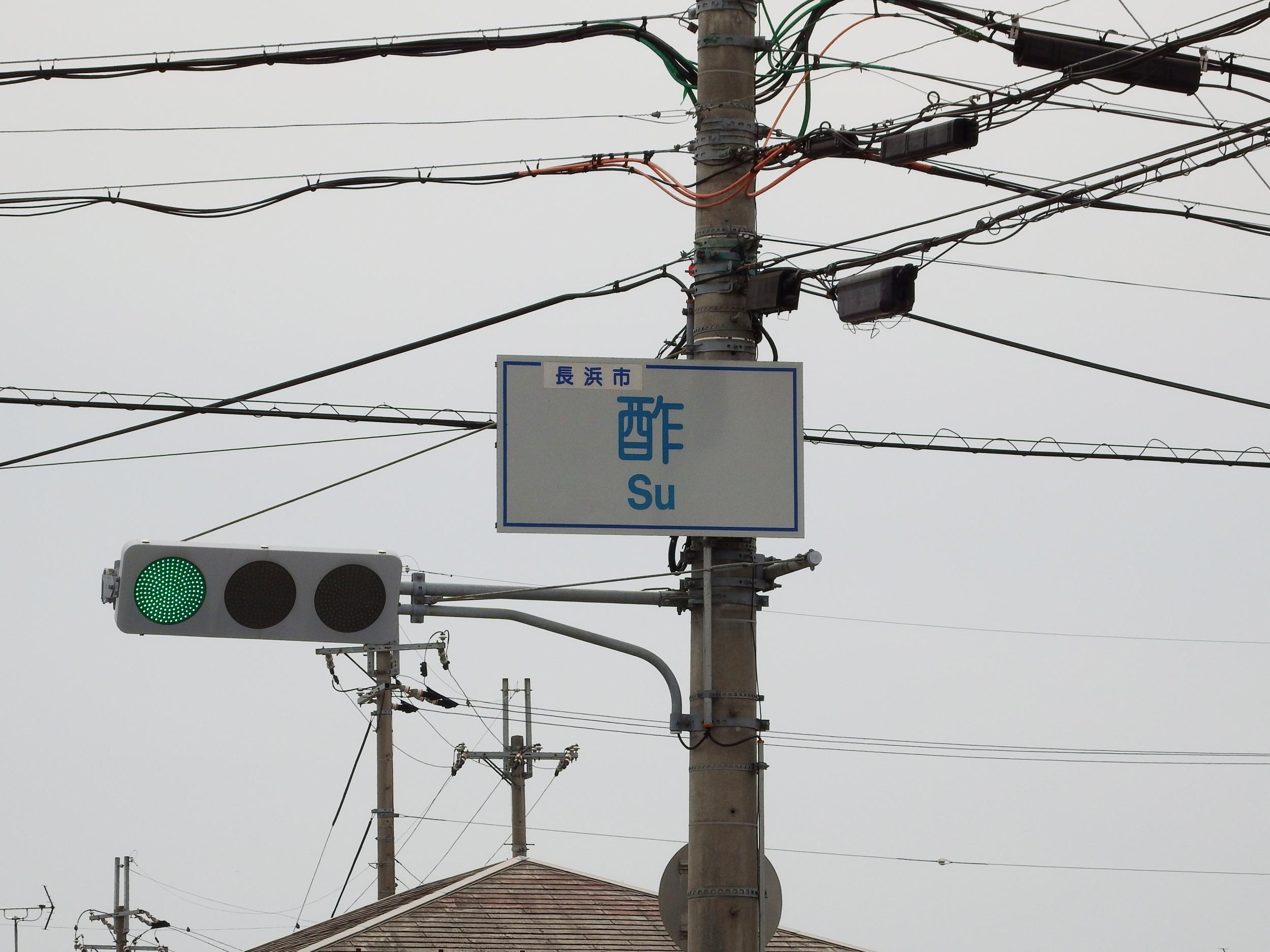 長浜市酢、和歌山市坊主丁クラスのインパクトある地名です。長浜駅前の豊公園帰着。雲が厚くなってきています。30kmは走ったはずです。電池が減らないようにエコモードをメインに、平坦路では電源を切って走っていたので、かなりクタクタです。