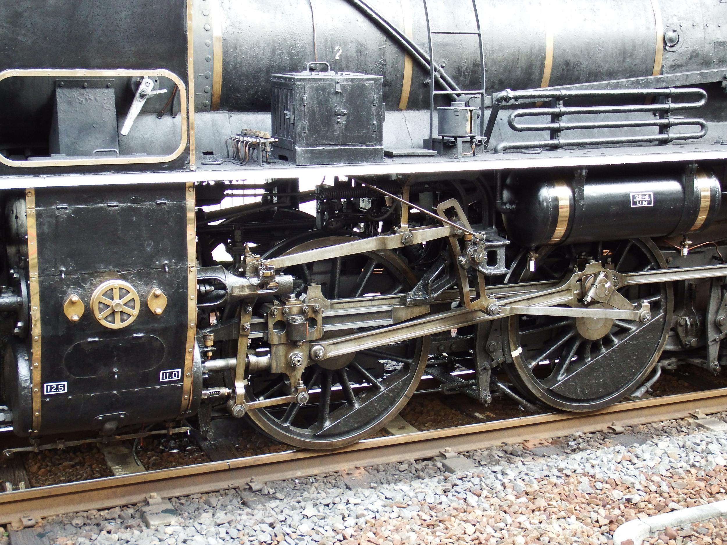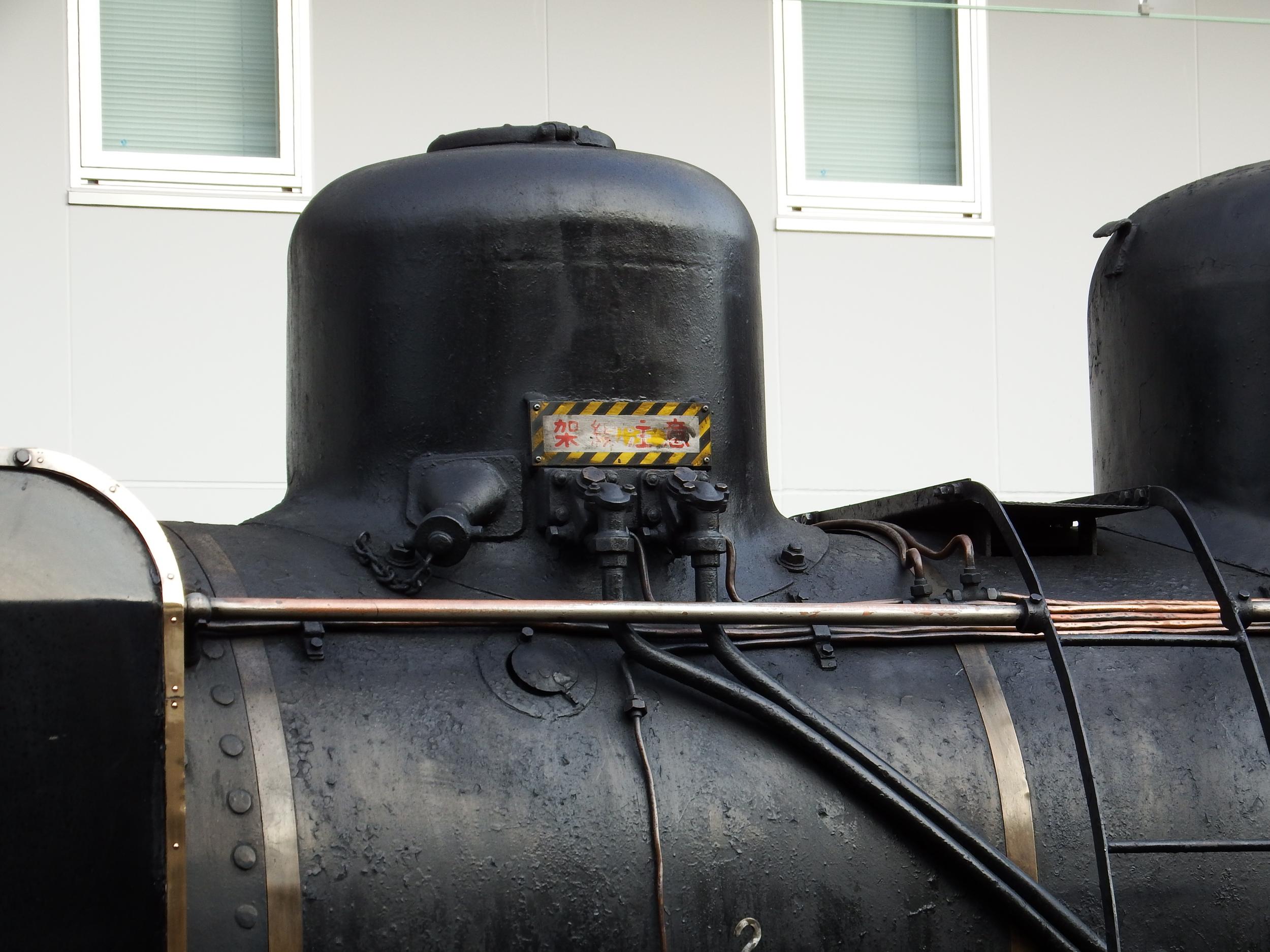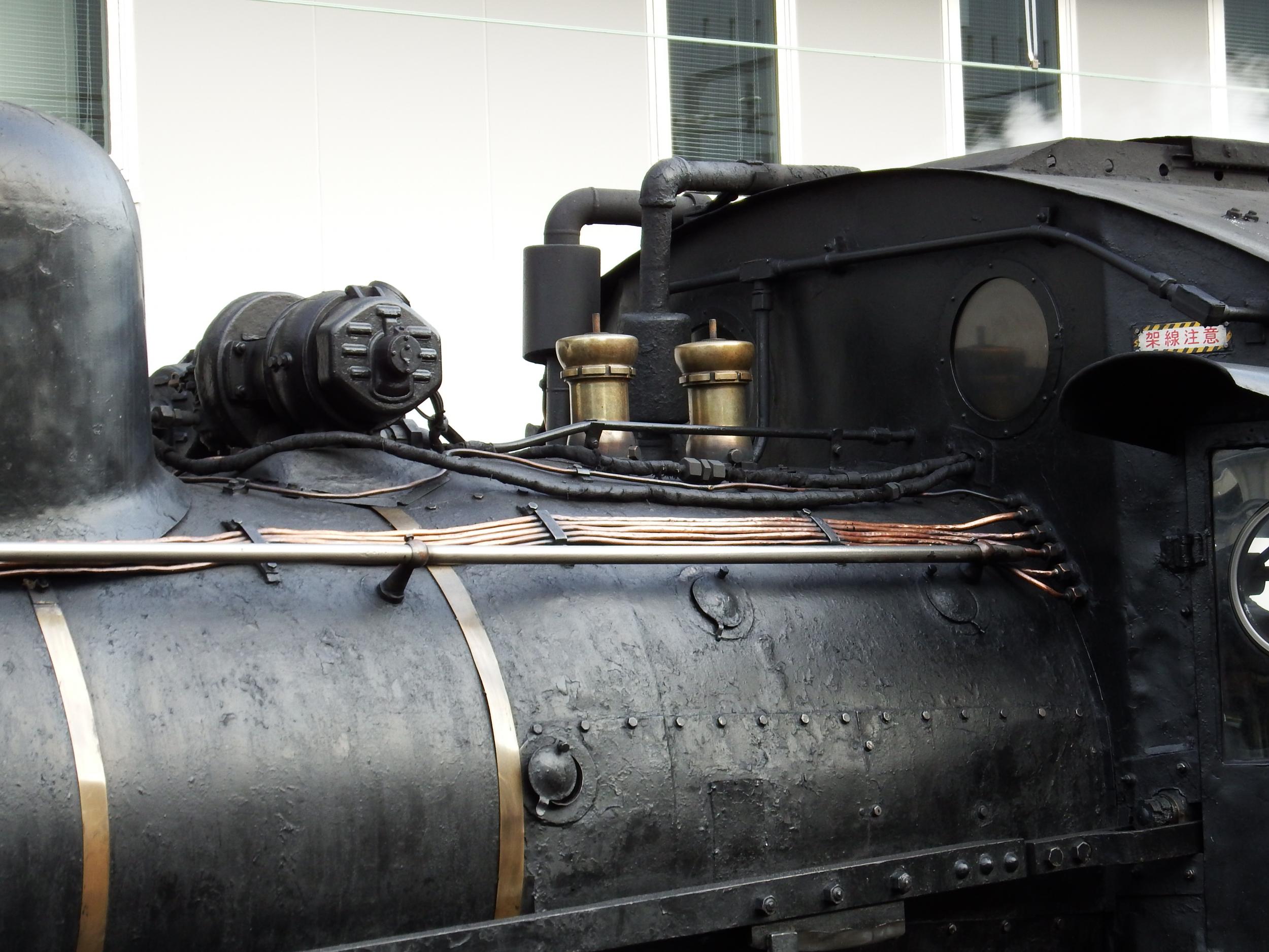 チェスの駒のような金色の2つの円筒はボイラーの安全弁、ふたつのドームの前方は砂箱、後方は蒸気溜め。蒸気溜めの後ろにあるのは蒸気発電機。