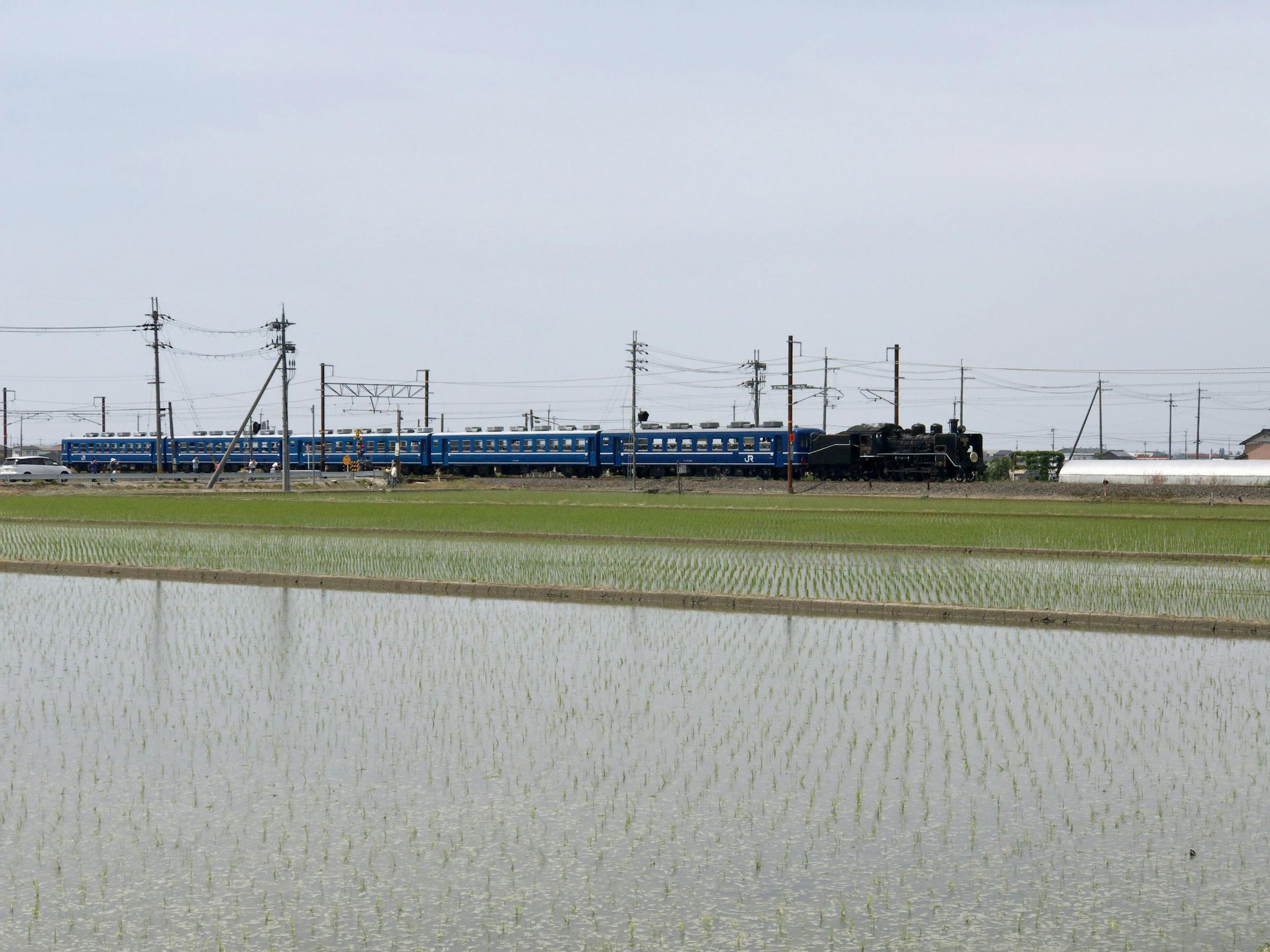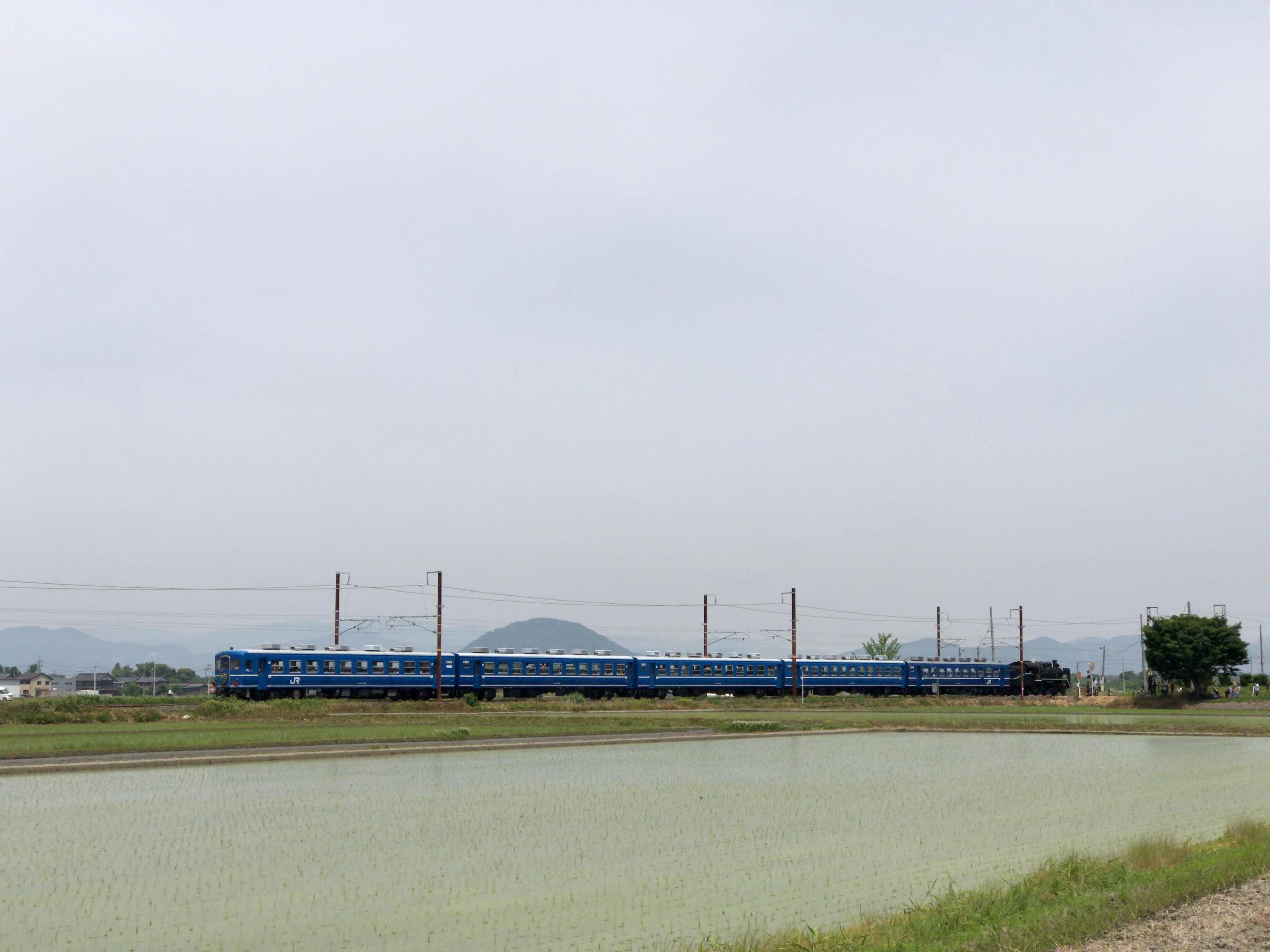 完全にフラットでけむりも蒸気も出さず静々と通過していきました。ここからもう少し北側に姉川を渡る築堤の勾配があるのに気づいたのは後の祭り。