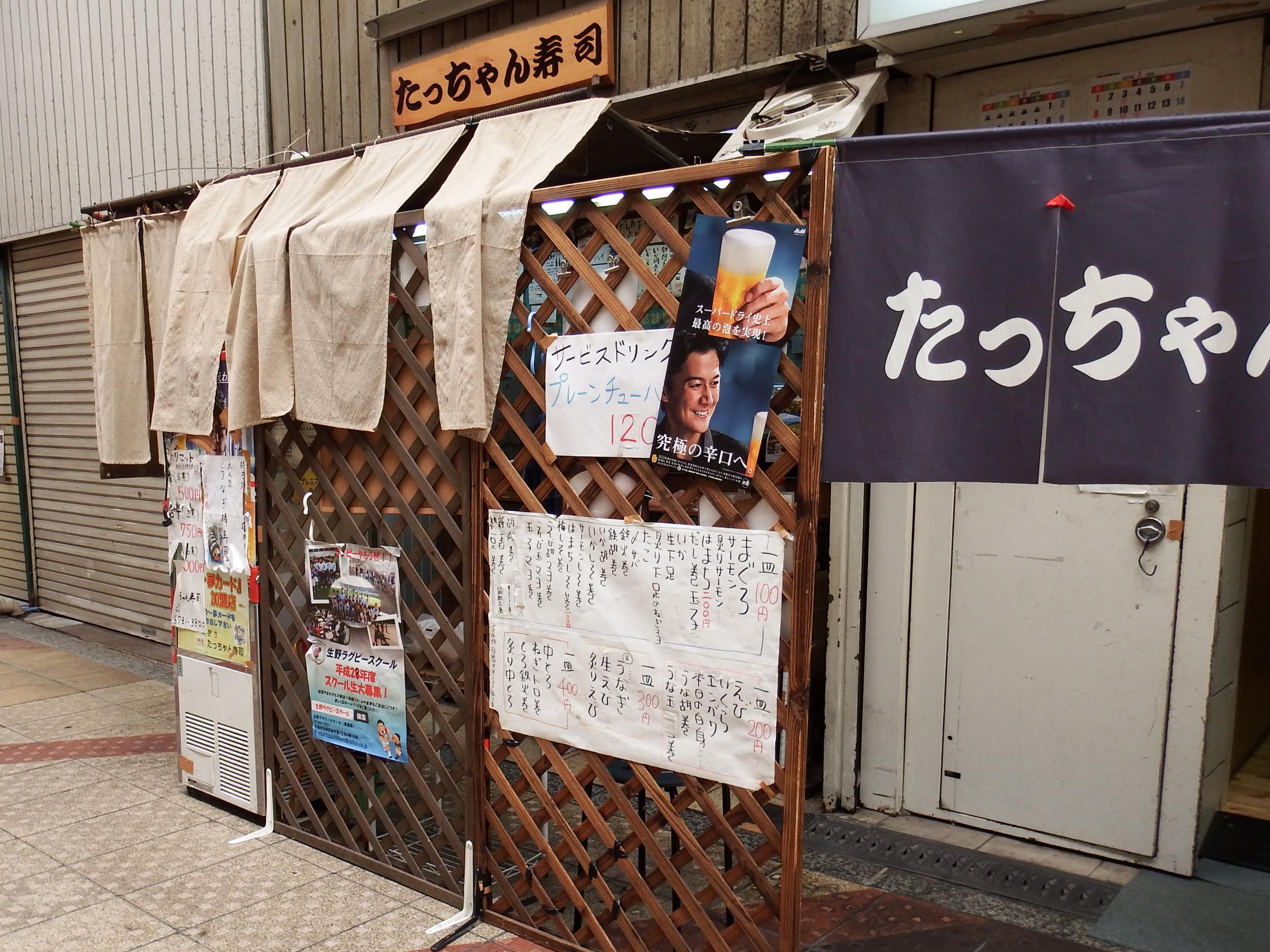 生野銀座商店街に到着、疎開道路より東が生野銀座商店街、西側の寺田町に近い方が生野本通商店街です。人通りは殆ど無いものの、かなり気になる立ち食い寿司屋さんを発見。よほど入ろうかと思ったのですが、ちゃりんこで酔っ払う訳には行かず次の機会とします。
