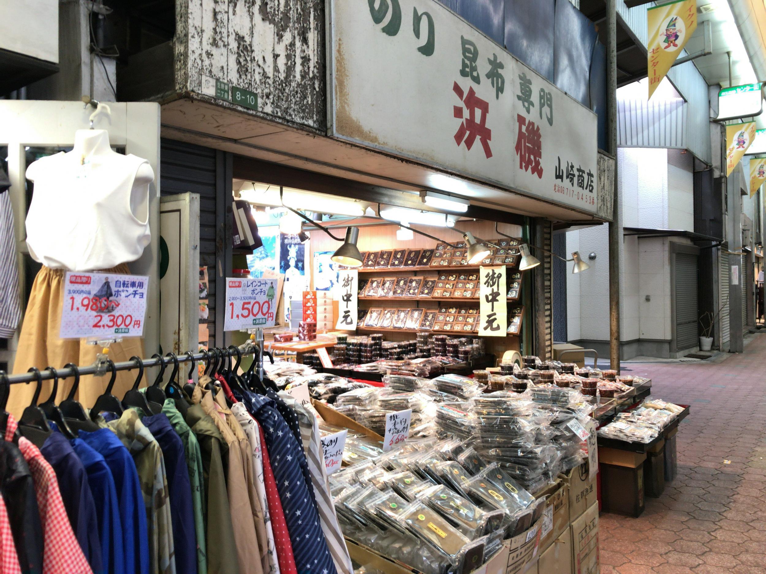 路地を覗いてみると、涼しげな木造住宅。海苔昆布屋さんの品揃えは半端ないです。